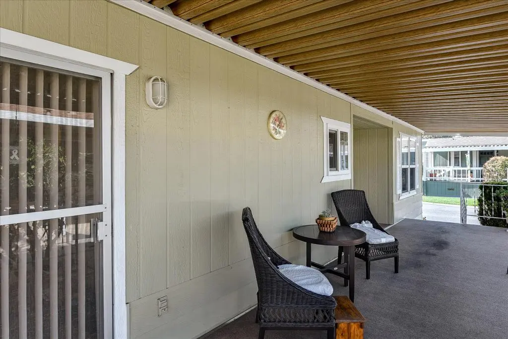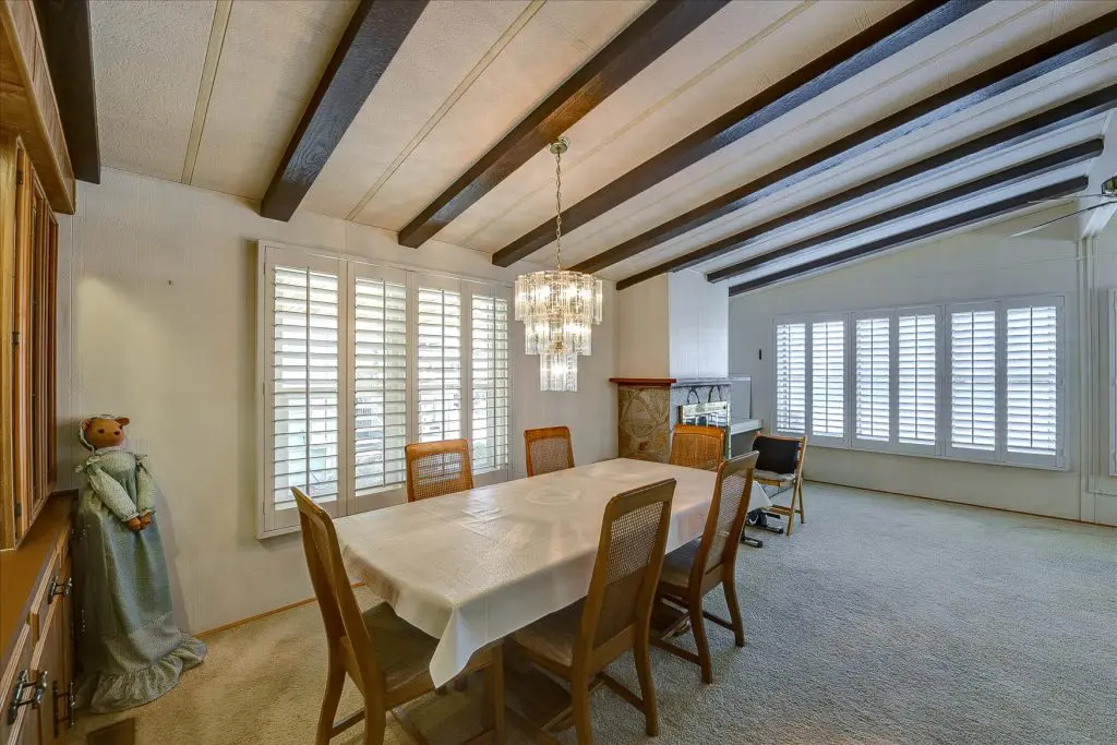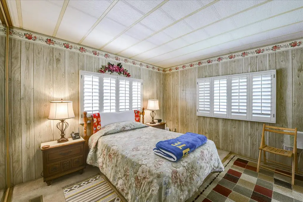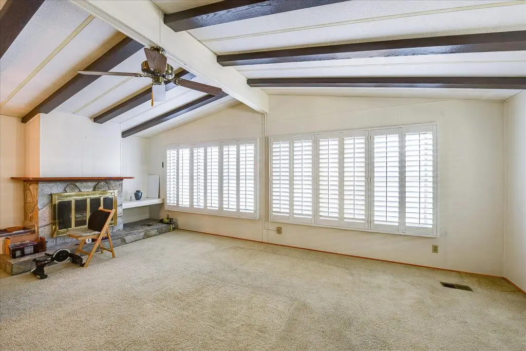 This is the home you have been waiting for! Lush landscaping and a charming side porch welcome you home with alluring curb appeal. This 2 bedroom, 2 bath home offers an excellent floor plan including plantation shutters thru-out and dual pane windows with the exception of the large front picture windows, plush carpeting, high vaulted ceilings with exposed beams, wood burning fireplace, large living room, dining area with built-in hutch, cozy family room, A/C, and a large backyard for outdoor entertaining. Bright kitchen offers all appliances, plenty of cabinetry, and a peninsula island. The spacious master bedroom has a large mirrored closet and private bathroom with two sinks, soaking tub, and step-in shower. With so much to offer, this home is perfect for you! Call (866) 494-8993 today for more information!