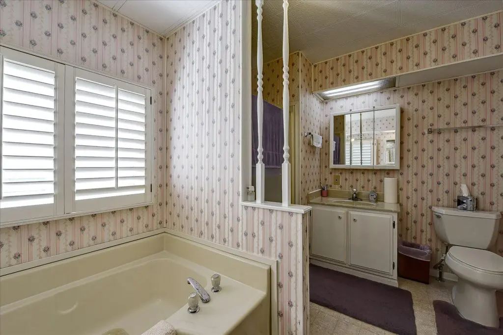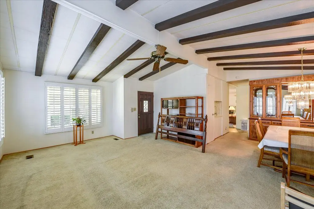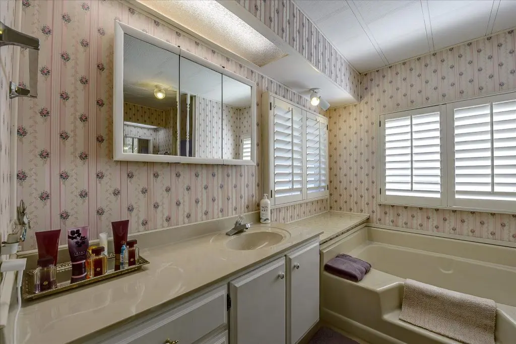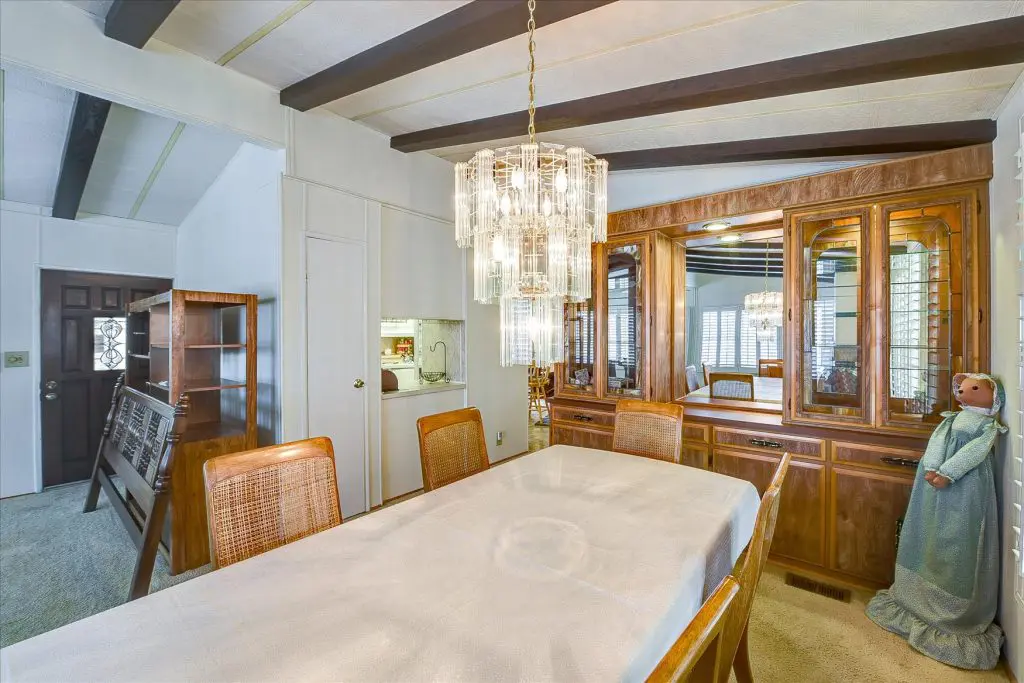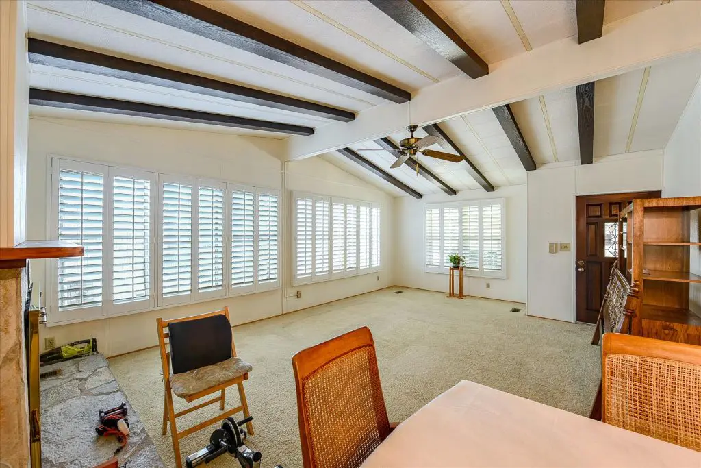 This is the home you have been waiting for! Lush landscaping and a charming side porch welcome you home with alluring curb appeal. This 2 bedroom, 2 bath home offers an excellent floor plan including plantation shutters thru-out and dual pane windows with the exception of the large front picture windows, plush carpeting, high vaulted ceilings with exposed beams, wood burning fireplace, large living room, dining area with built-in hutch, cozy family room, A/C, and a large backyard for outdoor entertaining. Bright kitchen offers all appliances, plenty of cabinetry, and a peninsula island. The spacious master bedroom has a large mirrored closet and private bathroom with two sinks, soaking tub, and step-in shower. With so much to offer, this home is perfect for you! Call (866) 494-8993 today for more information!