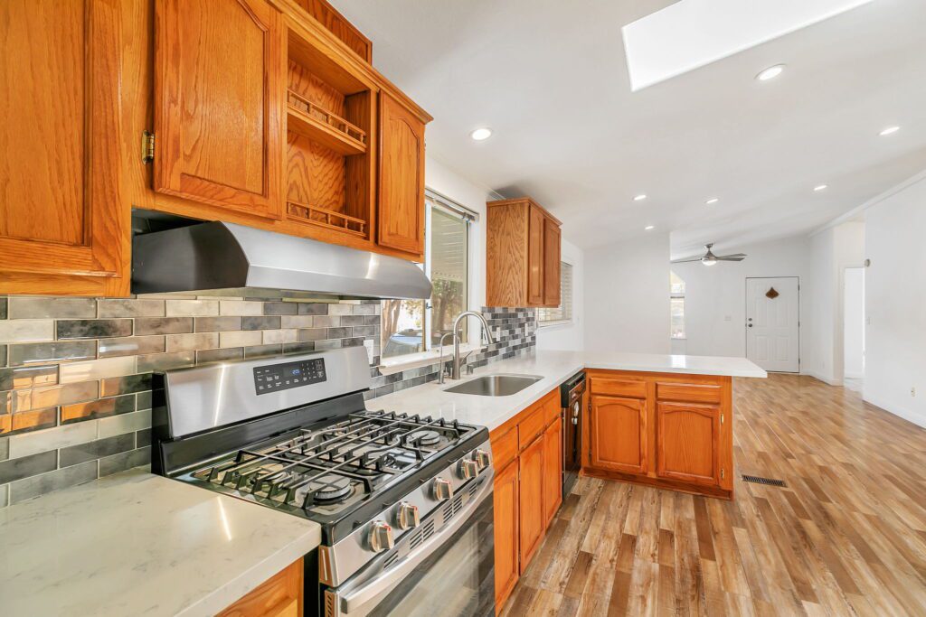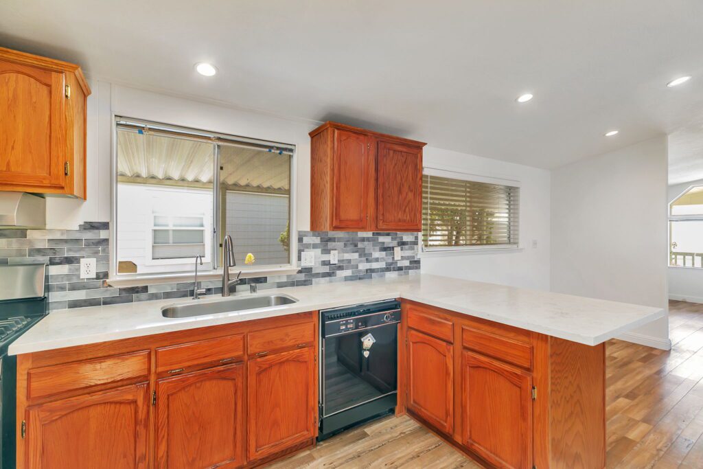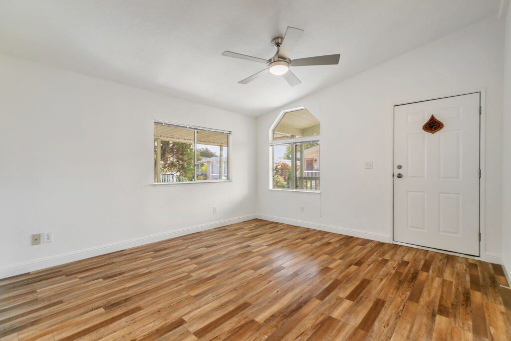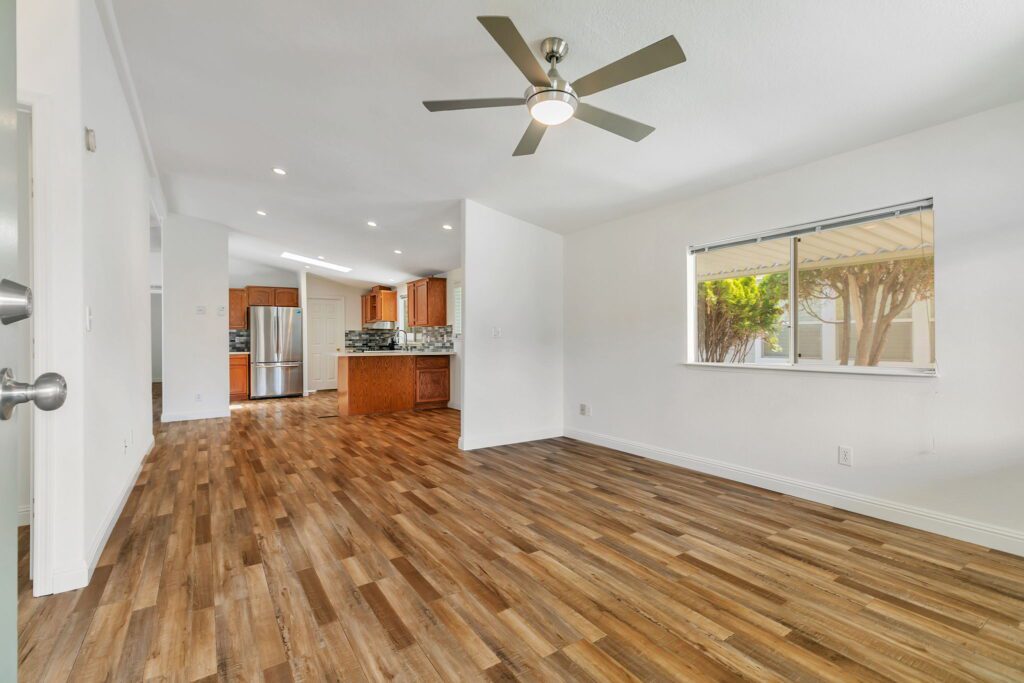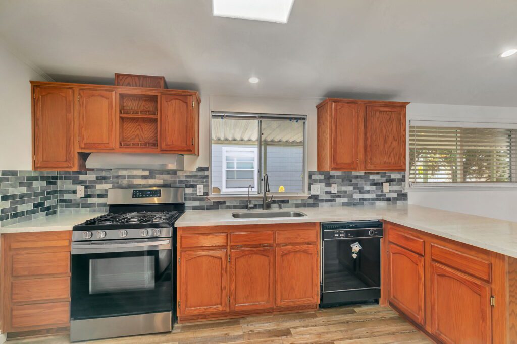 This meticulously maintained manufactured home offers 3 spacious bedrooms & 2 bathrooms in a desirable split floor plan that offers both privacy and functionality. Step into a bright and inviting living room & separate family room, perfect for entertaining or relaxing with loved ones. The renovated kitchen is a showstopper, featuring a large skylight, quartz countertops, stainless steel appliances, tile backsplash, and recessed lighting, all blending modern convenience with timeless elegance. Both bathrooms have been thoughtfully upgraded with stylish finishes, including quartz surrounds, dual sinks, a spacious shower, and a large sunken tub your personal retreat after a long day. This home has been lovingly cared for and thoughtfully updated: 30-year roof (installed in 2018), Brand new water heater (2025), Kitchen updates & bathroom update, laminate flooring throughout, composite decking on porch & rear steps. Enjoy peace of mind, low-maintenance lifestyle in a community that puts everything at your fingertips. With easy access to Hwy 101, 237 & 85, commuting to San Jose, Milpitas, Fremont, Mountain View, Santa Clara, or Palo Alto is a breeze. Don't miss this rare opportunity to own a stylish, move-in ready home in one of Sunnyvale's premier manufactured housing communities! Call (866) 494-8993 today for more information!