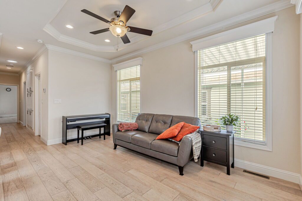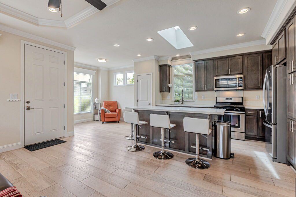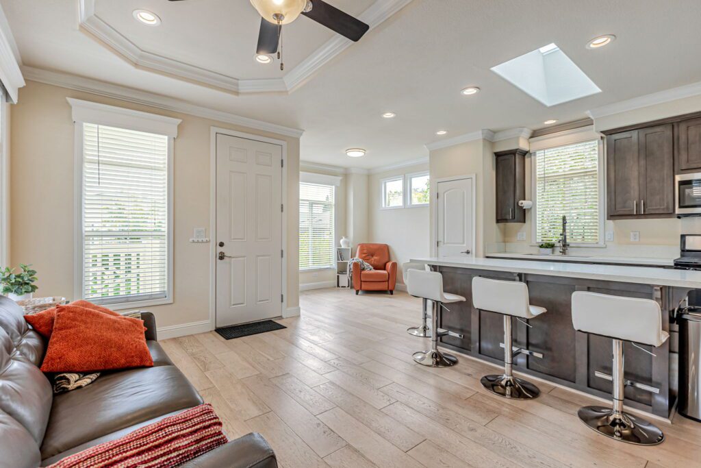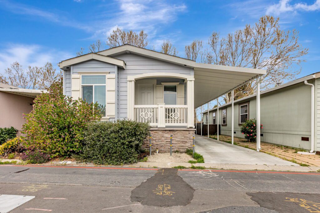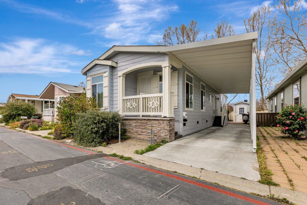 Discover this beautifully designed 2019 Skyline manufactured home in the desirable Adobe Wells MHP, located in the heart of Sunnyvale. Offering a fantastic family-friendly community with a range of amenities, this home blends modern comfort with style. The spacious open floor plan features high ceilings & large windows, creating a bright & airy atmosphere. The kitchen is perfect for both cooking & entertaining with its large island & sleek laminated floors throughout. A generously sized walk-in closet provides additional flexibility, ideal for use as a home office or extra storage space. Relax in the private primary bedroom with access to a Trex deck, offering a tranquil outdoor retreat. The home also boasts a large exterior storage shed, central air conditioning, and a private backyard for added convenience and comfort. Centrally located, this home is just minutes away from top high-tech companies, light rail stations, and Levi's Stadium. Close to shopping centers, restaurants, movie theatre, hiking trails, this is the perfect home for those seeking both tranquility and convenience. Don't miss the opportunity to own this incredible home in a vibrant community! Call (866) 494-8993 today for more information!