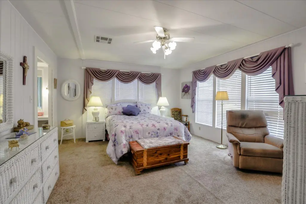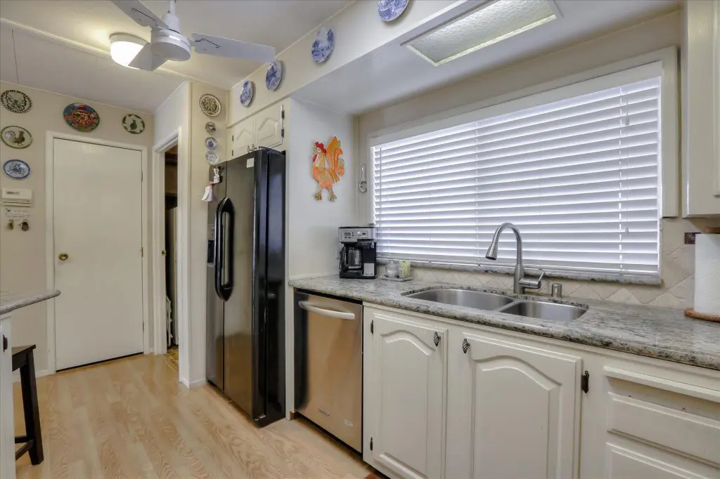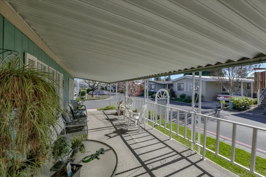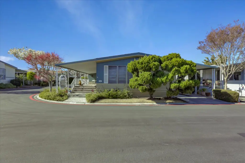Live the good life in Cape Cod, where senior living is at its ideal best. Located on the corner lot, this spacious 3 bedroom, 2 bathroom home features a spacious living room, large family room with a wood burning fireplace, vaulted ceilings with exposed beams, wet bar, dining area with built-in hutch, and multiple windows that brightens up every room. Bright kitchen offers ample cabinetry, granite counters, tile backsplash, and well-maintained appliances. The master bedroom has plush carpeting, ceiling fan, vanity, closet with mirrored sliding doors, and a private bathroom with dual sinks and soaking tub. The two bedrooms and hall bath are a decent size. This home is conveniently located near Mt. View and Santa Clara, close to Highway 101 and 237/85. It is minutes from many high tech companies, Levi's Stadium, and an easy access to public transportation such as VTA and light rails. The peaceful and ideal location of this wonderful home is a hidden gem! Call (866) 494-8993 today for more information!