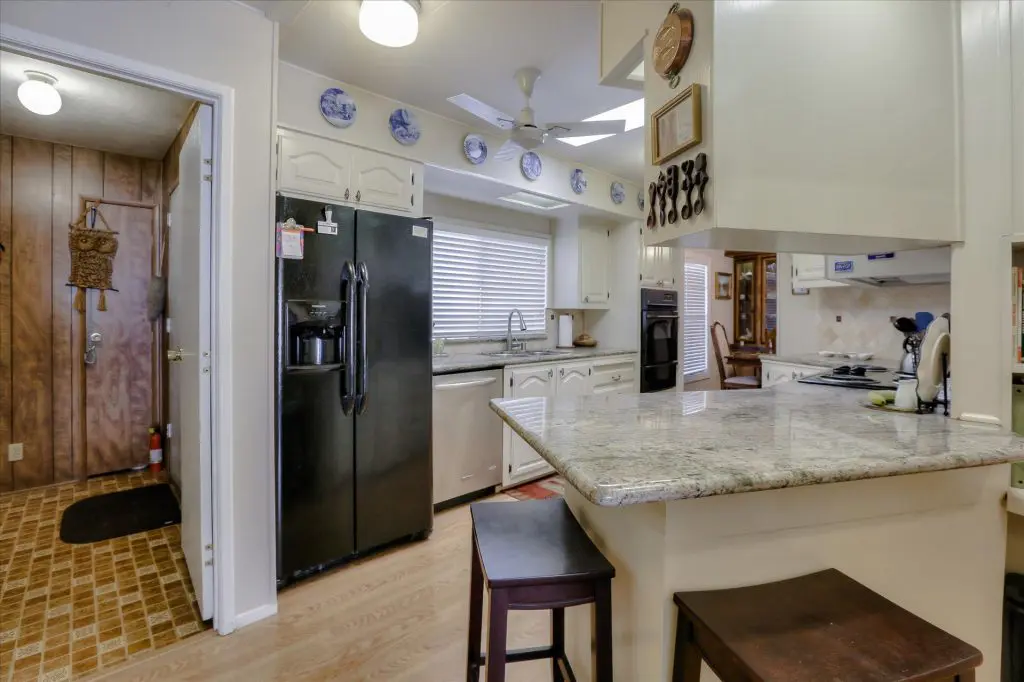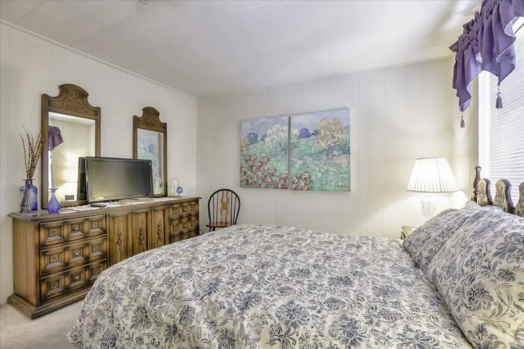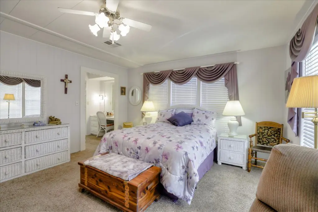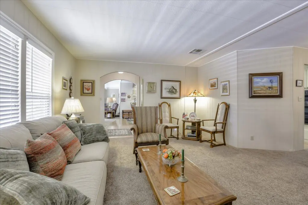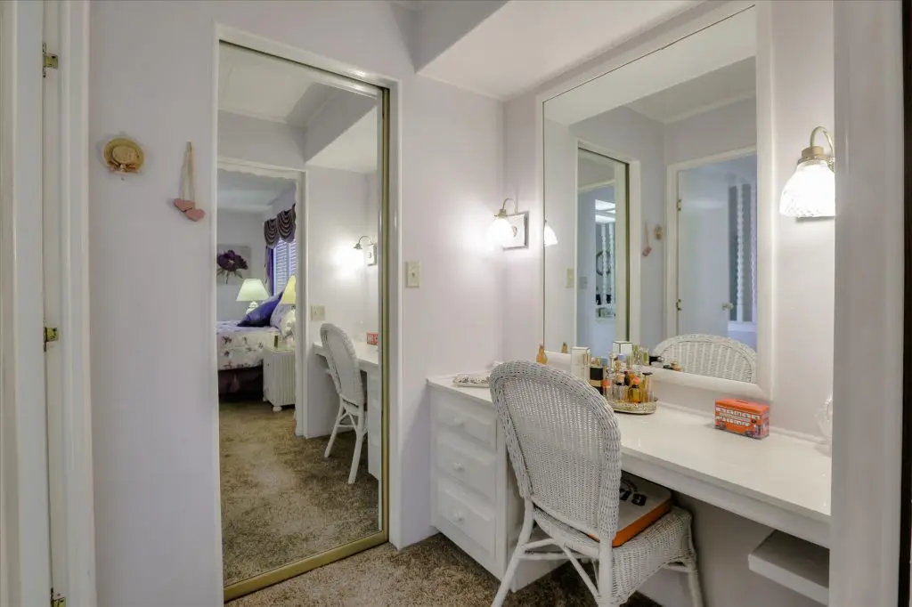 Live the good life in Cape Cod, where senior living is at its ideal best. Located on the corner lot, this spacious 3 bedroom, 2 bathroom home features a spacious living room, large family room with a wood burning fireplace, vaulted ceilings with exposed beams, wet bar, dining area with built-in hutch, and multiple windows that brightens up every room. Bright kitchen offers ample cabinetry, granite counters, tile backsplash, and well-maintained appliances. The master bedroom has plush carpeting, ceiling fan, vanity, closet with mirrored sliding doors, and a private bathroom with dual sinks and soaking tub. The two bedrooms and hall bath are a decent size. This home is conveniently located near Mt. View and Santa Clara, close to Highway 101 and 237/85. It is minutes from many high tech companies, Levi's Stadium, and an easy access to public transportation such as VTA and light rails. The peaceful and ideal location of this wonderful home is a hidden gem! Call (866) 494-8993 today for more information!