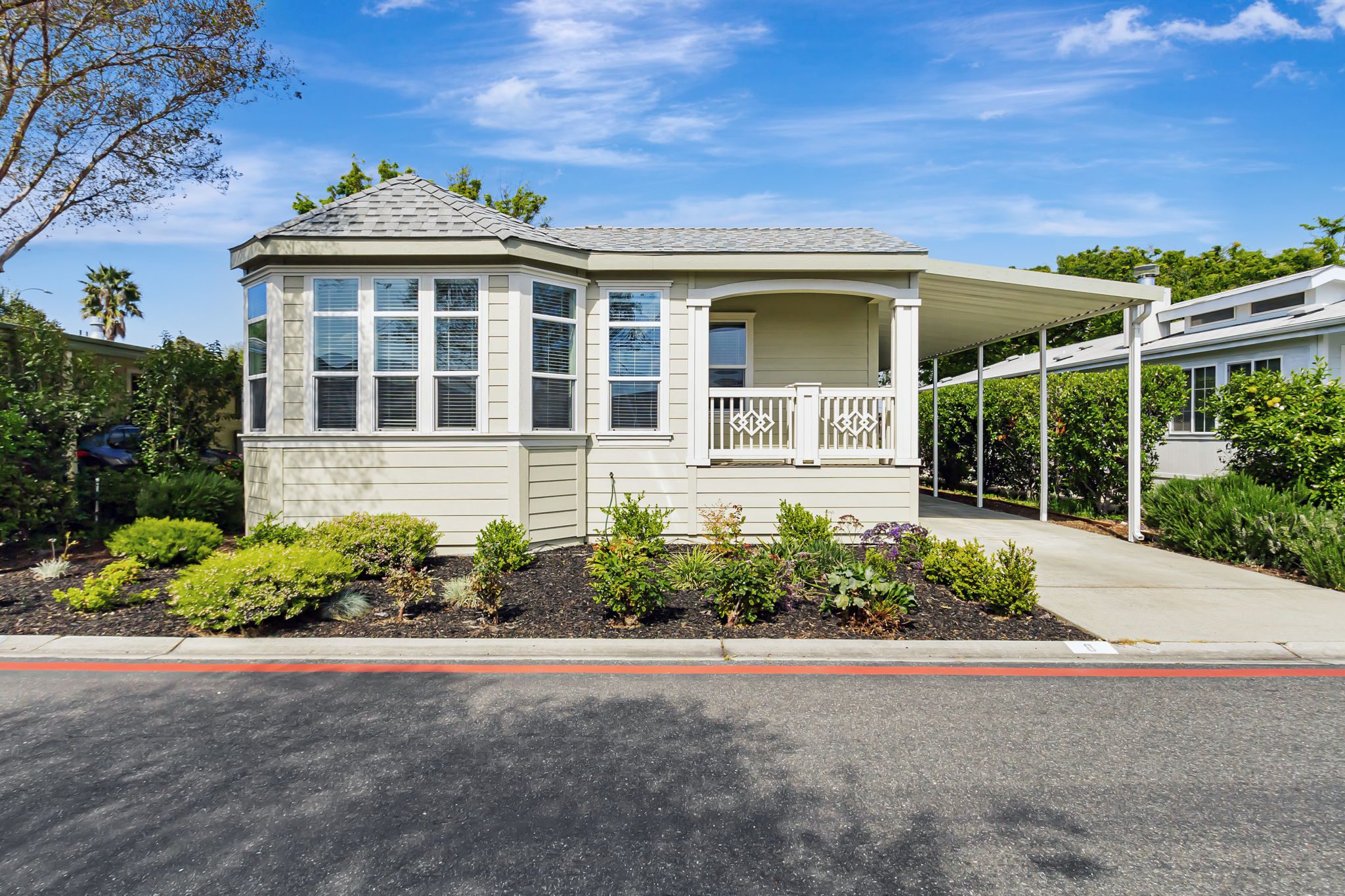 Elegant Skyline Home in Cape Cod Village Spanish Bay Model. This top-of-the-line home offers 3 bedrooms and 3 full baths, including a luxurious primary suite and a spacious junior suite, perfect for hosting guests or enjoying multigenerational living. Step inside to discover a bright and airy open floor plan with large bay windows that flood the space with natural light. The grand living room features a coffered ceiling, a gas fireplace, and custom built-in bookshelves and cabinetry, creating a cozy yet refined atmosphere. The chefs modern kitchen is a true centerpiece, boasting granite countertops, stainless steel appliances, a walk-in pantry, and a generous island that flows seamlessly into the main living area. Retreat to the primary bedroom suite, complete with a tray coffered ceiling, a large walk-in closet, and a luxurious bath featuring quartz countertops, a tiled shower, and a soaking tub for ultimate relaxation. Modern tile bathrooms with high-end finishes, central A/C for year-round comfort. Spacious driveway, large backyard & shed. Conveniently located near top high-tech companies, shopping centers, just minutes from Santa Clara, Mountain View, and San Jose, this home offers both comfort and convenience in one of the most desirable senior communities in the area. Call Lan at (866) 494-8993 today to schedule a private viewing! This is a manufactured home on leased land (not real estate); the land lease is $2,032 per month. 2019 Skyline Serial #: 2G700525LB/A HCD #: DL1164796 *List price excludes closing costs & escrow fees. *Information deemed reliable, but not guaranteed.