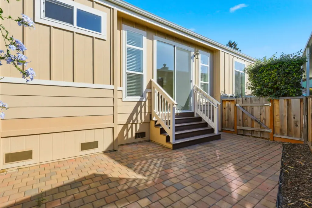 Spacious and beautifully maintained 3 bedroom, 3 bath, plus den, triple-wide manufactured home, situated across from the community clubhouse, swimming pool, and recreation area. This rare home offers comfortable living space with an open floor plan, high ceilings, & abundant natural light throughout. Step inside to a welcoming foyer entry leading to a large living room with coffered ceiling, gas-burning fireplace & expansive windows. The open kitchen features a central island, stainless steel appliances, abundant cabinetry, and a convenient layout perfect for cooking & entertaining. A separate office/den provides ideal space for home office or hobby room. The primary suite is a true retreat, complete with a spacious walk-in closet, private sliding door access to the backyard, and a spa-like bathroom with dual vanities, a jetted sunken tub, and a separate tile shower. The junior suite includes its own ensuite bath and walk-in closet perfect for guests or multigenerational living. Additional highlights include: air conditioning, indoor laundry with washer/dryer, ample hallway storage, fenced backyard with fruit trees, and a storage shed. Enjoy resort-style amenities just steps away, and easy access to HWYs 101, 237, and 85, Levi's Stadium, tech campuses, shopping, and VTA Light Rail. Call (866) 494-8993 today for more information!