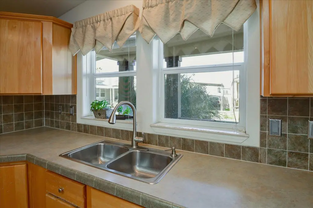 With great curb appeal and in a prime location of Sunnyvale, this 4 bedroom, 2 bath triple wide classic is ready for you to call home! Over 2,000 sq. ft. of living space, the inviting floor plan includes an open living room and dining room great for evening gatherings. Delightful details such as large windows and the fireplace bring out the character and warmth of the home. The eat-in kitchen has tons of cabinetry, large skylight, pantry, stainless steel appliances, and a breakfast bar for on-the-go meals. The master bedroom has a large walk-in closet and bathroom with dual sinks, step-in shower with glass doors, and garden tub. The three guest bedrooms are a great size and can be used as a home office, media room, or nursery. Outside, the backyard deck is just waiting for warm spring/summer weekends. This great home — at a great price — won't last long and is a definite must see! Call (866) 494-8993 today to schedule a viewing of this gorgeous home!