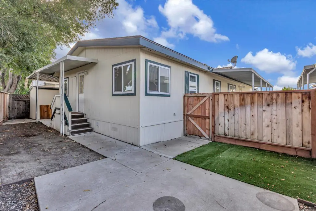 Fantastic opportunity! Rare four-bedroom home located in Sunnyvale's premier all age community, Casa De Amigos. This spacious home offers a split floor plan with three of the bedrooms in the front and the primary in the back. Perfect for larger families and people who are working from home. This home has many recent upgrades that include a brand-new roof, furnace, and exterior paint, laminated flooring, and both kitchen and bathroom counter tops all done this year! Other amenity upgrades include: new vinyl windows thru-out, water heater, stainless kitchen appliances, faucets, blinds, and ceiling fans. Home sits on a perimeter lot with a private enclosed yard space perfect for children and pets! Good-sized driveway will fit most larger vehicles and custom-built shed for all your extra storage needs. Conveniently close to guest parking, light rail transit, and both Hwy 237 & 101. Call (866) 494-8993 today for more information!