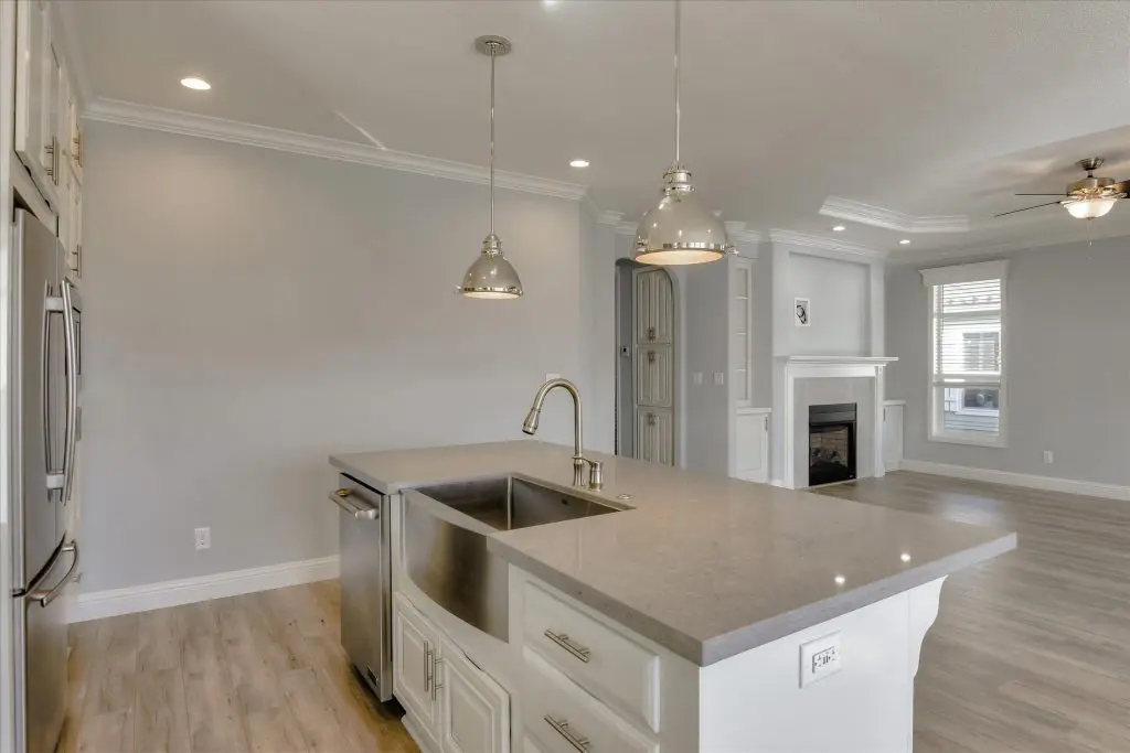 Welcome home. This brand new 3 bedroom, 3 bathroom home is located in Sunnyvale's premiere manufactured home community of Casa De Amigos. The open living room invites time together, with a contemporary gas fireplace to add a touch of warmth to every occasion. The chef's kitchen blends in seamlessly, and the large kitchen island is perfect for after-school snacks and homework as well as casual family meals. At the end of every busy day, the true master suite becomes your personal sanctuary, and the resort-style bath melts away the stress of the day. Additional luxurious features includes 9' tray ceilings, gleaming wood laminate floors, quartz and Carrara marble counters, dual pane windows, and Jenn-Air stainless steel appliances. Both master suites has an expansive closet and private bathrooms. Do not miss your opportunity to learn about this home and make it yours! Call today at (408) 998-4663 for more information on home in the Silicon Valley!