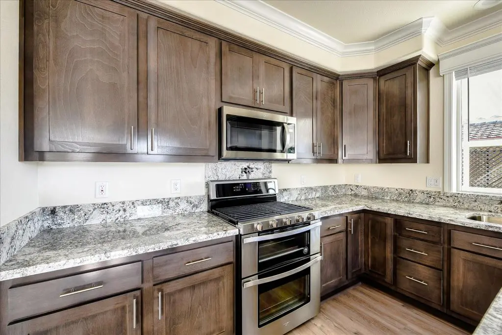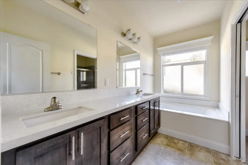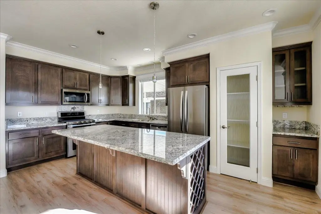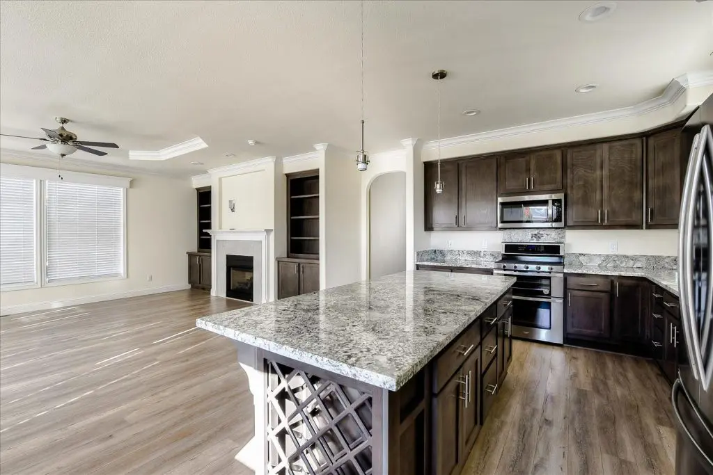 Brand new home is coming soon to the all-age community of Chateau La Salle. Showcasing a profound box bay window, this contemporary and open floor plan with 3 bedroom, 3 bathroom seamlessly blends the spacious living room with the kitchen and dining room. Top notch finishes include quartz countertops, wood cabinets, and stainless steel appliances. Soaring 9' high flat ceilings are lined with crown molding, and wood laminate floors are surrounded by 5 ¼" baseboards. The large kitchen island offers room for up to four bar stools and has a built-in wine rack. Across the living room, a beautiful gas fireplace encased in a tile surround sits below a recessed feature wall that is perfect for a flat screen TV. At the rear of the home, true master suite features a large walk-in closet, his and her sinks, soaking tub, and a walk-in shower. The second master suite has ample closet space and a private bathroom. Call (866) 494-8993 today for more information on this home!