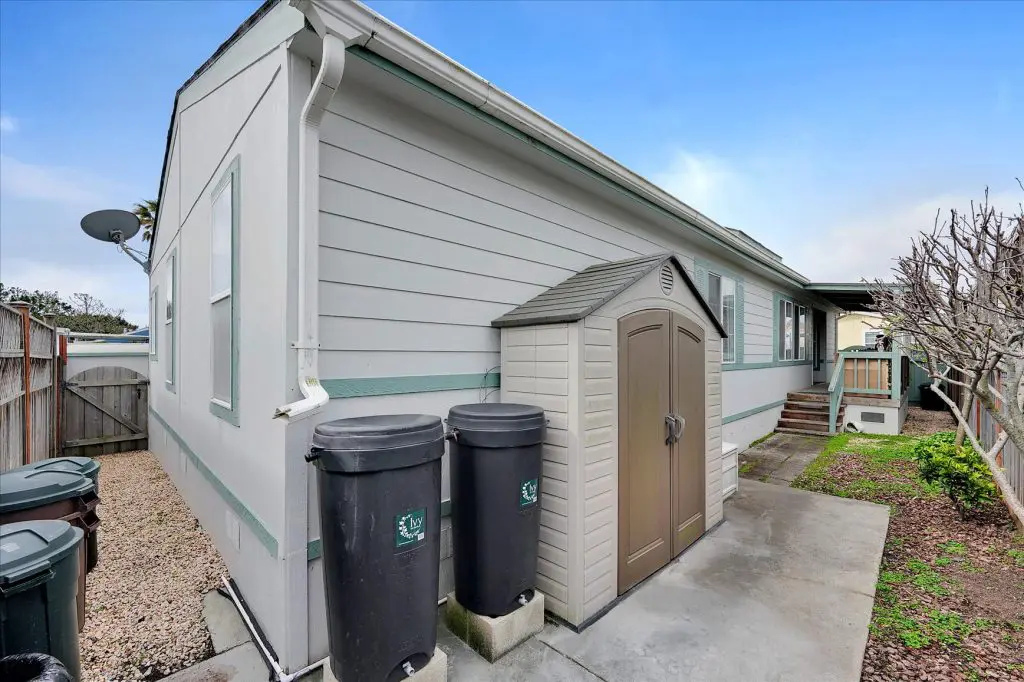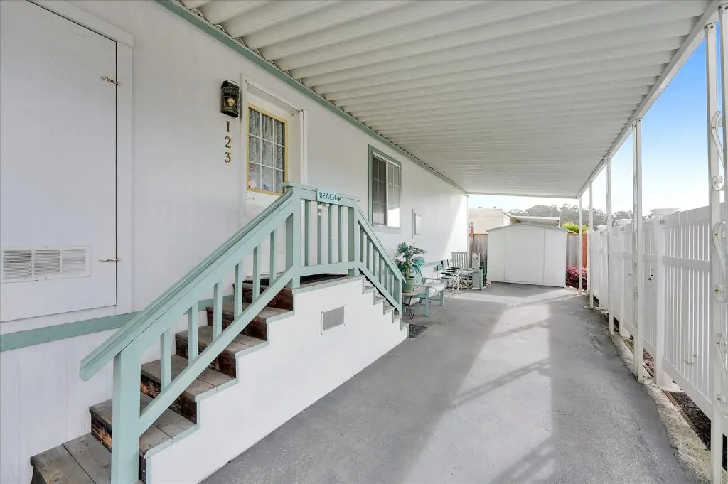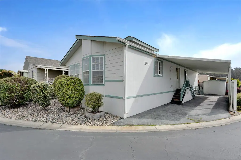 Nestled on the low bluffs with the Pacific Ocean as its doorstep, experience California beach living at a fraction of the cost. Beautifully landscaped with a gated side deck, this home showcases a spacious living, formal dining room, large windows, high vaulted ceilings, cozy fireplace, and plush carpeting throughout. The eat-in kitchen features plenty of counter/cabinet space, well-maintained appliances, and a breakfast nook. The master bedroom has a large closet with sliding doors, ceiling fan, and a private bathroom with dual sinks, garden tub, and step-in shower stall. Secondary bedrooms are a comfortable size, which is perfect as a home office or hobby room. The washer and dryer are also include with the sale. De Anza is an age-qualified community and is located just steps away from Natural Bridges State Park. The community offers a spacious clubhouse for hosting social events, well-equipped fitness center, swimming pool, and a Whirlpool spa. Call (866) 494-8993 today to schedule a private viewing before this must see home sold!