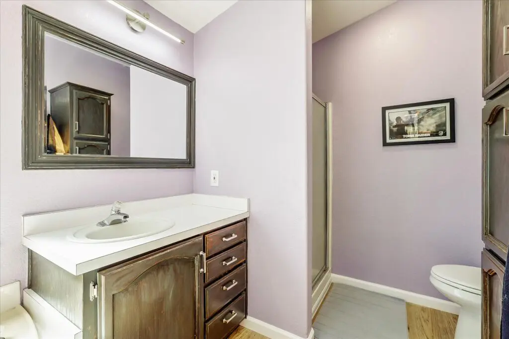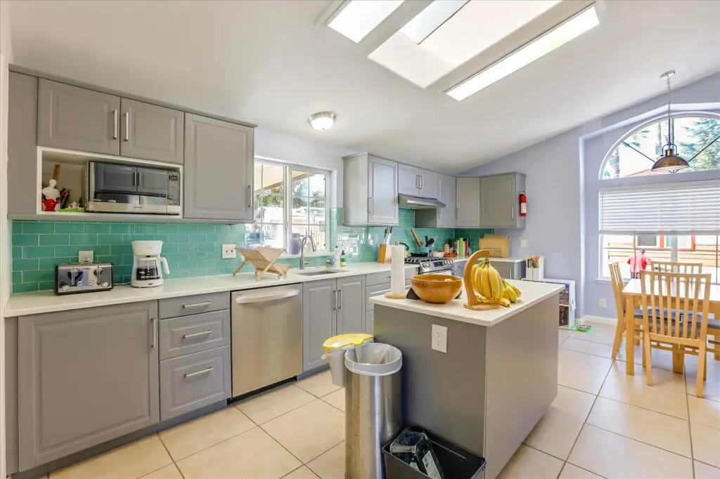 Situated in a highly sought-after Sunnyvale neighborhood, this charming 3 bedroom, 2 bathroom home aims to please. The home's large, private stamped-concrete patio has plenty of room for entertaining, gardening, and pets, and it is surrounded by long lasting Trex decking (entry steps were also redone with Trex). Once inside, the home boasts beautiful wood laminate floors, a cozy fireplace, separate dining room, ample storage, and an abundance of natural light. The huge kitchen has tile floors, a subway tile backsplash, quartz counters, stainless steel appliances, a single cell stainless steel sink, a skylight, and a breakfast nook. The primary bedroom is grand, with a luxurious en-suite bath and a large closet. The second and third bedrooms are extremely versatile and could easily serve as a home office or hobby room. El Dorado is a great community close to Silicon Valley major high-tech companies, shopping, restaurants, and easy freeway access. Call (866) 494-8993 today to schedule a private viewing before this home is sold!