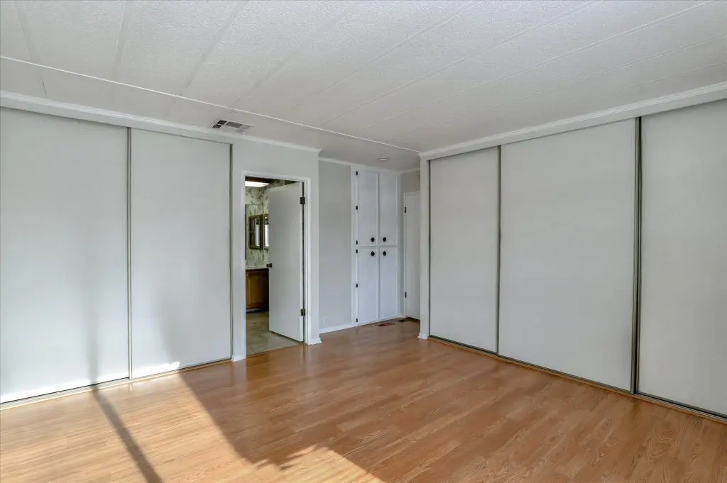 This expansive triple wide 3 bedroom, 2 bath split floor plan on a prime perimeter lot with backyard large enough for entertaining is move in ready. Laminate floors, beautiful covered brick entry front patio, hobby and storage sheds, living and family rooms, hospitality bar, custom made entertainment cabinet, built-in corner display cabinets throughout. Central A/C and appliances included. Low space rent of $708! Just minutes from the Charming Restaurants and shops of Down Town Morgan Hill. This is a pet friendly community with many outdoor amenities including Pool, Spa, Gourmet BBQ facilities, Bocci Ball, Croquet Court, Horse Shoe Pit, and RV Storage.