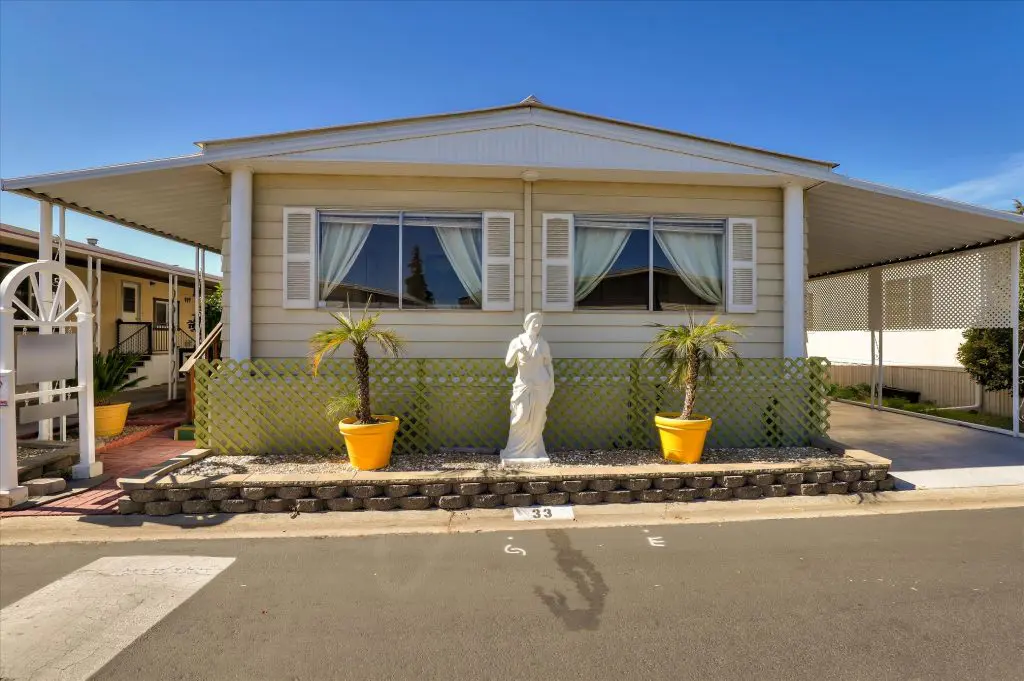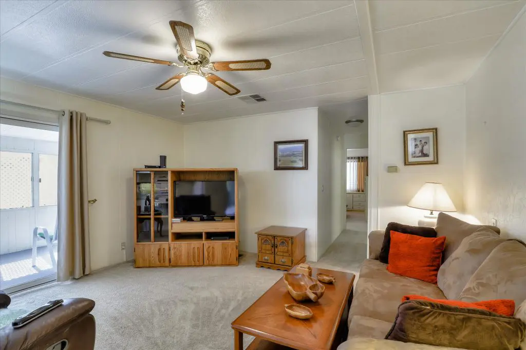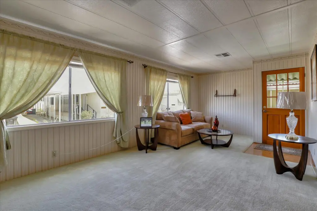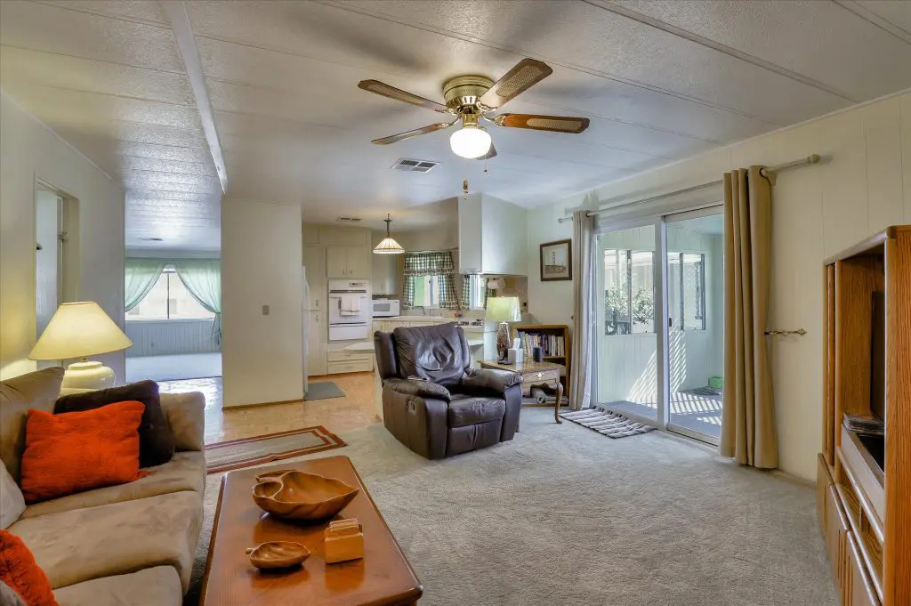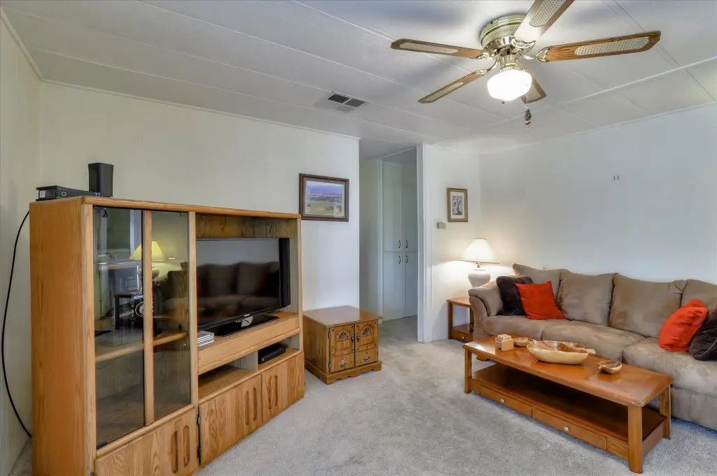 Beautiful and classic 2 bedroom, 2 bath home is located in Morgan Hill's outstanding senior community of Hacienda Valley. This home boasts an open floor plan with a large living room, family room, dining area with a built-in hutch, wood laminate floors, plush carpets, and dual pane windows throughout. The cozy kitchen features a peninsula breakfast bar, ample cabinetry, and matching white appliances. The family room has a sliding door to the covered side porch. The master suite is a comfortable size, featuring a private bathroom with a step-in shower. The guest bedroom and full hall bathroom are also a great size. Hacienda Valley Estates is non-profit community that invests substantially in the improvements and amenities of this 55+ community. Hacienda Valley is a rare pet friendly park allowing two pets with park approval. Financing is available for those who qualify. Live affordably near the heart of Downtown Morgan Hill! Call (866) 494-8993 today to schedule a private viewing!