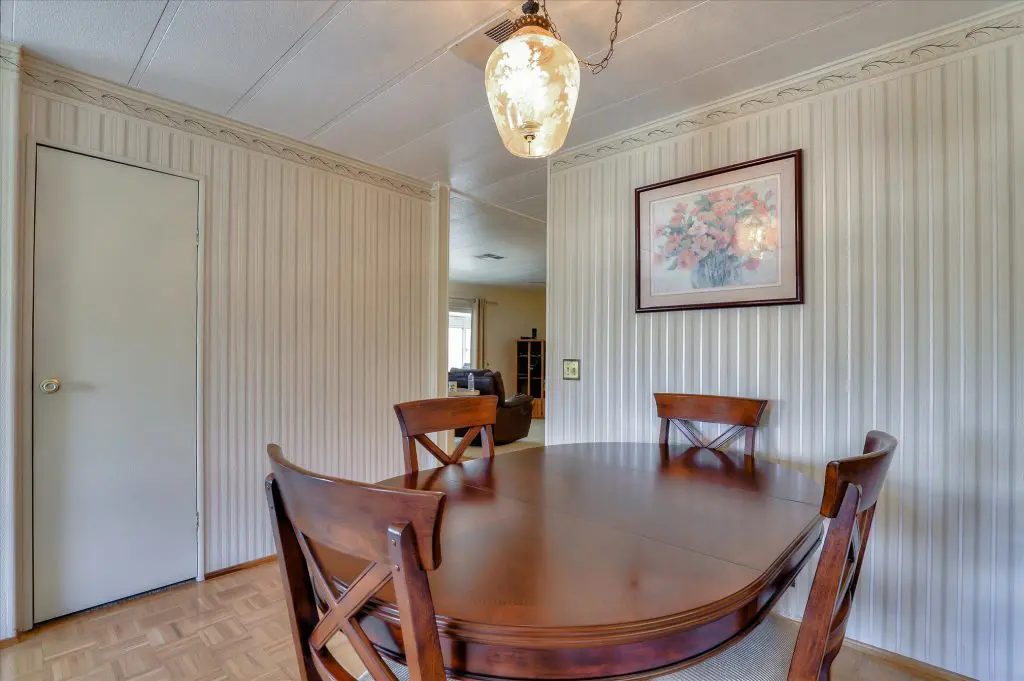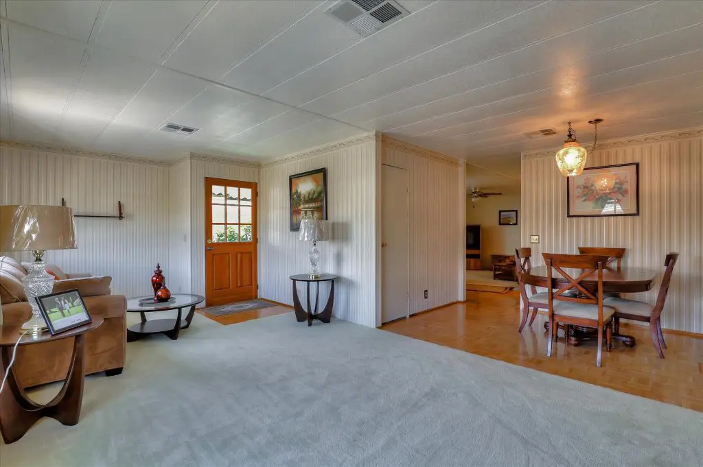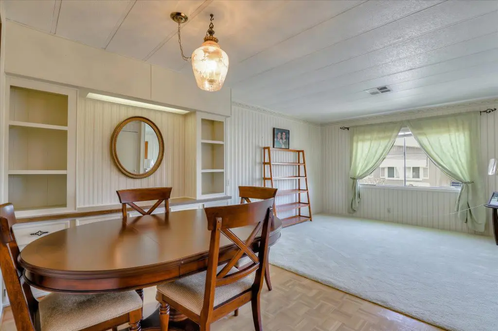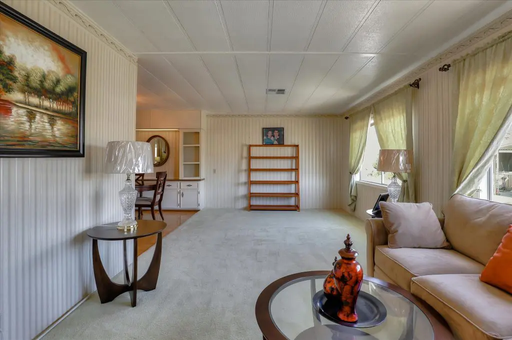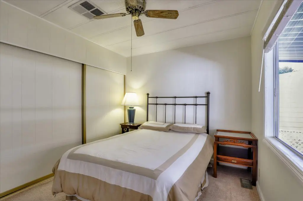 Beautiful and classic 2 bedroom, 2 bath home is located in Morgan Hill's outstanding senior community of Hacienda Valley. This home boasts an open floor plan with a large living room, family room, dining area with a built-in hutch, wood laminate floors, plush carpets, and dual pane windows throughout. The cozy kitchen features a peninsula breakfast bar, ample cabinetry, and matching white appliances. The family room has a sliding door to the covered side porch. The master suite is a comfortable size, featuring a private bathroom with a step-in shower. The guest bedroom and full hall bathroom are also a great size. Hacienda Valley Estates is non-profit community that invests substantially in the improvements and amenities of this 55+ community. Hacienda Valley is a rare pet friendly park allowing two pets with park approval. Financing is available for those who qualify. Live affordably near the heart of Downtown Morgan Hill! Call (866) 494-8993 today to schedule a private viewing!