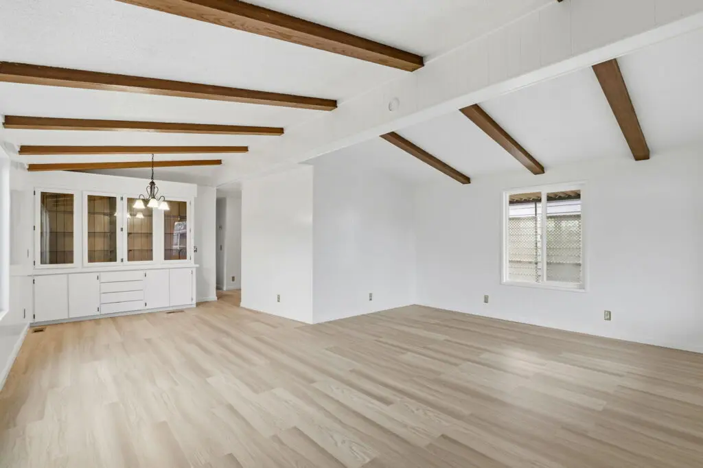 This recently remodeled 2 bedroom, 2 bathroom home is located in the desirable 55+ community of Hacienda Valley in Morgan Hill. With 1,120 sq ft of living space, it features vaulted ceilings with exposed beams, a spacious living area, and a built-in dining hutch. The kitchen offers plenty of cabinet space and comes with appliances. Both bedrooms are comfortably sized, and the home includes a washer and dryer. A new furnace and A/C were installed just a year ago. Hacienda Valley is an age-restricted 55+ community; additional occupants must be 45 and over. Live affordably near the heart of Downtown Morgan Hill! Call (866) 494-8993 today for more information!