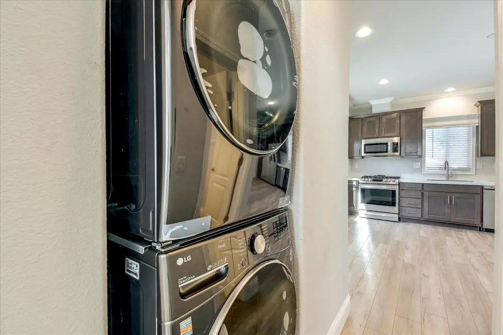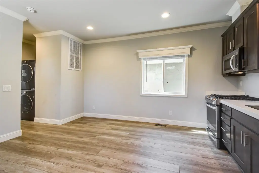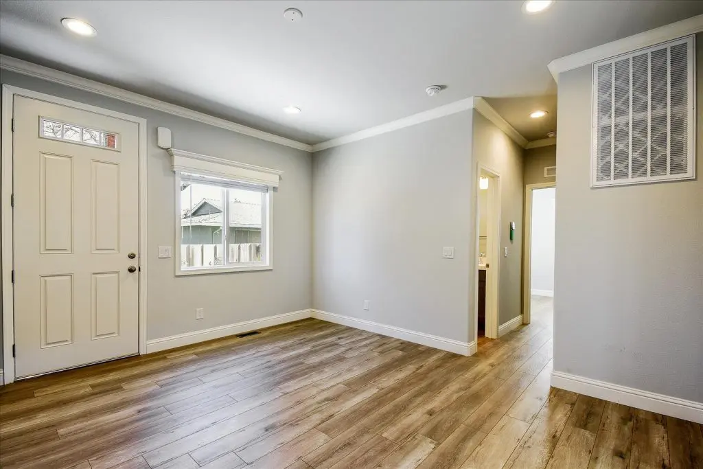 The unit features a large sliding door and recessed lighting to maximize natural light and ventilation. Finished with upscale detailing, in-unit laundry, and ample patio space, this ADU delivers functionality and comfort that far exceeds its size.