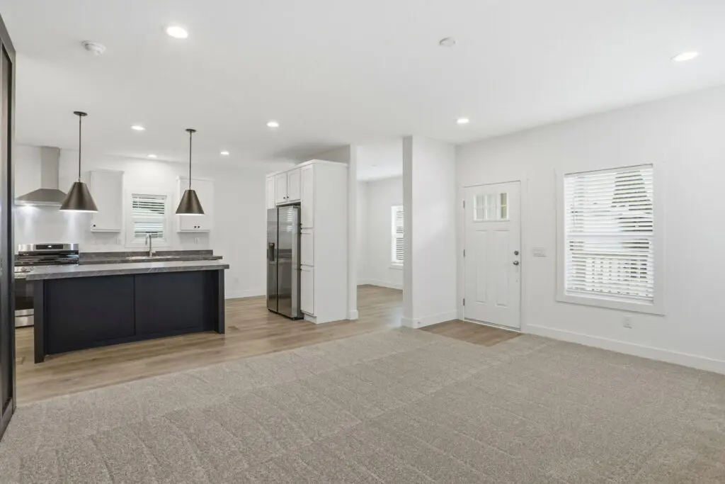 This brand new 3 bedroom, 2 bath home in the all-age community of Lamplighter combines modern style with everyday comfort in an unbeatable Silicon Valley location. Step inside to a bright, welcoming living room featuring a stylish accent wall, oversized windows that flood the space with natural light, and an open concept layout designed for easy living and entertaining. The modern kitchen overlooks the living area and features a spacious island with sleek black countertops, durable white cabinetry, and Samsung stainless steel appliances. Just beyond the kitchen, the dining area offers a cozy and slightly tucked-away setting, ideal for meals with family and friends. At the rear of the home, the spacious master suite includes a large walk-in closet and a large bathroom with dual sinks and a step-in shower. Two additional bedrooms offer comfortable living space and generous closet storage. Lamplighter offers a variety of family-friendly amenities, including a clubhouse available for private events, two swimming pools, and convenient visitor parking, all within a well-maintained community. Ideally located directly across the street from The @First complex, residents enjoy easy access to Target, CVS, banks, shops, restaurants, and more. Don’t miss this opportunity for affordable, modern living in a prime location. Call (866) 494-8993 today for more information!