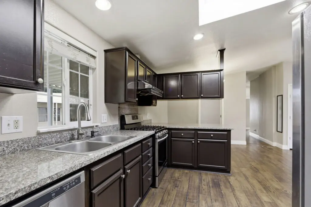 Rare opportunity in the highly desirable Mary Manor Estates! This beautifully maintained 2007 Waterford home, thoughtfully designed split floor plan featuring three bedrooms on one end and a private primary suite on the other for optimal comfort and privacy. Step inside to find stylish Pergo flooring throughout and tastefully updated bathrooms. The spacious kitchen is equipped with granite countertops, stainless steel appliances, a pantry, and a bright eat-in dining area enhanced by a skylight and overhead lighting perfect for everyday living and entertaining. The primary suite serves as a relaxing retreat, complete with dual sinks, granite countertops, a medicine cabinet, and a luxurious bathroom featuring both a soaking tub and separate shower. Additional highlights include double-pane windows throughout, a generous 3-car carport, a storage shed, and a side yard offering added outdoor space. Ideally located with close proximity to shopping, major freeways, top-rated schools, and leading high-tech employers, this home provides an easy commute to Mountain View, Cupertino, Los Altos, Santa Clara, and Palo Alto. Don't miss this exceptional opportunity to own a beautiful home in a charming and well-established community perfect for creating lasting memories. Call (866) 494-8993 today for more information!