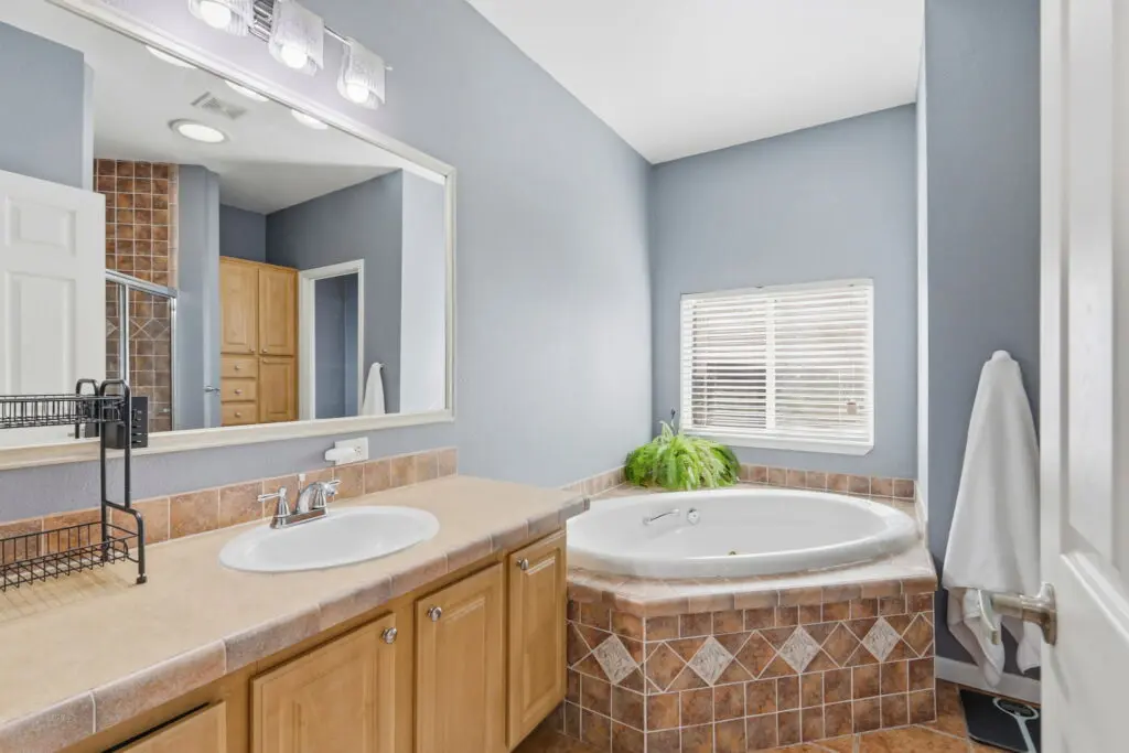 Welcome to this meticulously maintained 2004 triple wide manufactured home, ideally located in one of Sunnyvale's most sought-after family communities. This beautifully designed residence features 3 spacious bedrooms and 2 bathrooms, including a luxurious primary suite that offers a serene retreat for relaxation or work, complete with a dedicated office space and an impressive spa-like ensuite bathroom. The primary suite also boasts a generous walk-in closet, elegantly concealed behind stylish barn doors. As you step inside, you’ll be greeted by real hardwood floors that flow throughout the home, enhancing the warm and inviting atmosphere. The heart of the home is the cozy living room, featuring a stunning two-way gas fireplace that creates a delightful focal point shared with the dining area—perfect for gatherings or quiet evenings at home. The galley-style kitchen is a chef's dream, equipped with modern appliances and a convenient sliding glass door that opens to the front patio, seamlessly blending indoor and outdoor living.
