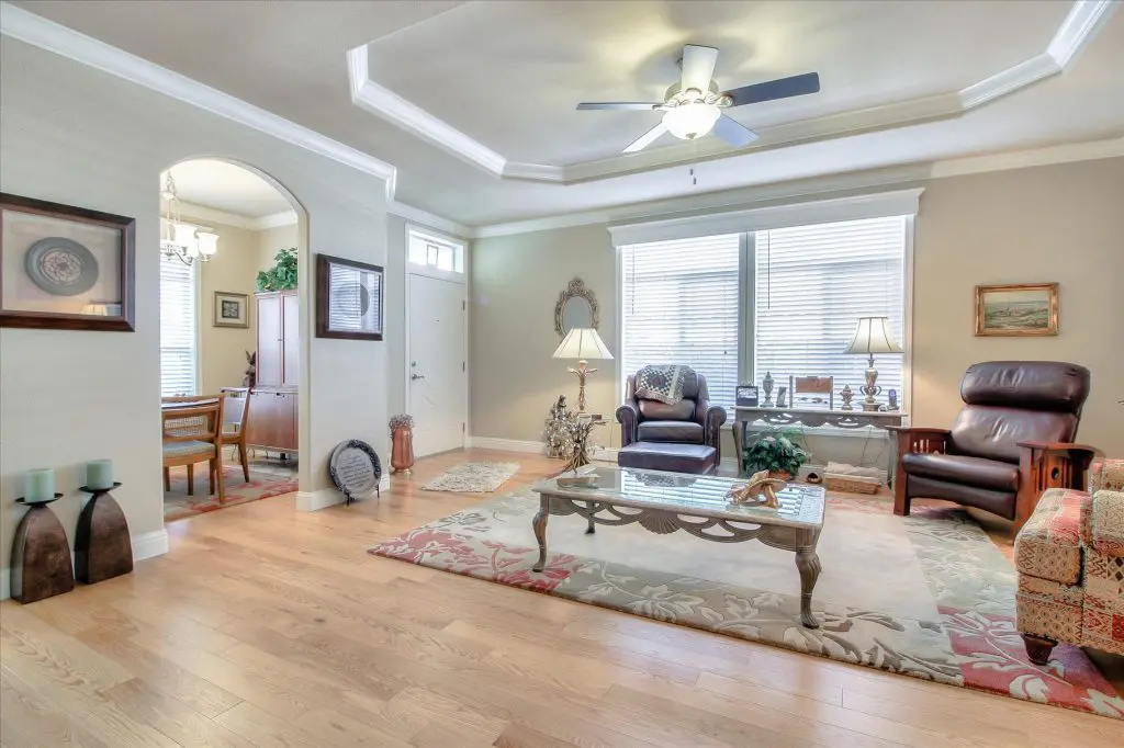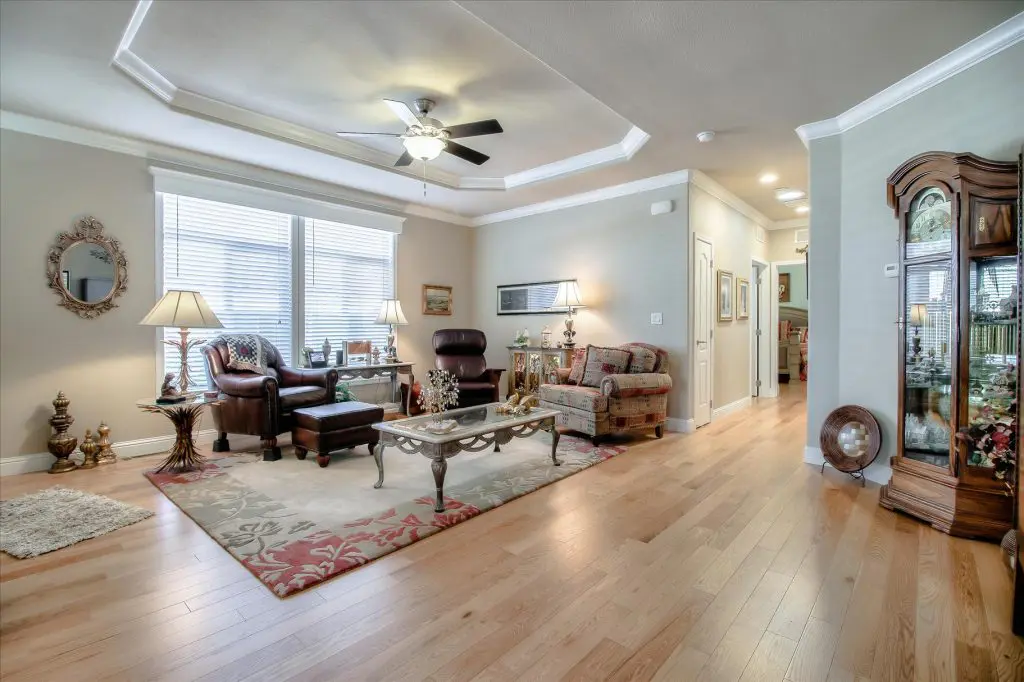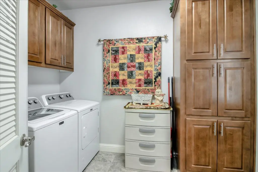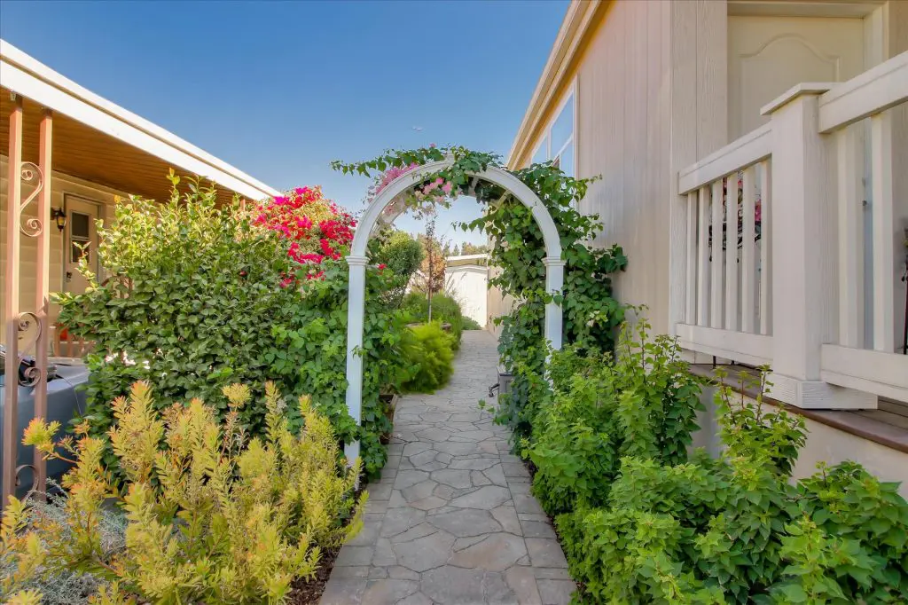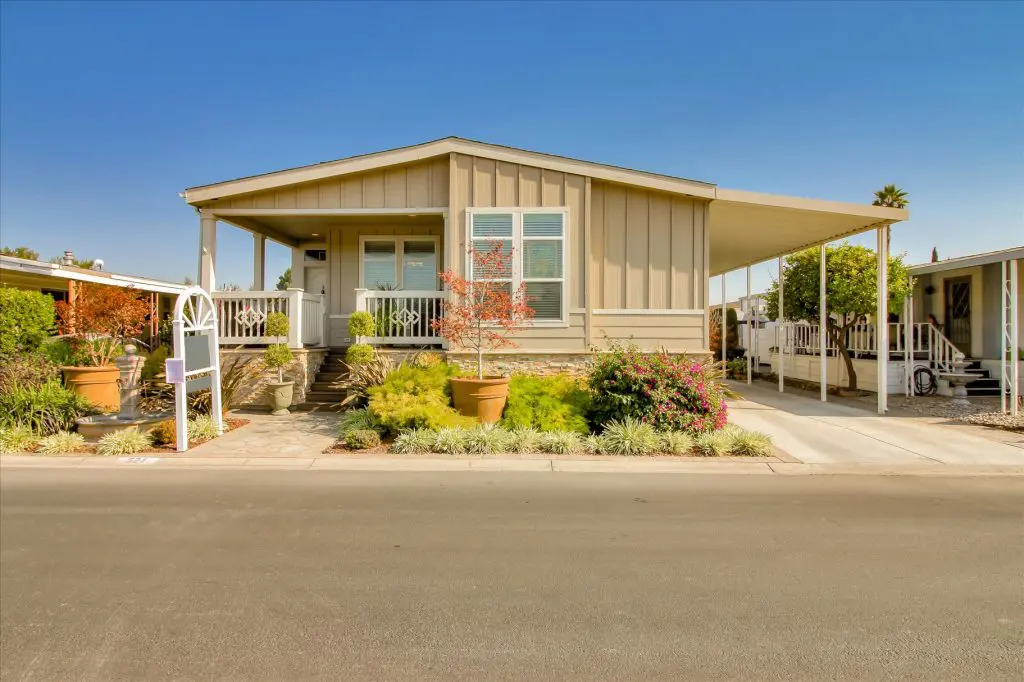 This home is manufactured home living at its best. Not only is it located in a 5 star senior mobile home community, it is meticulously decorated, maintained, and the amenities are second to none! Top quality features, inside and outside, make this home fit for royalty. At over 1,750 square feet, this home boasts 3 great-sized bedrooms, separate formal dining room, spacious living room, and a gourmet eat-in kitchen. Granite and Corian counters, pantry, stainless steel appliances, and an island make cooking a dream. Custom tile on the shower stalls and floors make both bathrooms a joy! The following upgrades were added in 2017: new washer/dryer, mailbox and professional landscaping, oak flooring, light fixtures, earthquake bracing, blinds, water softener, and custom ceiling fans. There is so much more to this gorgeous home! Don't miss out on this beauty! Call (866) 494-8993 today to schedule a viewing before it is sold!