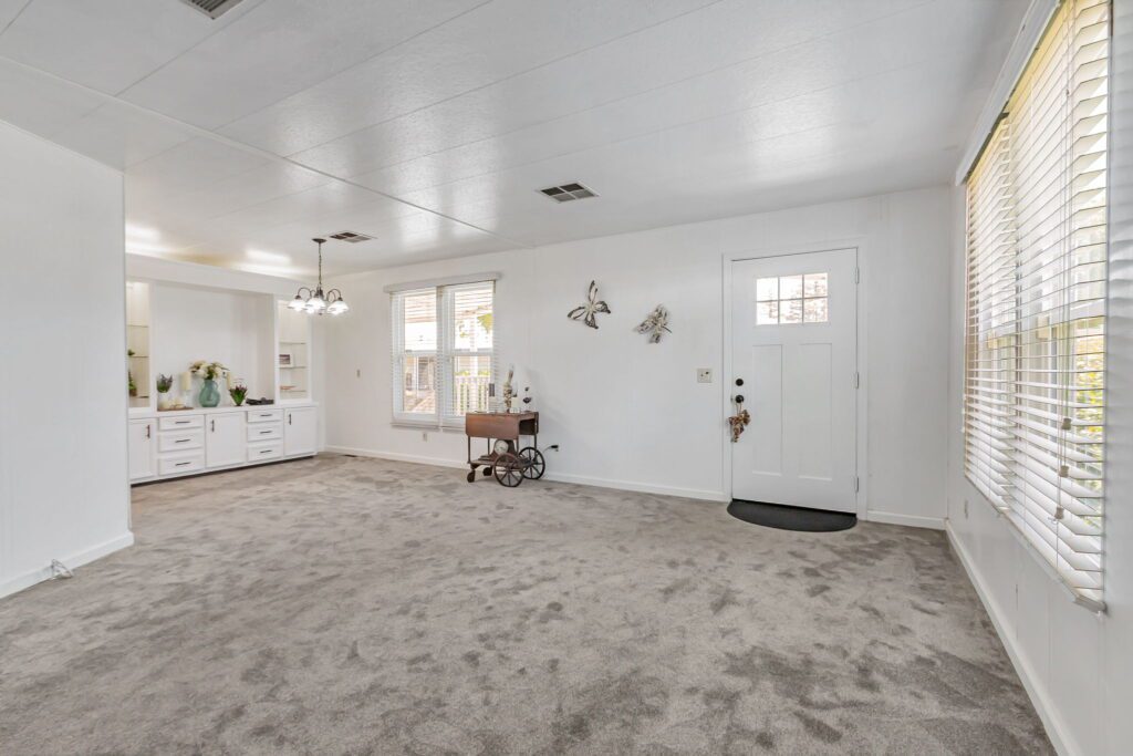 Charming & Updated Mobile Home in Desirable 55+ Moss Creek Community San Jose. Welcome to this beautifully updated mobile home in the highly sought-after Moss Creek senior community of San Jose. This spacious, light-filled residence combines comfort, style, and unbeatable convenience in one of the area's most welcoming 55+ neighborhoods. Step inside to discover an open and airy layout featuring both a separate family room and a living room perfect for relaxing or entertaining. The home has been thoughtfully upgraded with dual-pane windows throughout, flooding the space with natural light while improving energy efficiency. Enjoy the fresh, move-in ready feel with brand-new carpet and modern linoleum flooring in the kitchen. The large backyard is a rare find that's ideal for gardening, outdoor enjoyment, or simply soaking in the California sunshine. A spacious, covered front porch adds even more charm and functionality, offering a peaceful spot to unwind. Located just minutes from shopping centers, popular restaurants, and top medical offices, this affordable home also boasts low space rent and a low-maintenance lifestyle in a quiet, well-maintained community. Don't miss your opportunity to own this hidden gem in a prime San Jose location! Low space rent $1,015/mo. Age restriction. Call (866) 494-8993 today for more information!