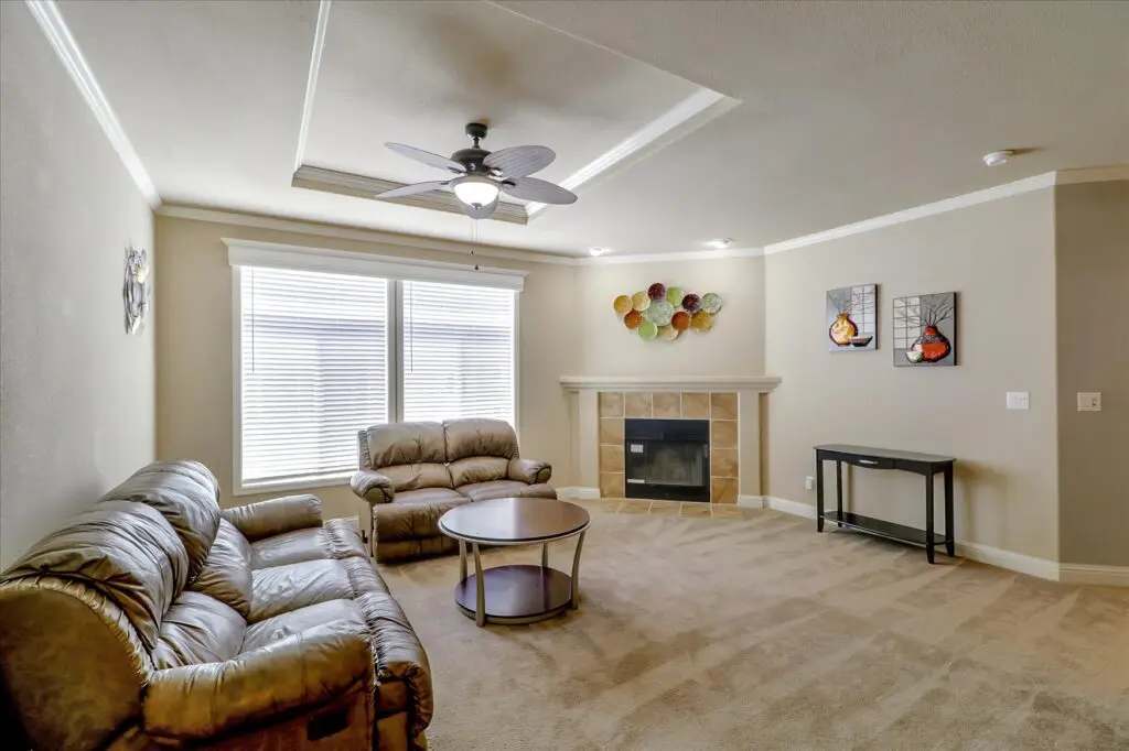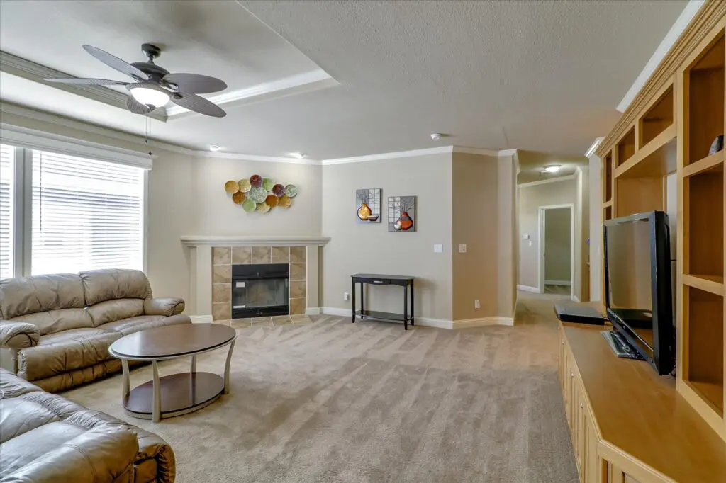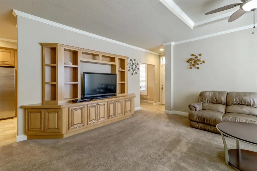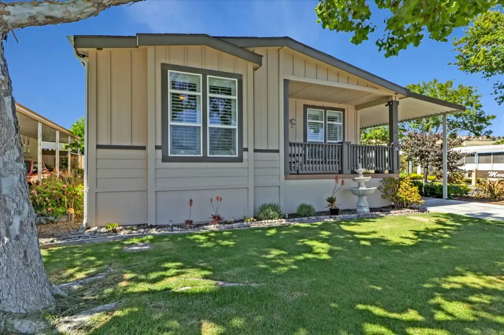 Charming home on traditional residential street in the family community of Mountain Shadows. This home has a bright and spacious Pebble Beach floor plan known for its galley kitchen with built-in energy efficient appliances and granite countertops, expansive living room with built-in entertainment center, and formal dining room. In the living room, you will find a cozy fireplace, formal-entry foyer, elegant crown molding, and wood window trim. Luxurious primary suite with has dual sinks, jetted tub, tile shower, and linen closet. Upgraded with plantation shutters, high ceiling, dual pane windows, upgraded insulation, central heat and air conditioner, 2 large sheds, extra long driveway for 3+ cars. Ideal location between Willow Glen and Blossom Valley. Conveniently located close to stores, fine dining, shopping, and public transportation. Minutes from Oakridge Mall, theatre, and shops. Excellent family community. This is a rare home with low space rent. Call (866) 494-8993 today for more information!