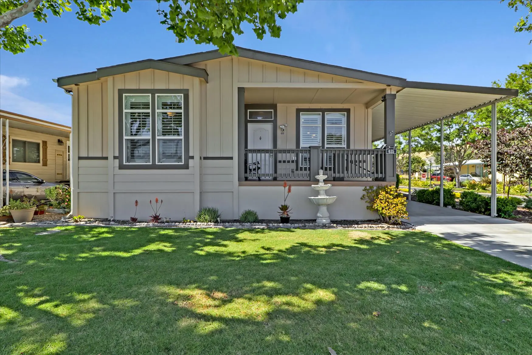 Charming home on traditional residential street in the family community of Mountain Shadows. This home has a bright and spacious Pebble Beach floor plan known for its galley kitchen with built-in energy efficient appliances and granite countertops, expansive living room with built-in entertainment center, and formal dining room. In the living room, you will find a cozy fireplace, formal-entry foyer, elegant crown molding, and wood window trim. Luxurious primary suite with has dual sinks, jetted tub, tile shower, and linen closet. Upgraded with plantation shutters, high ceiling, dual pane windows, upgraded insulation, central heat and air conditioner, 2 large sheds, extra long driveway for 3+ cars. Ideal location between Willow Glen and Blossom Valley. Conveniently located close to stores, fine dining, shopping, and public transportation. Minutes from Oakridge Mall, theatre, and shops. Excellent family community. This is a rare home with low space rent. Call (866) 494-8993 today for more information! This is a manufactured home on leased land (not real estate); the land lease is $978.24 per month. 2009 Skyline Serial #: EK700169YB/A HCD #: DL1164796 *List price excludes closing costs & escrow fees. *All information provided is deemed reliable, but is not guaranteed and should be independently verified. *Buyers are responsible for verifying the accuracy of all information. Data last updated: August 19 2022