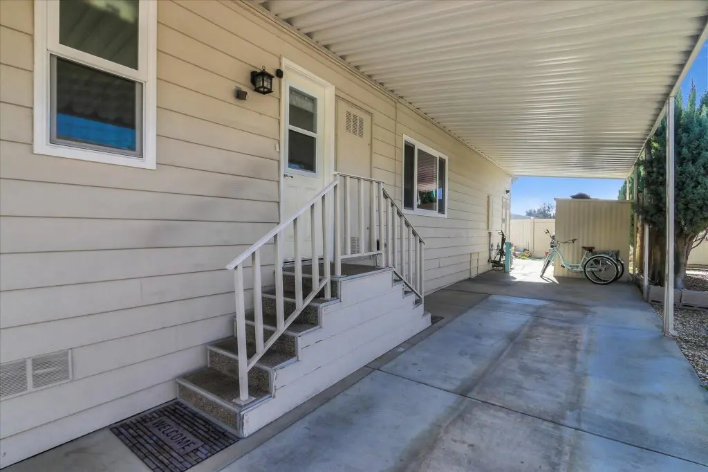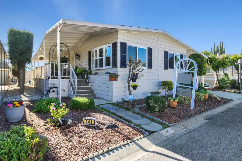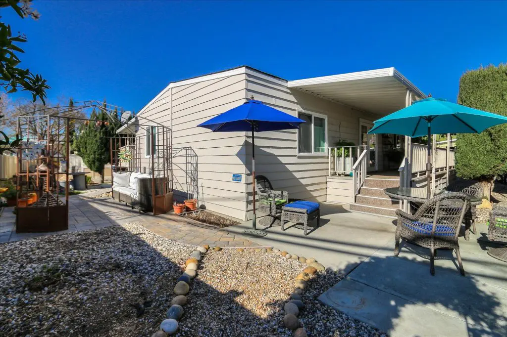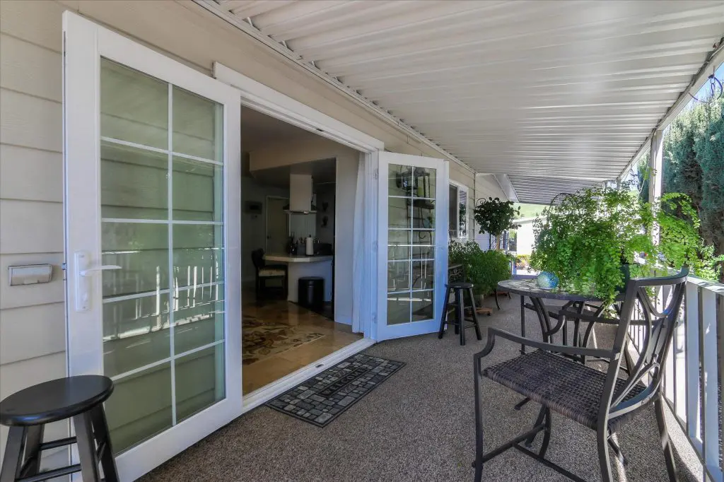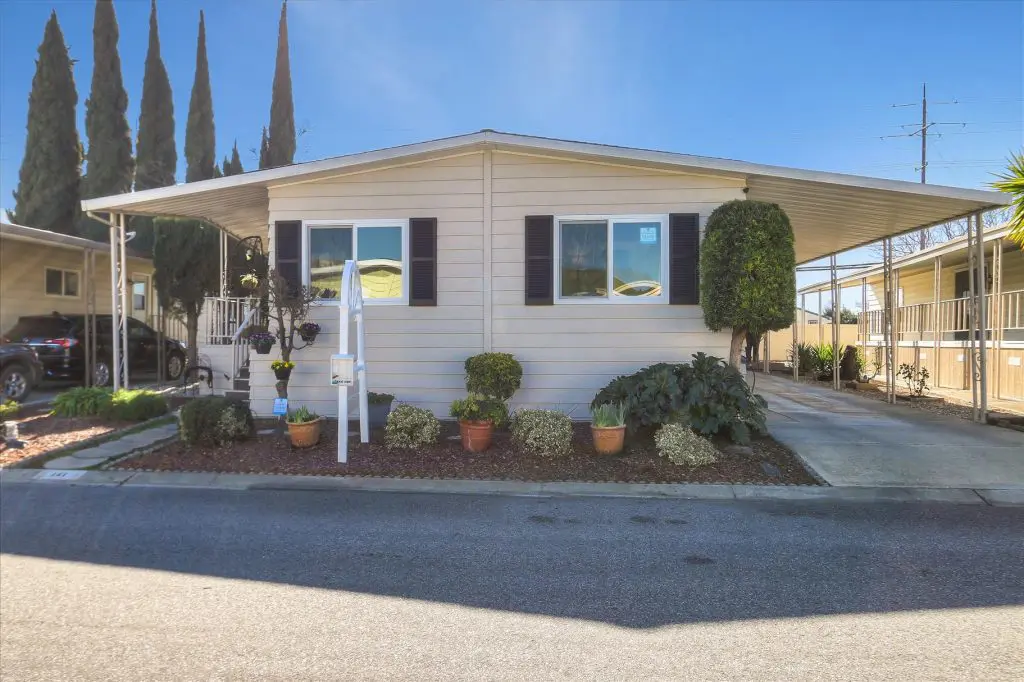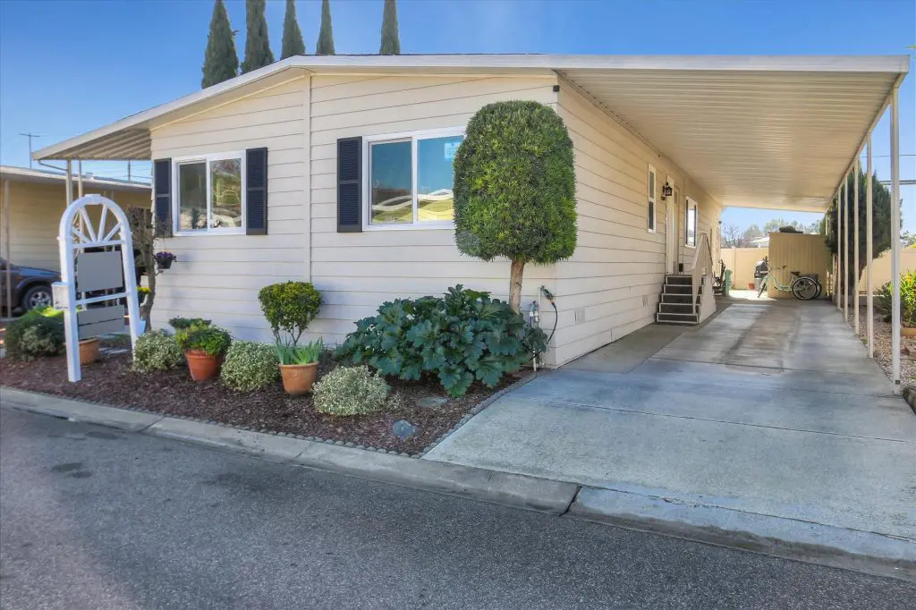You're going to LOVE where you LIVE in this stunning mobile home in a beautiful, senior 55+ community! One of the last gems in the Silicon Valley, this home is in turn-key condition. Dual pane windows and crown molding throughout are just two of the features that adorn this home. 1,440 square feet, split floor plan, separate dining room, master suite and second bedroom with a guest bathroom will delight you! Our black and white gourmet kitchen includes updated quartz counters, tile backsplash, cook-top island with seating, and beautiful laminate floors. Don't miss the built-in wet bar/coffee station - absolutely perfect! The master suite offers a large walk-in closet with custom shelving. See the elegant chandelier/ceiling fan and power for wall mounted TV. The master bathroom will charm you with marble enclosed, extra deep jetted tub with ceiling hoist for easy entrance and exit. Tall linen closet flanked by 2 pedestal sinks, heated towel bar, custom shade and chandelier makes this a luxury bathroom! French doors open to a large outside deck and custom landscaped yard for entertaining. Pavers, river rocks, tranquil gazebo PLUS a BBQ invites you and your guests to serenity. Auto drip system, large shed, and a huge carport that can fit up to 3 cars will make life easy, too! Don't miss this gorgeous home that is waiting for you!Call (866) 494-8993 today to schedule a private viewing!
