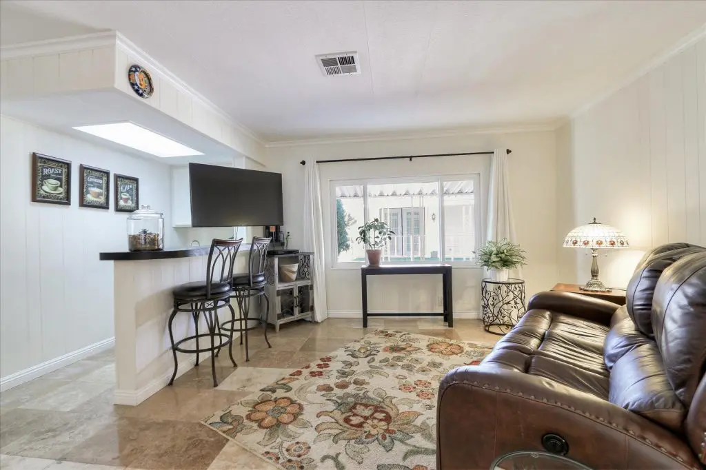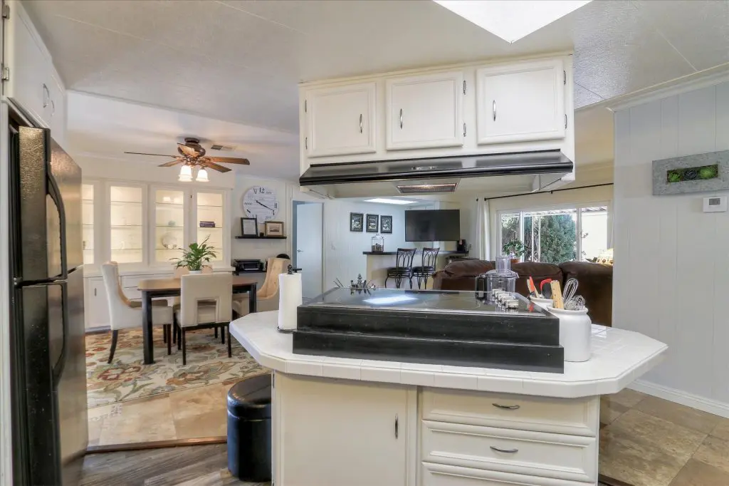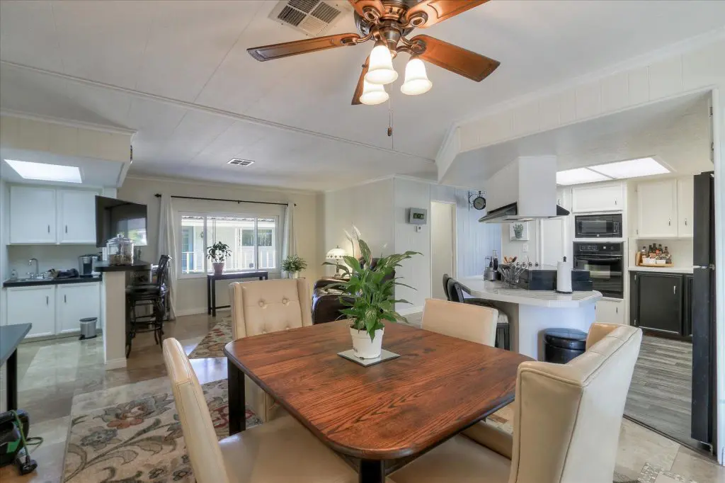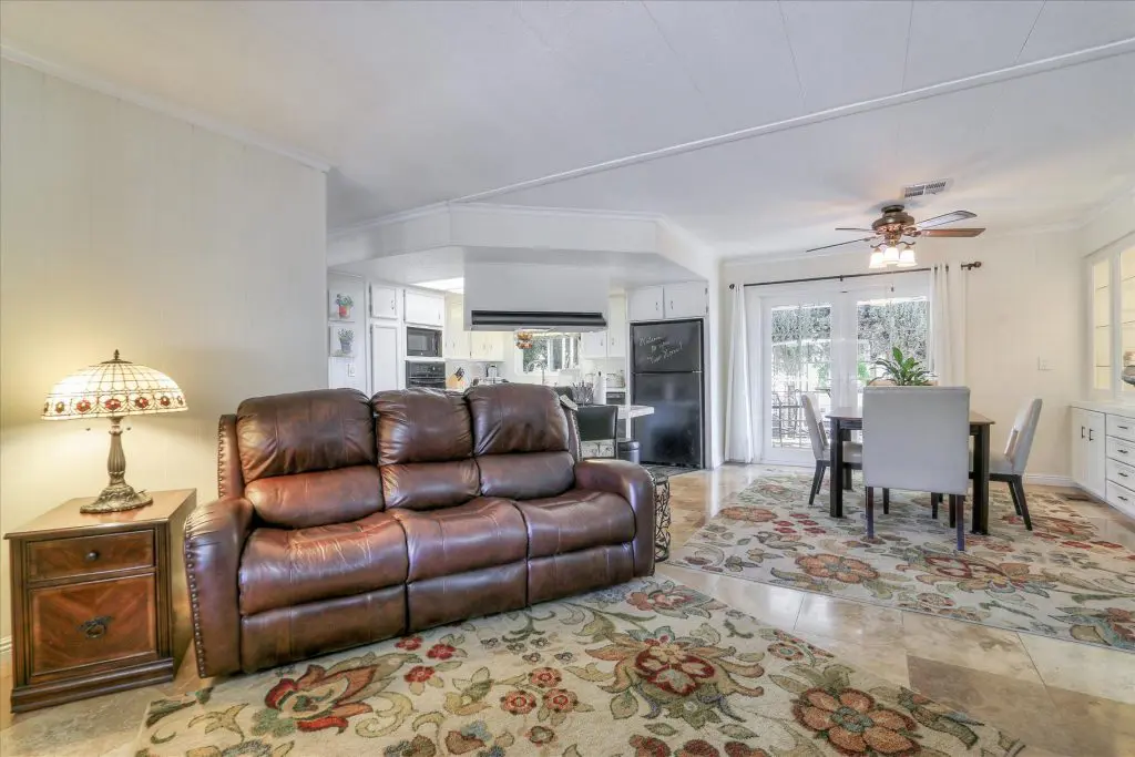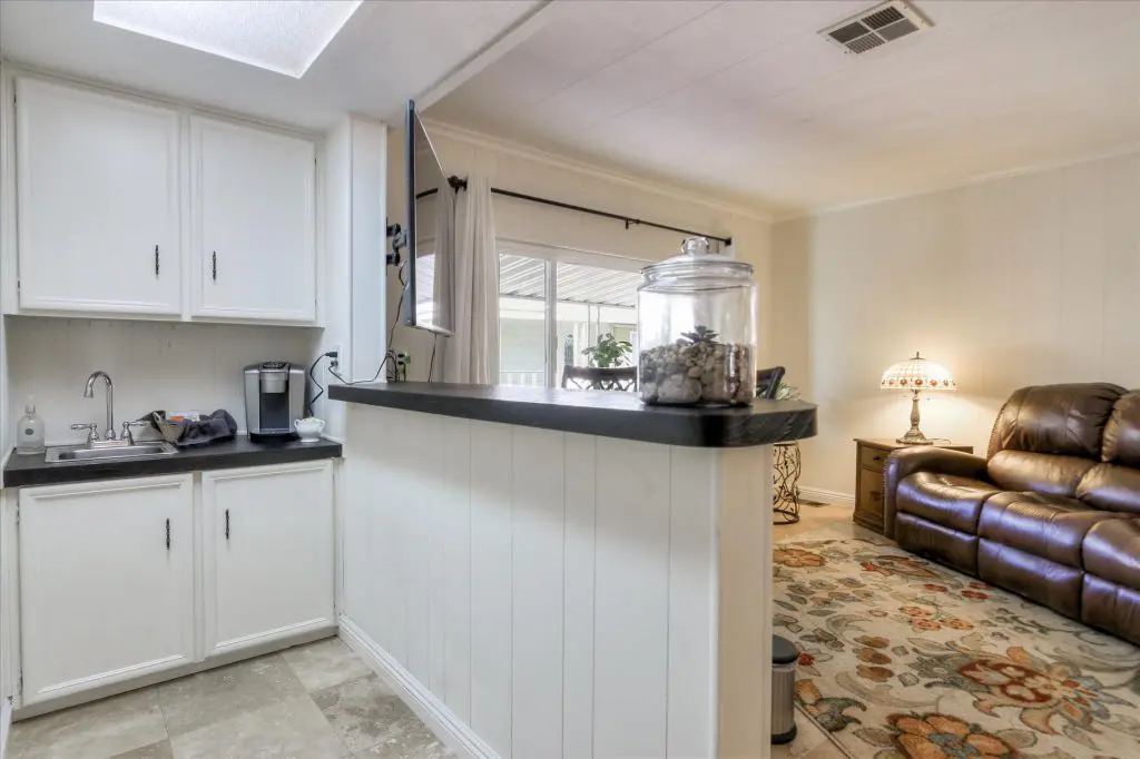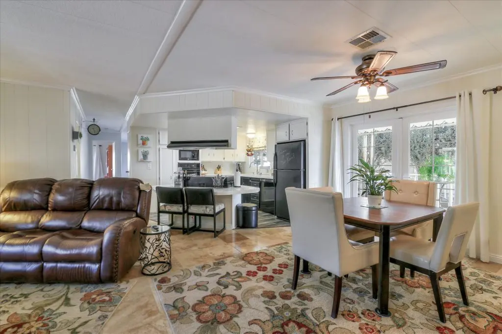 You're going to LOVE where you LIVE in this stunning mobile home in a beautiful, senior 55+ community! One of the last gems in the Silicon Valley, this home is in turn-key condition. Dual pane windows and crown molding throughout are just two of the features that adorn this home. 1,440 square feet, split floor plan, separate dining room, master suite and second bedroom with a guest bathroom will delight you! Our black and white gourmet kitchen includes updated quartz counters, tile backsplash, cook-top island with seating, and beautiful laminate floors. Don't miss the built-in wet bar/coffee station - absolutely perfect! The master suite offers a large walk-in closet with custom shelving. See the elegant chandelier/ceiling fan and power for wall mounted TV. The master bathroom will charm you with marble enclosed, extra deep jetted tub with ceiling hoist for easy entrance and exit. Tall linen closet flanked by 2 pedestal sinks, heated towel bar, custom shade and chandelier makes this a luxury bathroom! French doors open to a large outside deck and custom landscaped yard for entertaining. Pavers, river rocks, tranquil gazebo PLUS a BBQ invites you and your guests to serenity. Auto drip system, large shed, and a huge carport that can fit up to 3 cars will make life easy, too! Don't miss this gorgeous home that is waiting for you!Call (866) 494-8993 today to schedule a private viewing!