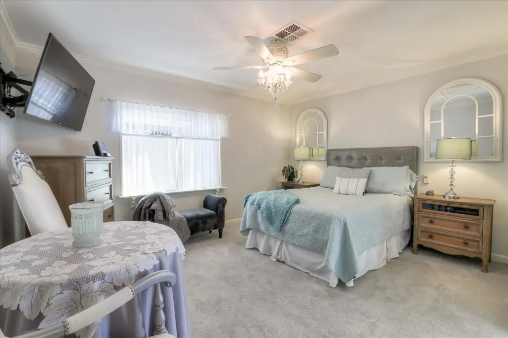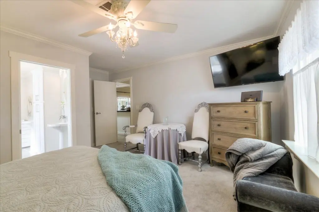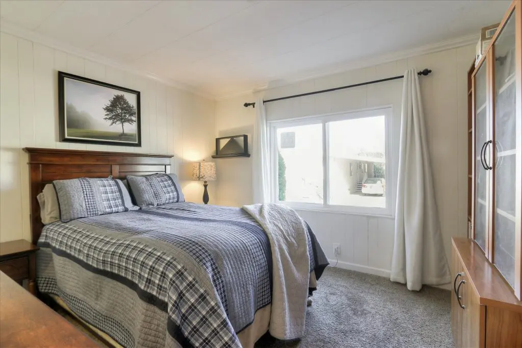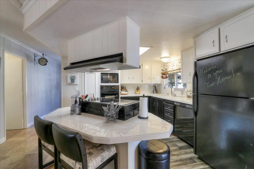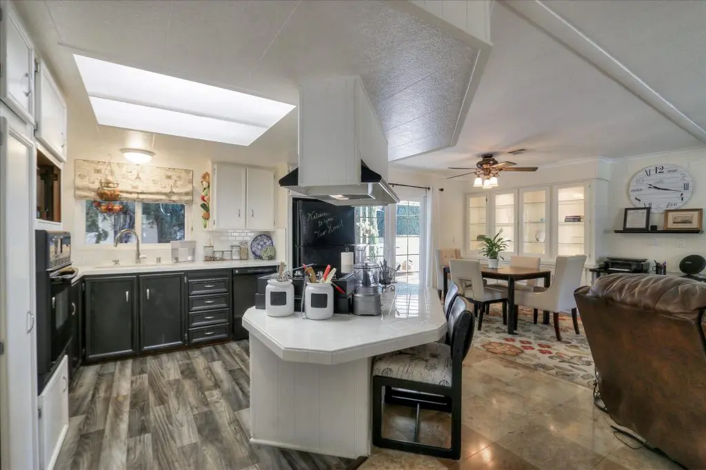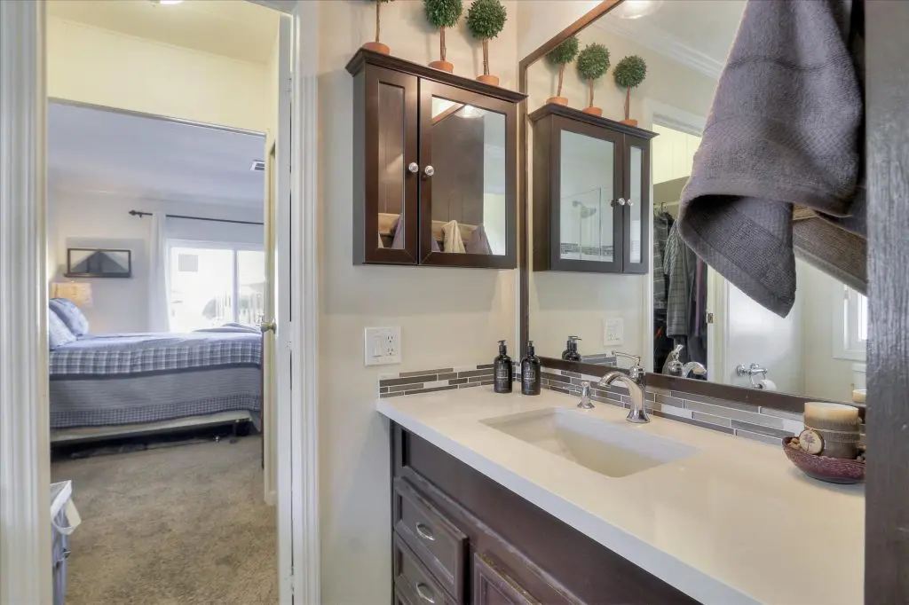 You're going to LOVE where you LIVE in this stunning mobile home in a beautiful, senior 55+ community! One of the last gems in the Silicon Valley, this home is in turn-key condition. Dual pane windows and crown molding throughout are just two of the features that adorn this home. 1,440 square feet, split floor plan, separate dining room, master suite and second bedroom with a guest bathroom will delight you! Our black and white gourmet kitchen includes updated quartz counters, tile backsplash, cook-top island with seating, and beautiful laminate floors. Don't miss the built-in wet bar/coffee station - absolutely perfect! The master suite offers a large walk-in closet with custom shelving. See the elegant chandelier/ceiling fan and power for wall mounted TV. The master bathroom will charm you with marble enclosed, extra deep jetted tub with ceiling hoist for easy entrance and exit. Tall linen closet flanked by 2 pedestal sinks, heated towel bar, custom shade and chandelier makes this a luxury bathroom! French doors open to a large outside deck and custom landscaped yard for entertaining. Pavers, river rocks, tranquil gazebo PLUS a BBQ invites you and your guests to serenity. Auto drip system, large shed, and a huge carport that can fit up to 3 cars will make life easy, too! Don't miss this gorgeous home that is waiting for you!Call (866) 494-8993 today to schedule a private viewing!