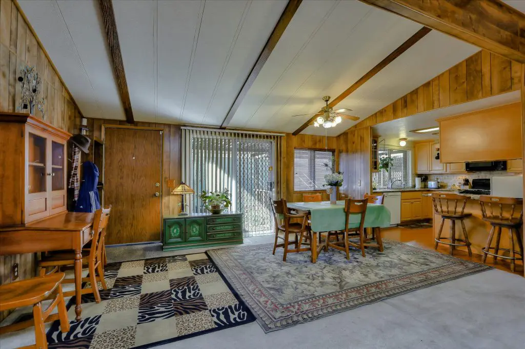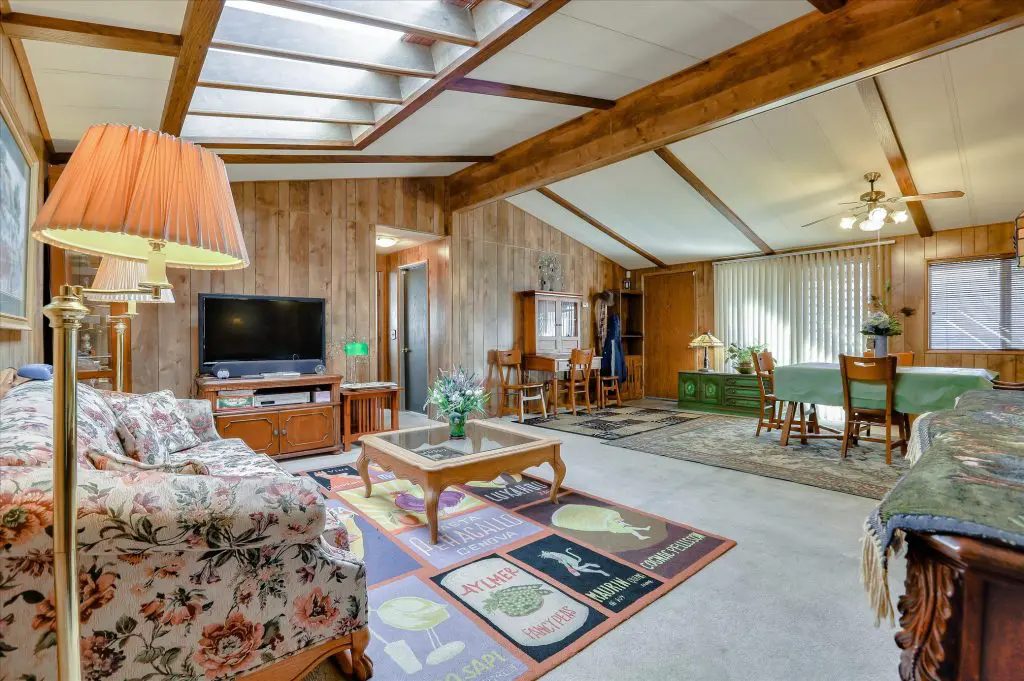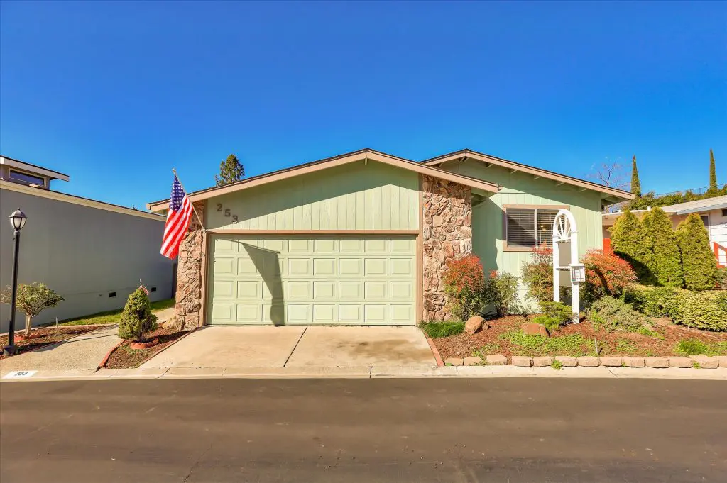 You're gonna love where you live in this spacious home in a senior 55+ community of Mountain Springs! Located in a quiet cul-de-sac within the park, we have foothill views and wonderful neighbors. Outside, we have fresh paint on the home, deck, and fence, a private side yard, low maintenance landscaping with auto sprinklers, and a 2 car garage with a built-in storage loft. Interior features an updated kitchen with laminate flooring, newer stove, breakfast bar, upgraded cabinets, and fabulous tile backsplash. Nice, clean updated bathrooms; master suite has a jetted tub. Large laundry room has built-in cabinets, counters, and room for a desk. Our "bonus" room/family room/office includes a cozy free-standing "Swedish style" wood burning fireplace and skylight to brighten things up! Some interior painted walls, paneling, dual pane windows, clean carpets, and copper plumbing will bring smiles of delight to all! Oh yes, don't miss the roll-up garage door and security screen doors! Call (866) 494-8993 today to schedule a viewing of this gorgeous home!