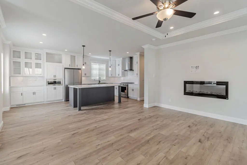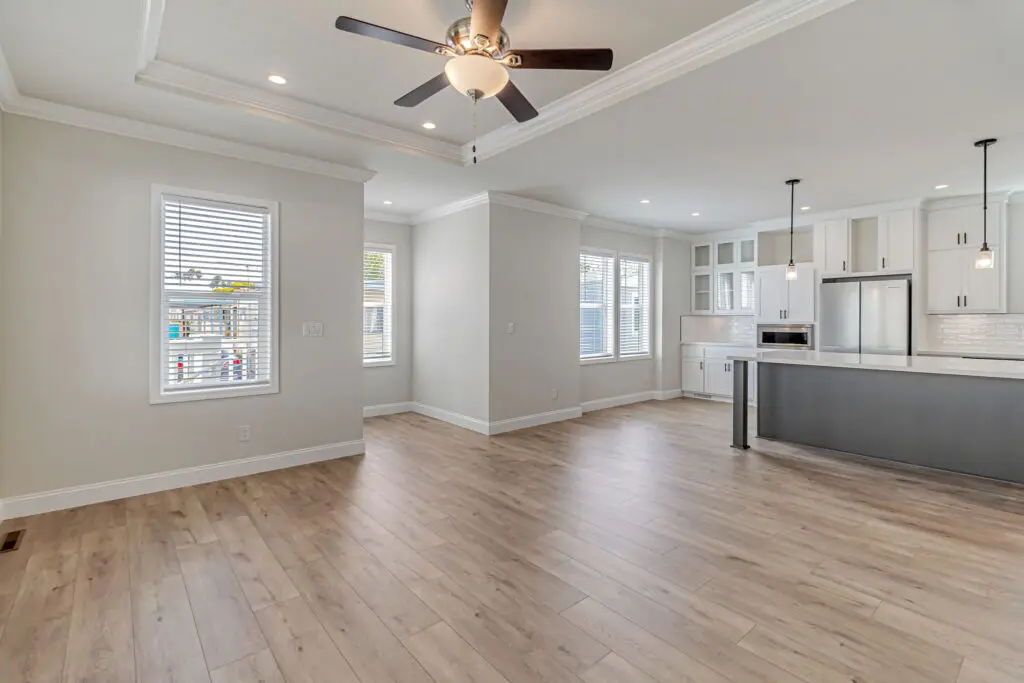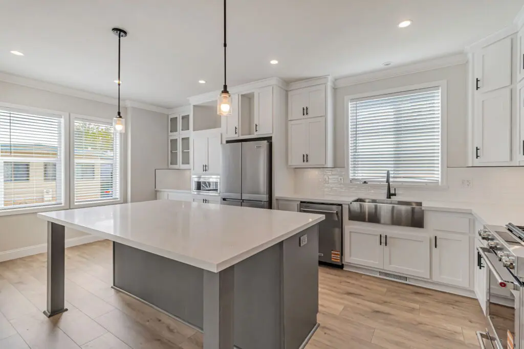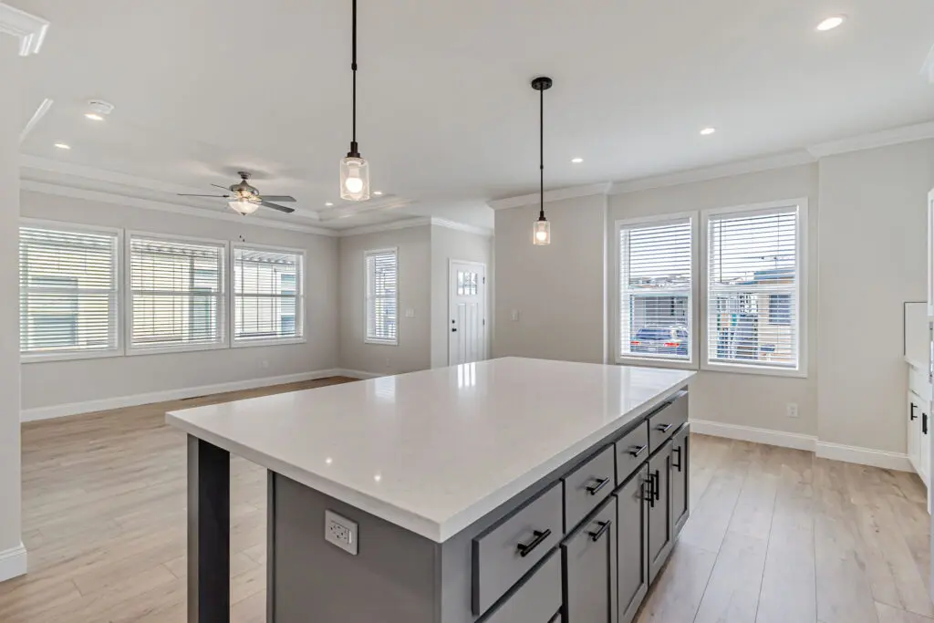 Located in the popular senior 55+ community of New Frontier, this brand-new 3-bedroom, 2-bathroom home offers a flexible floor plan designed for modern living. The spacious living room flows seamlessly into the open kitchen, which features white cabinetry, sleek countertops, and stainless steel appliances. Elegant tray ceilings with a ceiling fan, laminate flooring, and large windows create a bright and inviting atmosphere throughout. The primary ensuite includes a large walk-in closet, dual sinks, a relaxing platform tub, and a separate shower. Two additional bedrooms provide ample space for guests, an office, or hobbies. Conveniently located just off Central Expressway, this home is within 10 minutes of downtown Mountain View and Bayshore Sunnyvale Golf Course. The area offers a variety of nearby amenities including coffee shops, restaurants, and entertainment options. Call (866) 494-8993 today for more information!