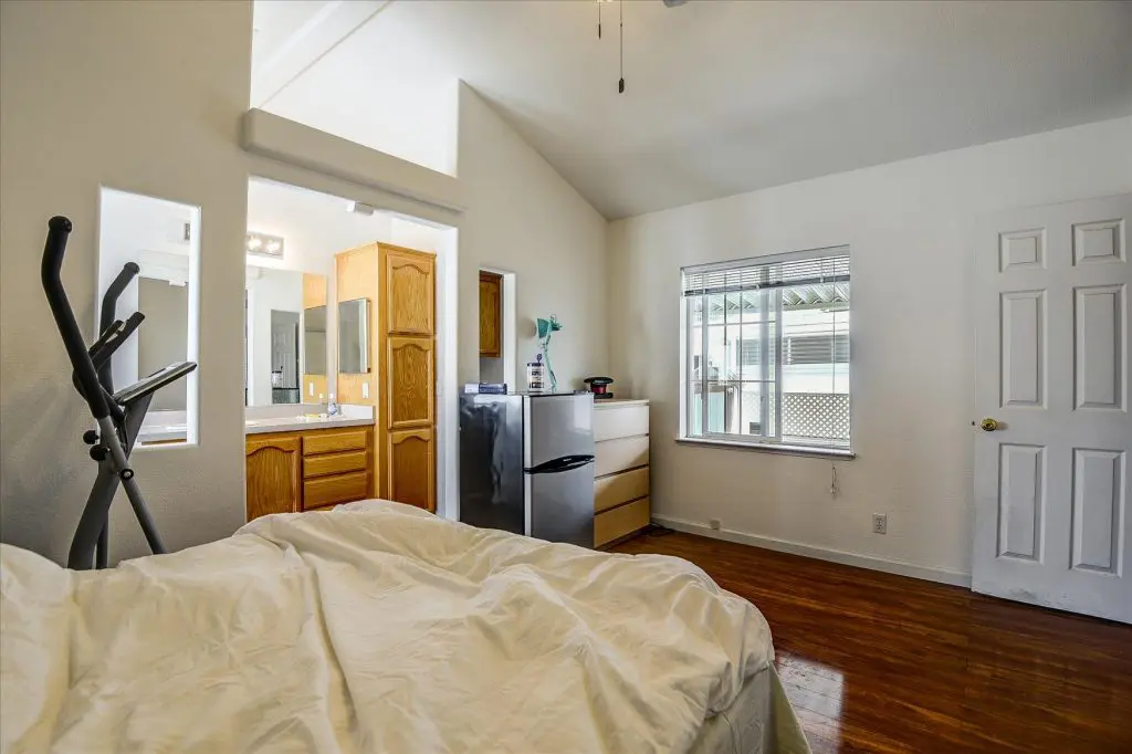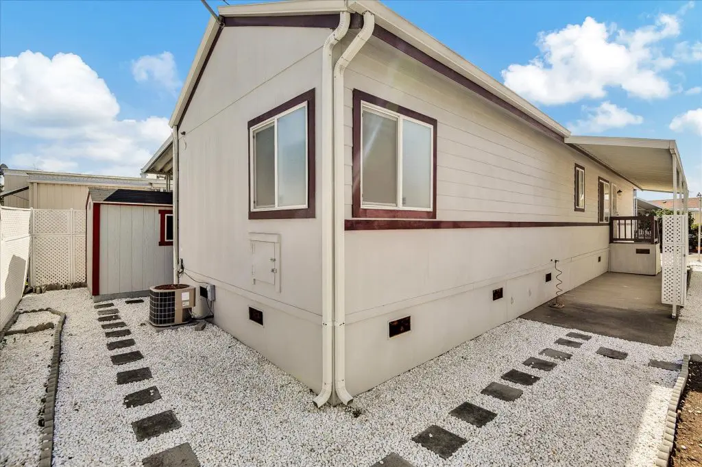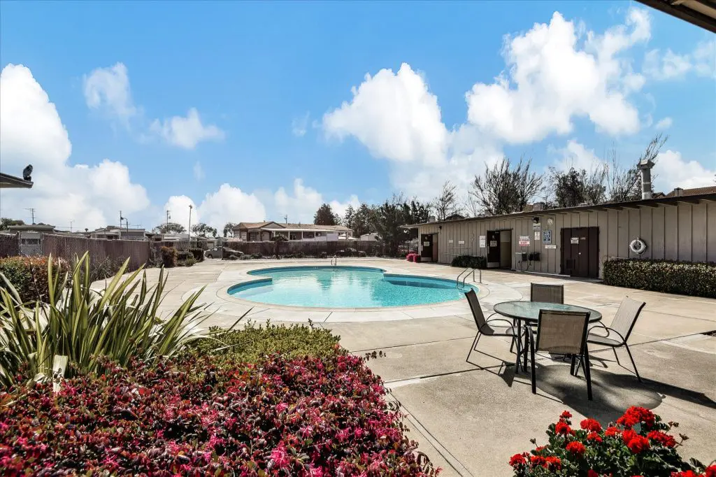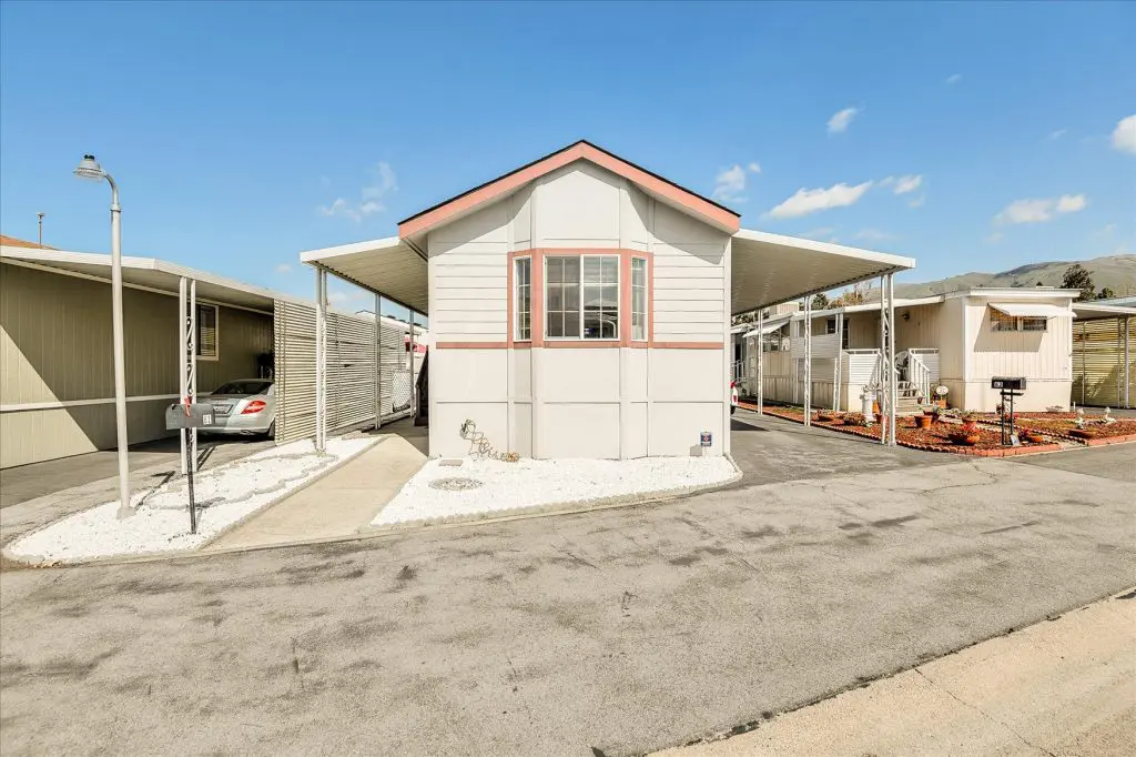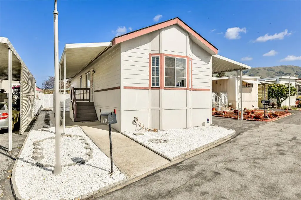 Prime space in Pioneer, a highly desirable 55+ mobile home community in Milpitas. This home features a split floor plan with 2 bedrooms, 1.5 baths, large windows, ceiling fans and matching light fixtures, nice-sized living room and kitchen, and wood laminate floors throughout. Kitchen offers ample cabinetry, counter space, and matching appliances. The master bedroom is located towards the end of the home, featuring high ceilings, ceiling fan, huge walk-in closet, and a private bathroom. Appliances, washer, and dryer are included. This park has a great community feeling with a view of the foothills and includes clubhouse and community pool. Close to shopping and freeways. Call (866) 494-8993 today to schedule a private viewing!
