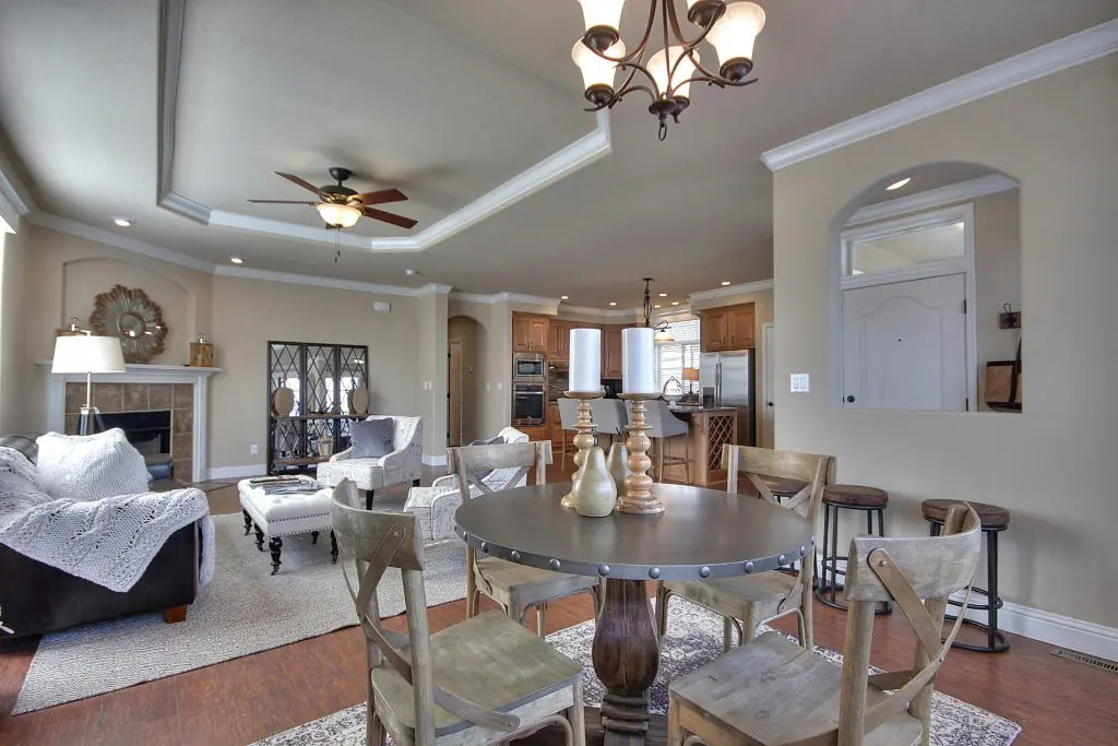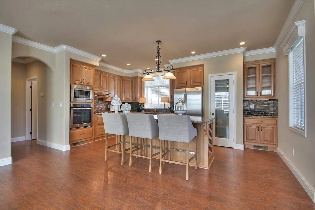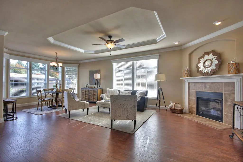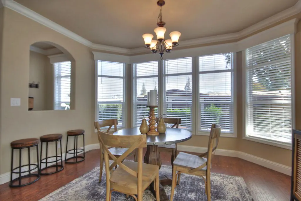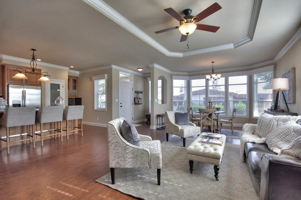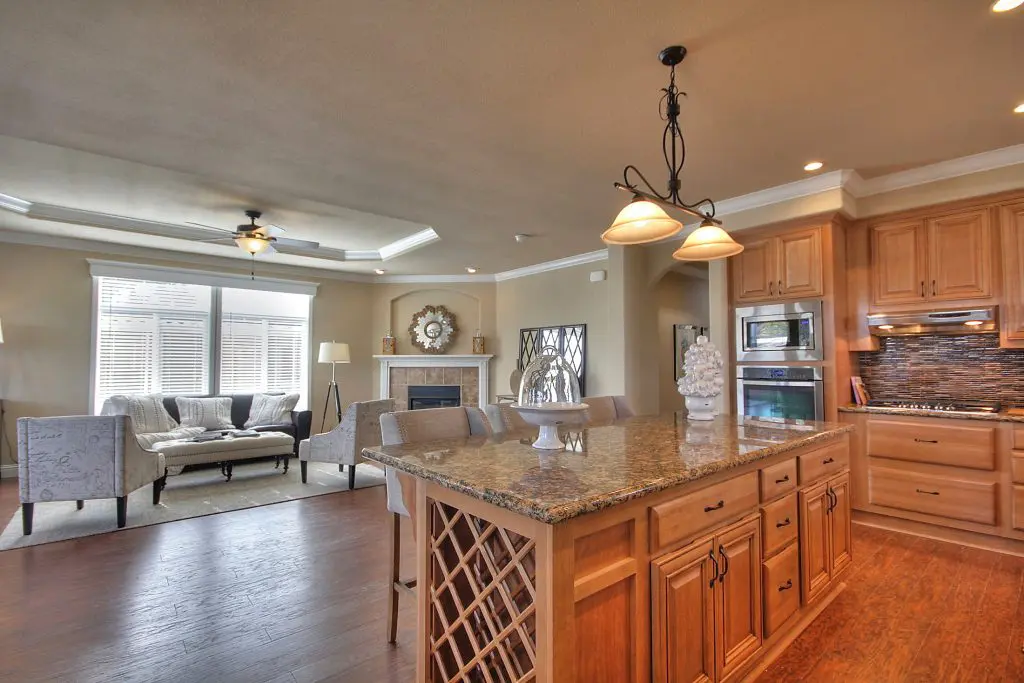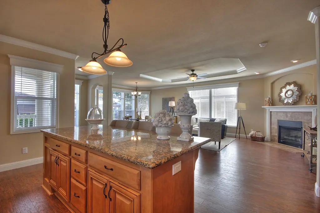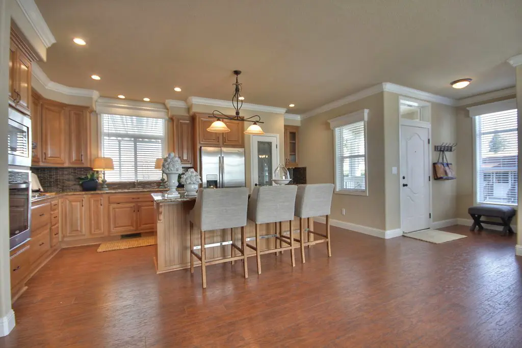 This beautiful manufactured home has an open floor plan and a premium location in the age-restricted 55+ community of Quail Hollow. The flowing layout showcases hickory wood laminate floors from the spacious living room, through the kitchen and dining room, and down the wide hallway toward the bedrooms. Granite countertops, a ceramic accent tile backsplash, hardwood cabinets, and stainless steel appliances show that no detail remained untouched in the design of the gourmet kitchen. A large island offers a perfect setup for preparing delicious meals or hosting a gathering with friends and family. Across the room, a corner gas fireplace is set below a recessed arch niche for a flat screen TV. The second and third bedrooms are well lit and good-sized, and the guest bath has a tile shower. At the back of the home, the massive master suite features dual walk-in closets, his and hers sinks, a walk-in tile shower with a bench and glass pane enclosure. Don’t miss your opportunity at this immaculate new manufactured home nestled between downtown Willow Glen and Campbell. Call (866) 494-8993 today for more information.