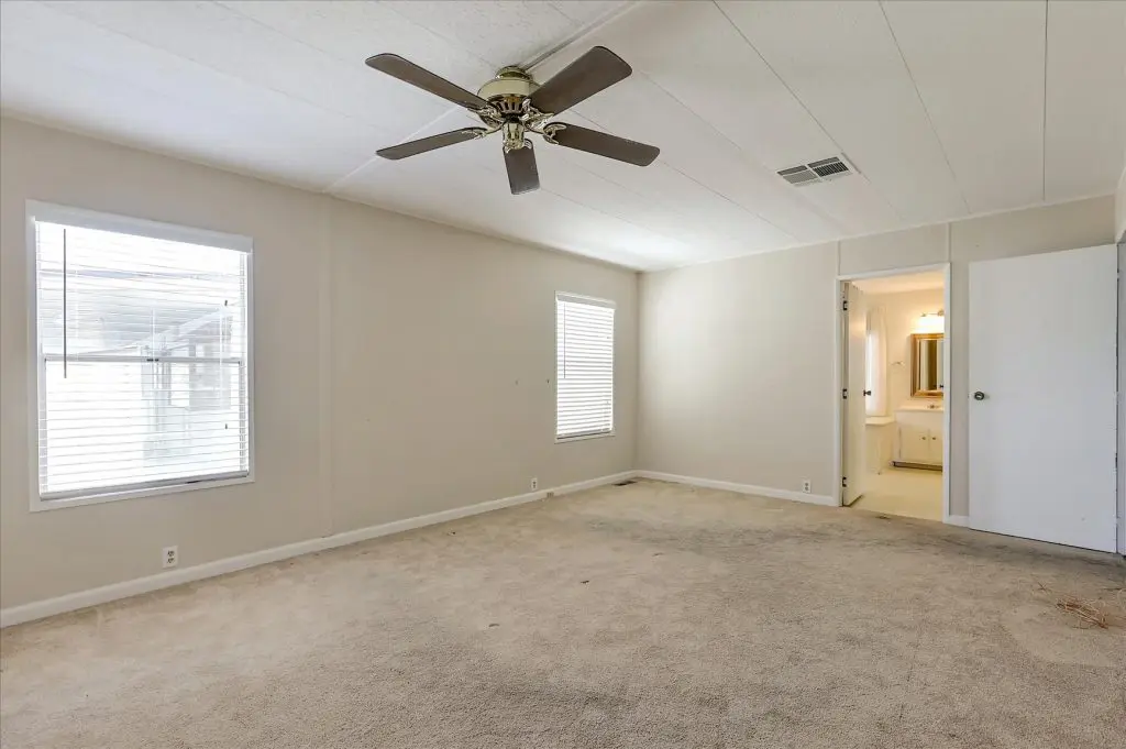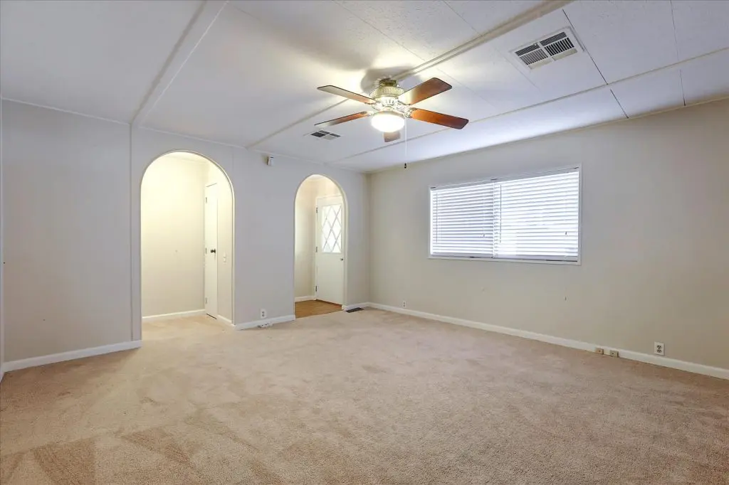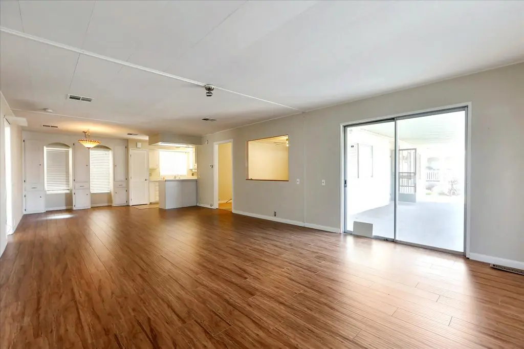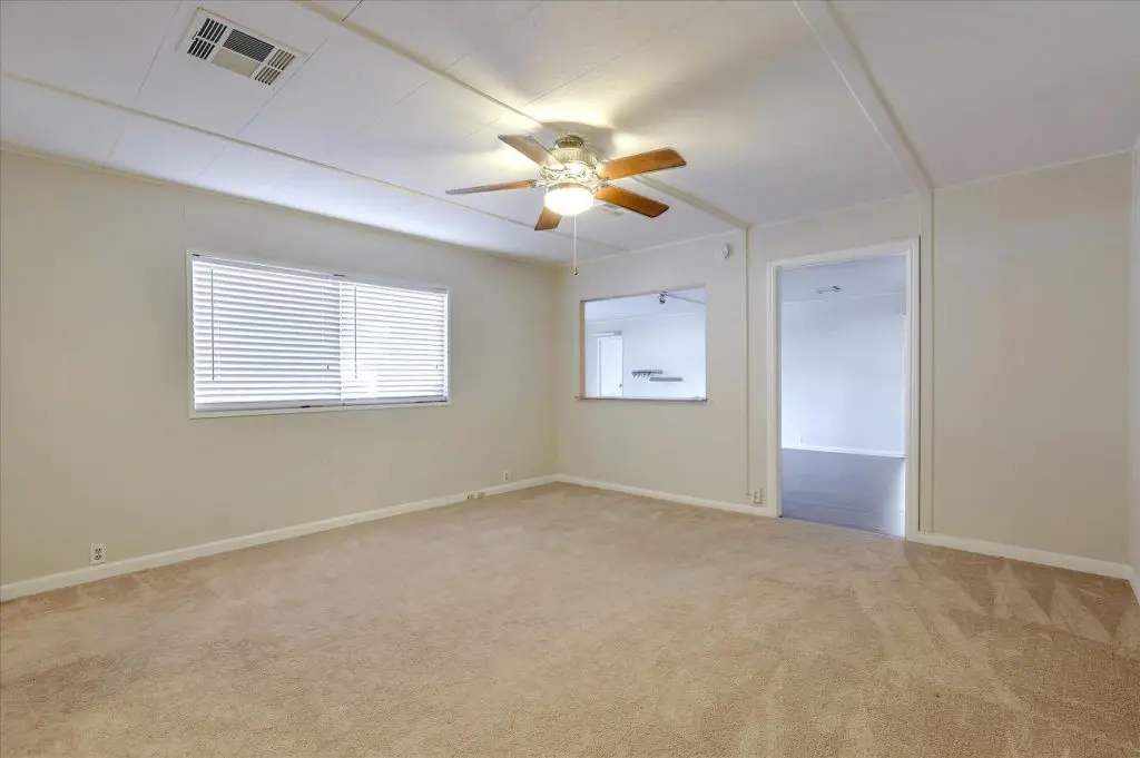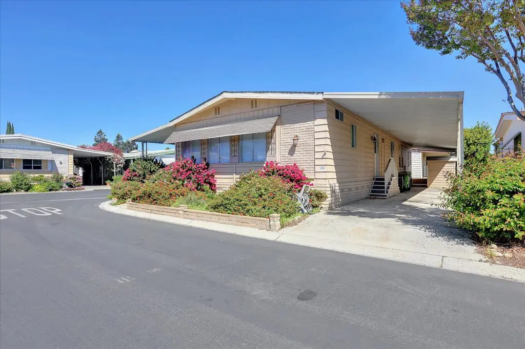 This sweet home on a coveted corner lot is located in the senior (55+) community of Quail Hollow. This home has a large triple wide and split floor plan that seamlessly carries you through the spacious home that features both a living room and family room. The galley kitchen is an efficient use of space with ample cabinets, well-maintained appliances, and plenty of counter space. The two bedrooms are a great size and includes a large closet and private bathroom (only guest bath is shared). The guest bed located is in the front and the master bed is in the rear. Additional features include an A/C, long driveway (3 car parking), a large sink in the laundry room, and a large porch with enough room for patio furniture. Quail Hollow is one of the most beautiful senior parks in San Jose, off of Bascom Ave and just one and a half mile away from Downtown Campbell. This great home — at a great price — is a definite must see! Call (866) 494-8993 today to schedule a viewing of this home!
