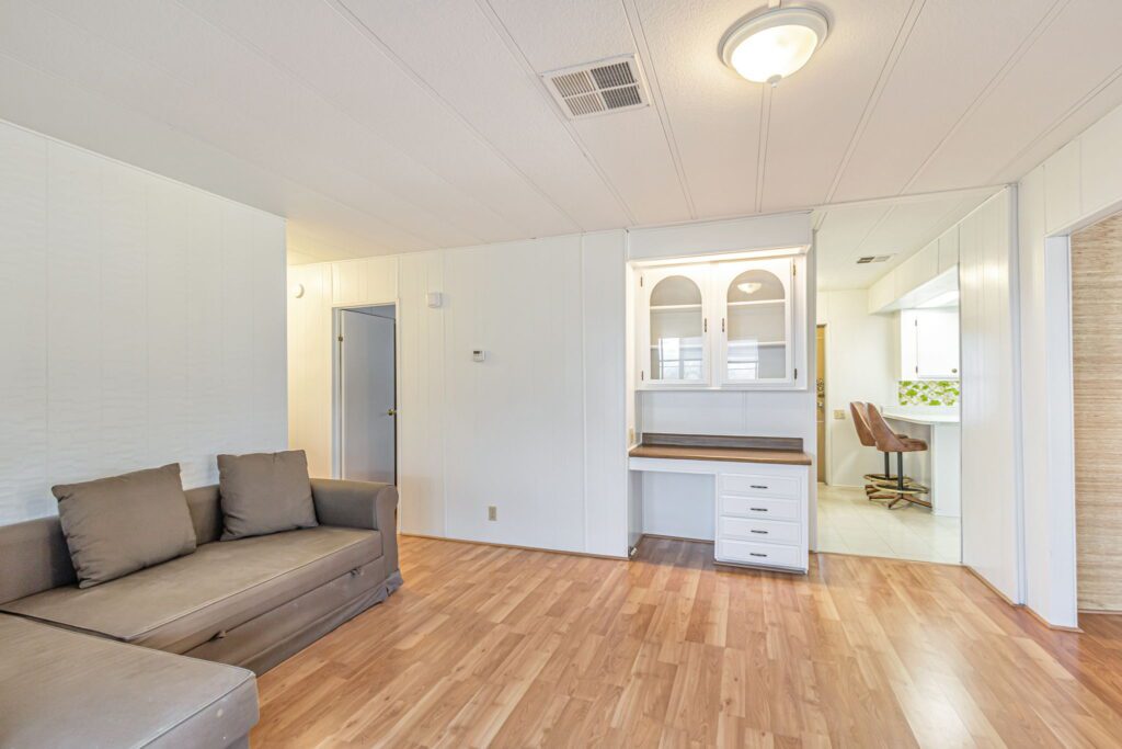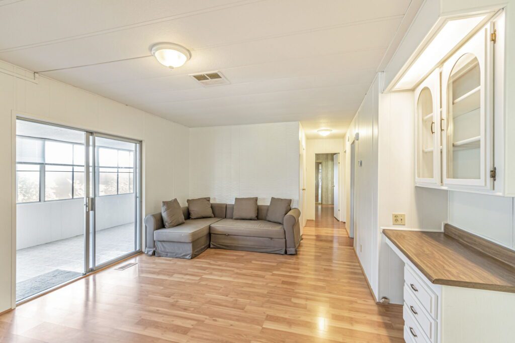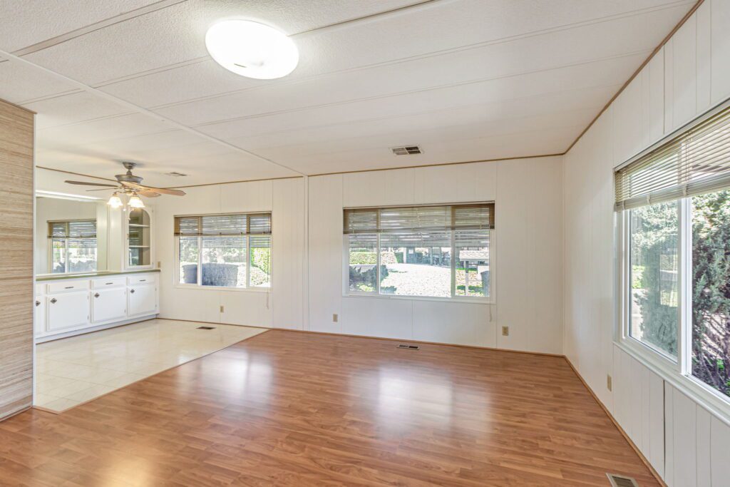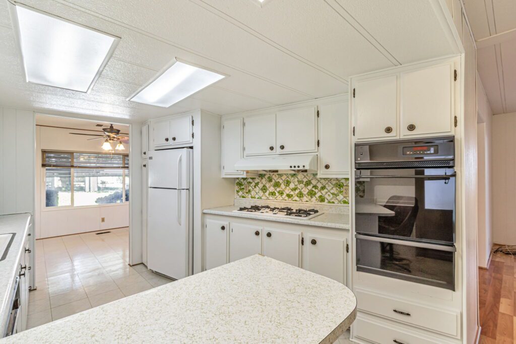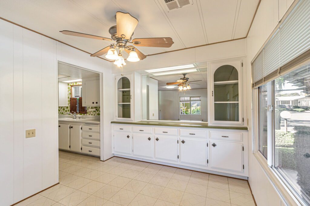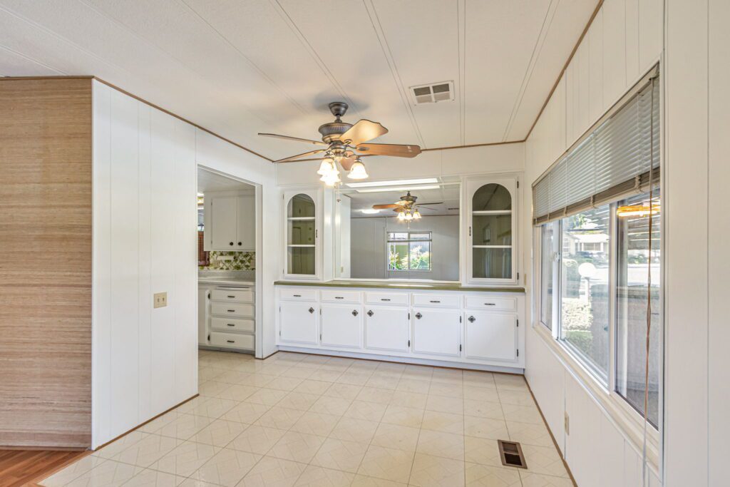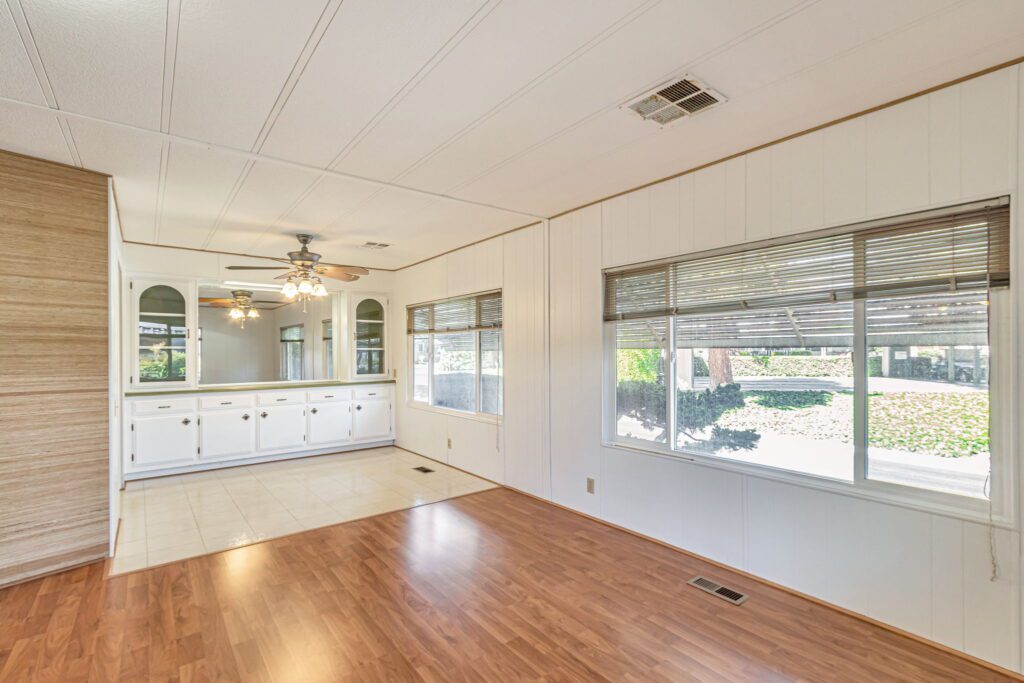 Nestled in the prestigious 5-star 55+ community of Quail Hollow, this charming mobile home offers a serene and peaceful living environment. The home features 3 bedrooms, 2 baths, a living room, a dining area with a built-in hutch, a family room, and an enclosed screen porch. Inside, you'll discover a bright and spacious floor plan, complete with fresh paint, laminate flooring, and plenty of natural light throughout. The kitchen boasts generous counter space, a stunning backsplash, a dishwasher, a refrigerator, and a gas stovetop. All bedrooms are generously sized and feature built-in closet space with sliding doors. Located within walking distance to the Pruneyard, Los Gatos Creek Trails, VTA light rail, Whole Foods, and many other conveniences, this home offers both comfort and convenience. Call (866) 494-8993 today for more information!
