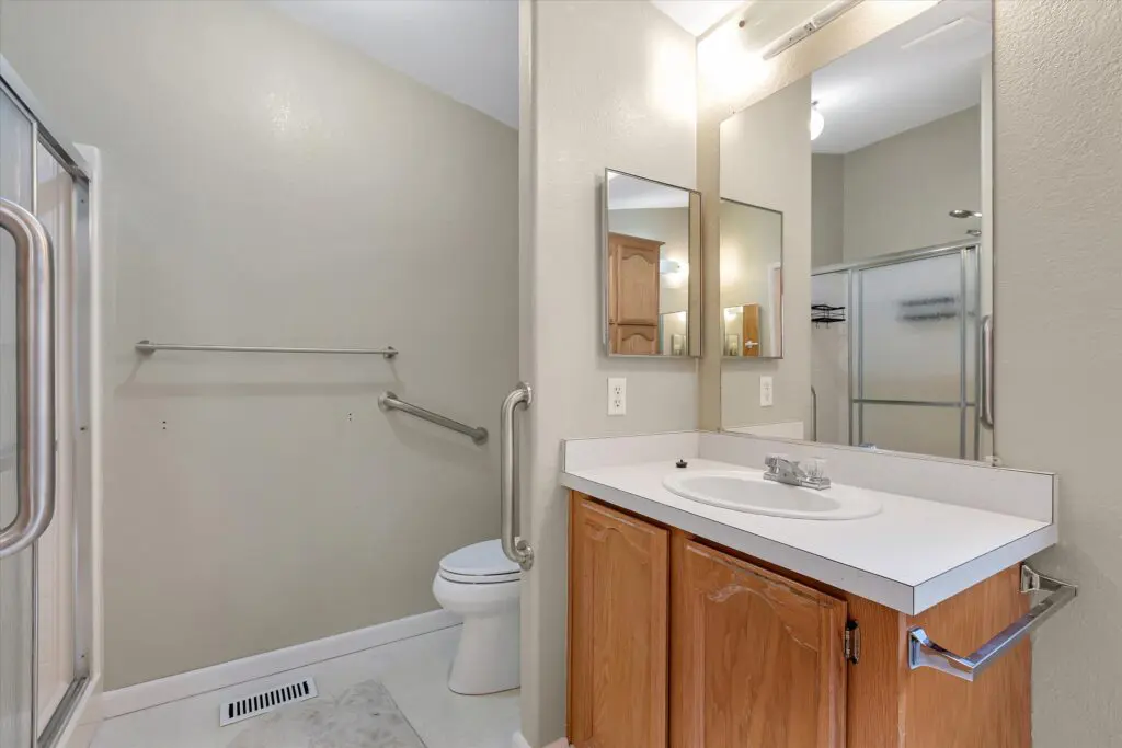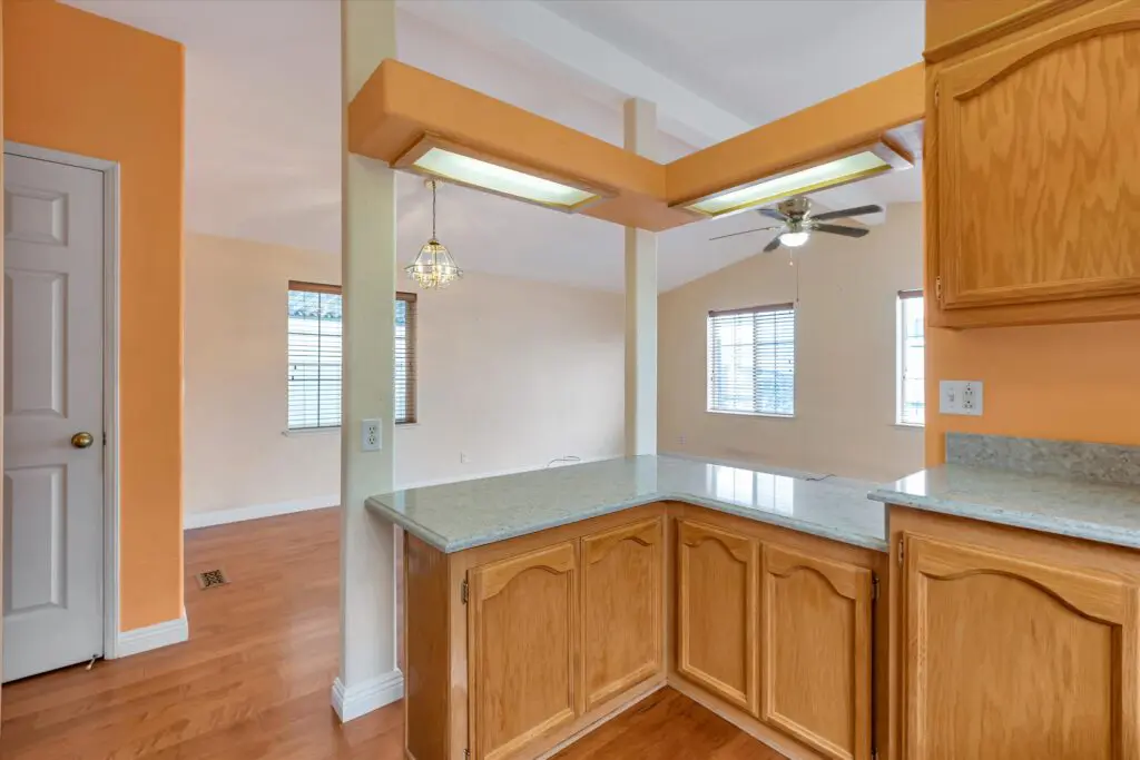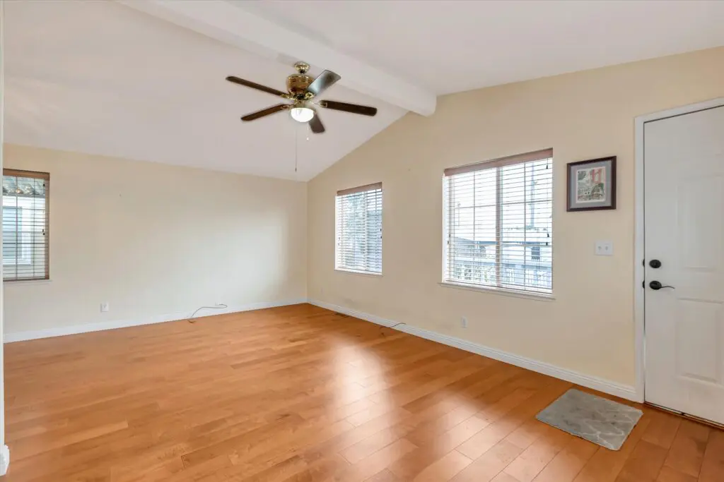 Located in Mountain View's popular all-age community of Sahara Village, this meticulously maintained 2 bedroom, 2 bathroom home is turn-key and move-in ready! This home has a spacious living room; engineered wood floors in the living, dining, kitchen, guest bedroom, and hallway; high vaulted ceilings; generously sized bedrooms with great closet space; newer water heater and recently tented (2022); recently replaced front steps; utility room has a new washer and dryer; and a large fenced-in backyard with brick planters and a wide driveway. The kitchen boasts ample cabinetry, quartz counters, and dishwasher, and a newer gas range. The primary suite has a huge private bathroom with separate vanities, linen closet, and a step-in shower. The second bedroom is extremely versatile and could easily serve as a home office or hobby room. Sahara Village is a well-maintained community with easy access to Hwy 85/237, public transportation, grocery stores, and shops of various kinds. Call (866) 494-8993 today for more information!
