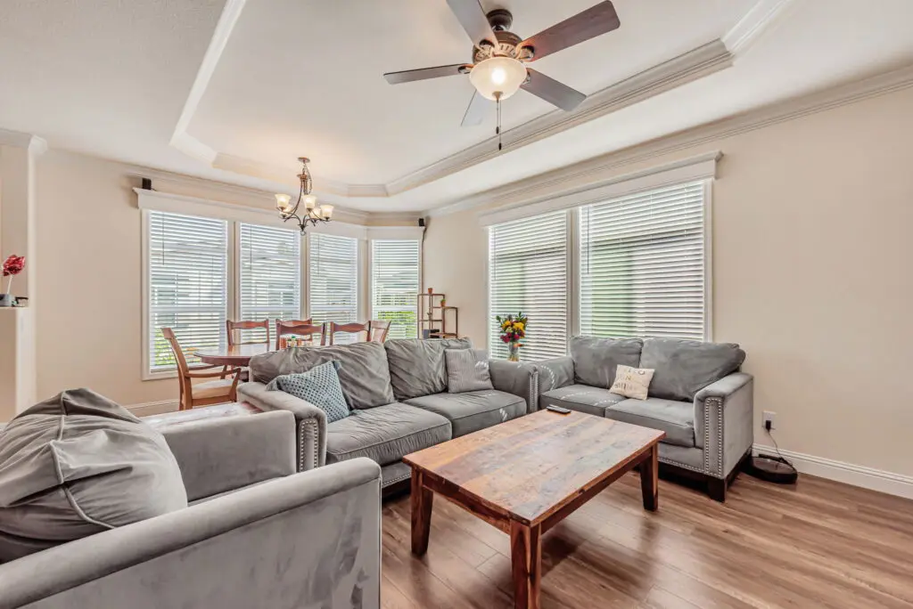 Nestled in the highly sought-after Evergreen School District, this charming 3-bedroom, 3-bathroom home offers both style and comfort. Inside, a bright and spacious living room welcomes you with recessed lighting, a gas fireplace, built-in shelving, and rich, warm wood laminate floors. The open kitchen features granite countertops, a central island with a wine rack, stainless steel appliances, and a generous pantry, perfect for both cooking and entertaining. The home boasts two spacious master suites, each with large closets, ceiling fans, quartz counters, and walk-in showers. The third bedroom is a versatile space that can serve as a home office or den/lounge. All appliances are included, even the washer and dryer. Located in the Silver Creek community, this home provides easy access to Highway 101, Target, shopping centers, restaurants, and schools, offering both convenience and a welcoming neighborhood atmosphere. Call (866) 494-8993 today for more information!