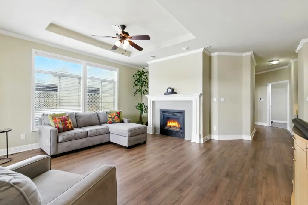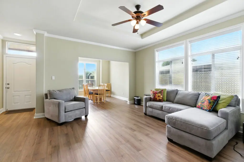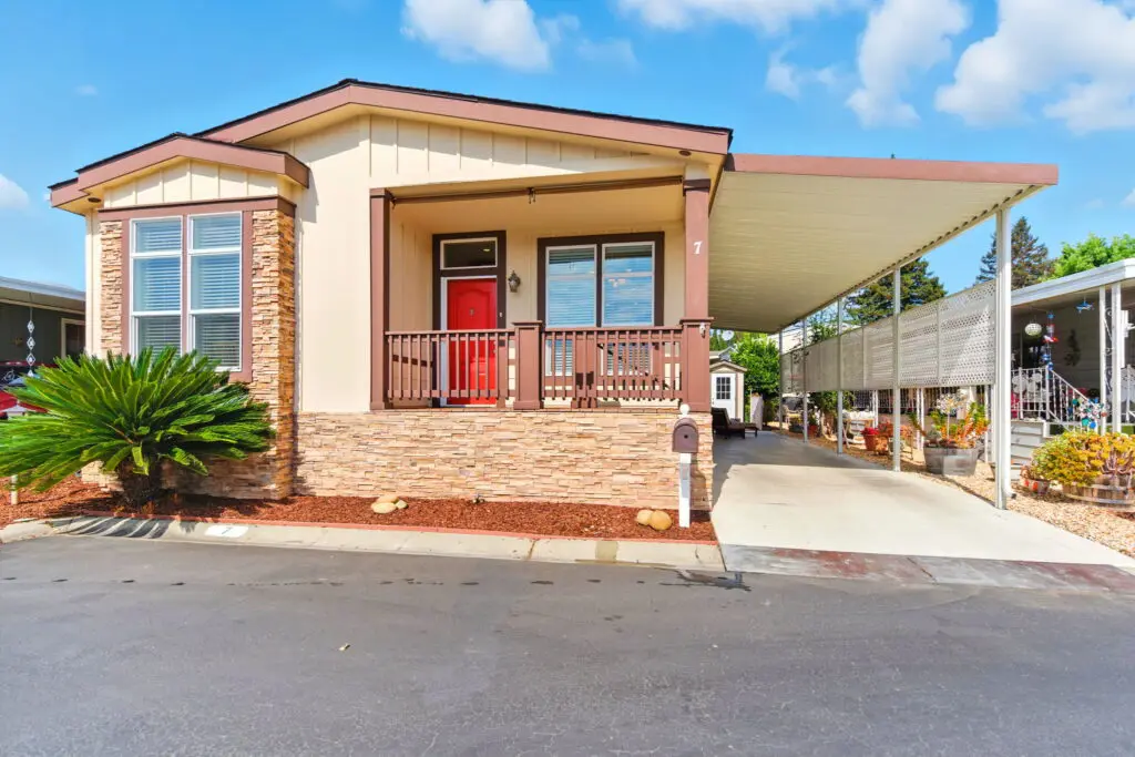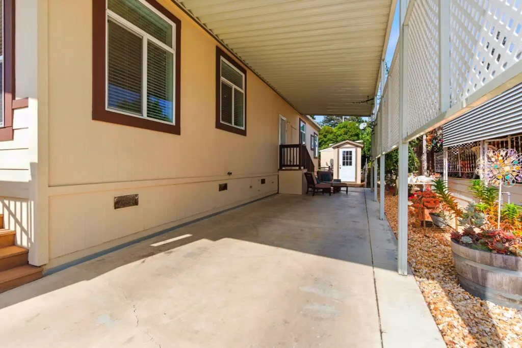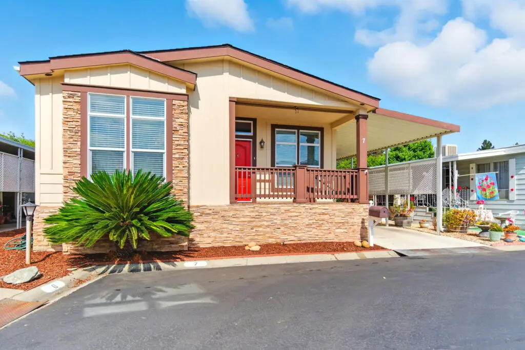Discover your dream home in Sunset Estates, Mountain View’s premier 55+ community! This spacious 3-bedroom, 2-bath home with a den is designed for comfort and style. A brand-new roof (completed this month) and new air conditioner provide peace of mind, while a cozy gas fireplace with mantel and tile surround adds warmth to the open living area with tray ceilings. The chef’s kitchen features granite counters, built-in oven with range top, dishwasher, refrigerator, abundant cabinets, a sunny breakfast room, and a formal dining room with a built-in hutch—perfect for entertaining. The custom Skyline Pebble Beach floor plan also includes a large backyard, storage shed, and space for a garden. The master suite is a retreat with a walk-in closet and spa-like bath featuring both a soaking tub and separate shower. Two additional spacious bedrooms and a full utility room with washer, dryer, cabinets, and outdoor access add convenience. Gentle bay breezes, stacked stone exterior accents, and a welcoming front porch complete this move-in ready home. Lot rent is $1,500/month; park approval required. Call (866) 494-8993 today for more information!