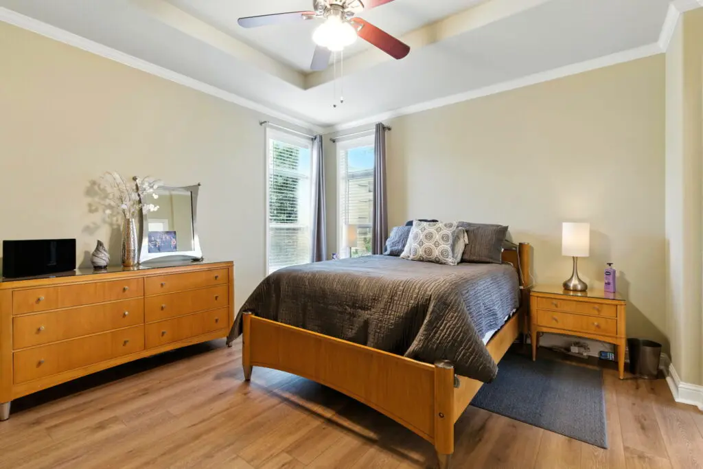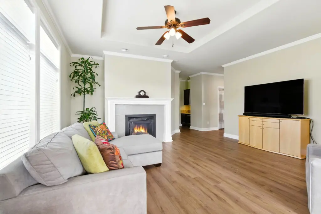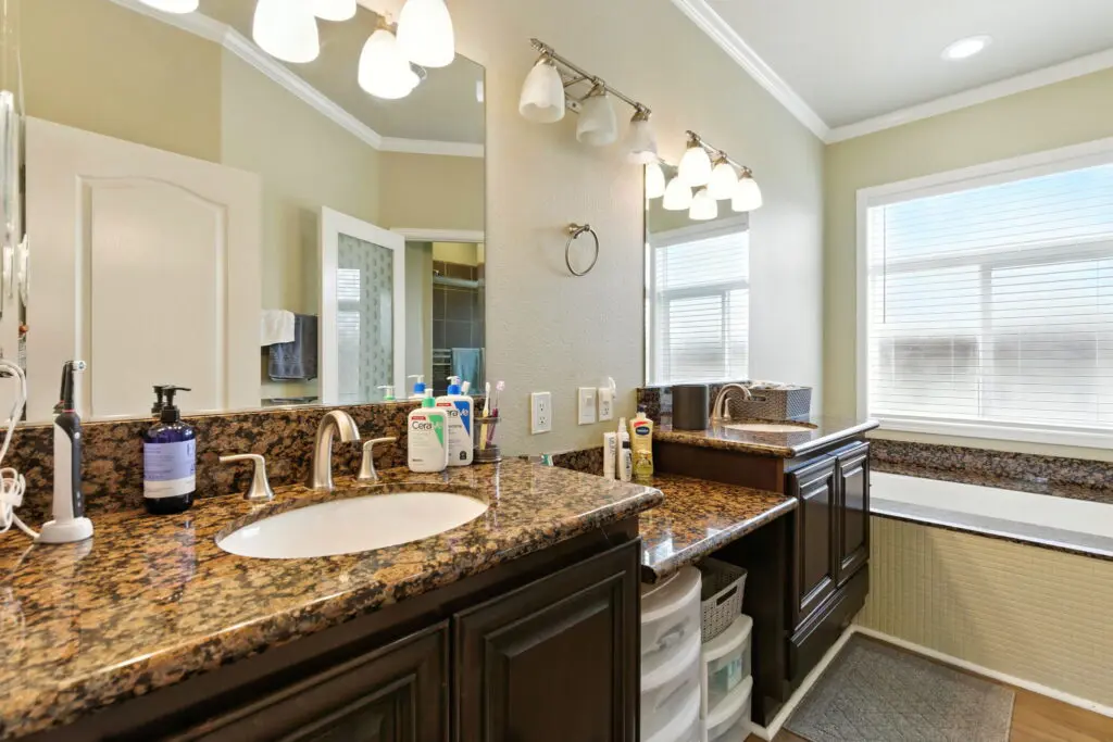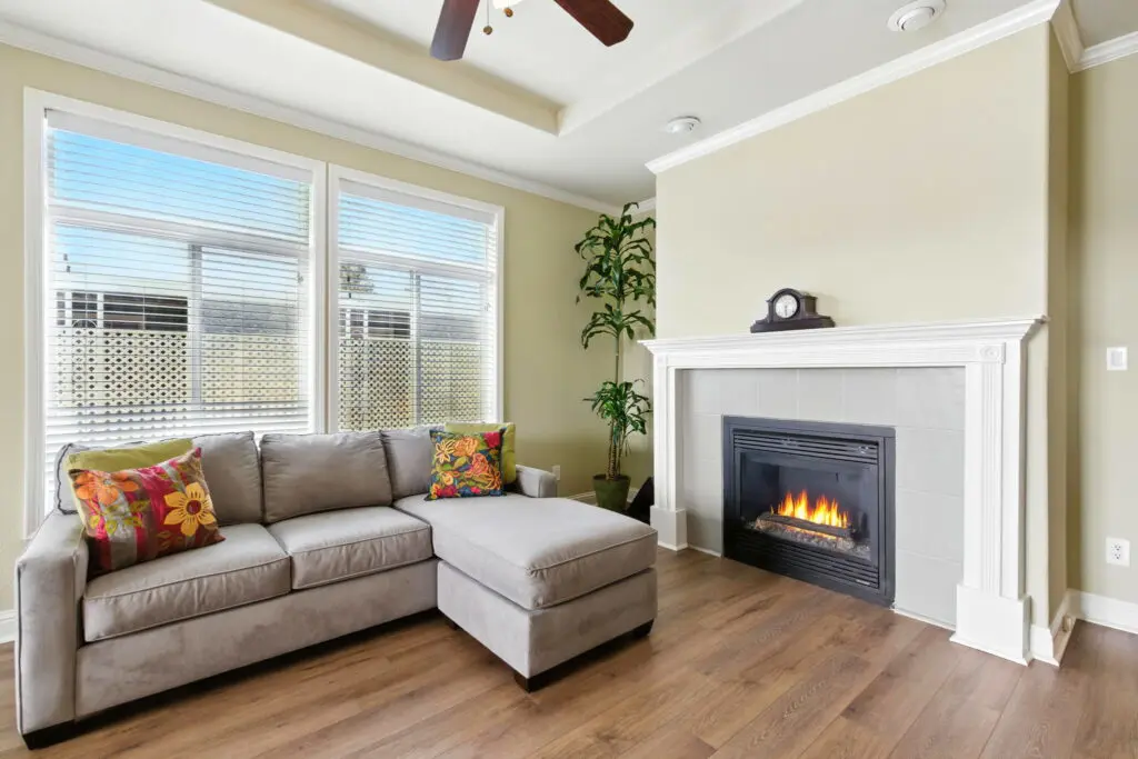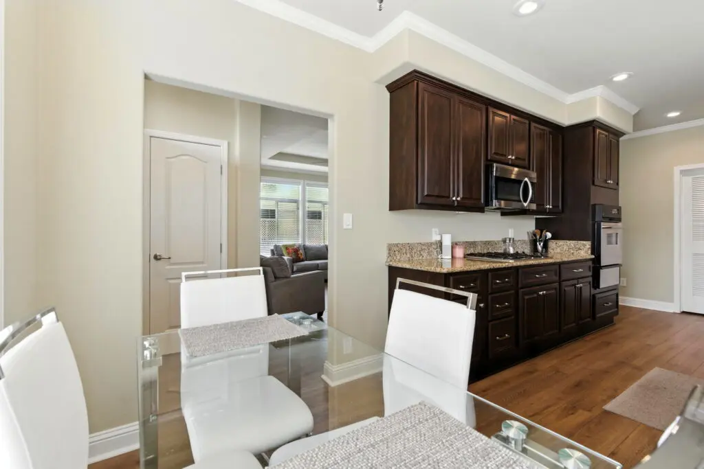 Discover your dream home in Sunset Estates, Mountain View’s premier 55+ community! This spacious 3-bedroom, 2-bath home with a den is designed for comfort and style. A brand-new roof (completed this month) and new air conditioner provide peace of mind, while a cozy gas fireplace with mantel and tile surround adds warmth to the open living area with tray ceilings. The chef’s kitchen features granite counters, built-in oven with range top, dishwasher, refrigerator, abundant cabinets, a sunny breakfast room, and a formal dining room with a built-in hutch—perfect for entertaining. The custom Skyline Pebble Beach floor plan also includes a large backyard, storage shed, and space for a garden. The master suite is a retreat with a walk-in closet and spa-like bath featuring both a soaking tub and separate shower. Two additional spacious bedrooms and a full utility room with washer, dryer, cabinets, and outdoor access add convenience. Gentle bay breezes, stacked stone exterior accents, and a welcoming front porch complete this move-in ready home. Lot rent is $1,500/month; park approval required. Call (866) 494-8993 today for more information!