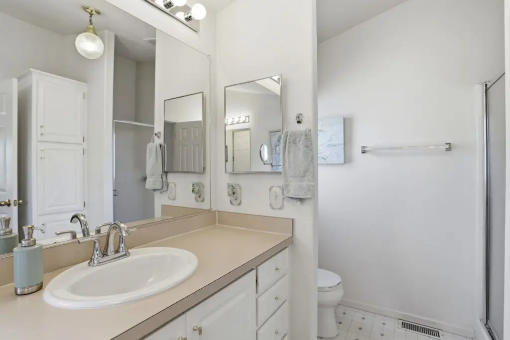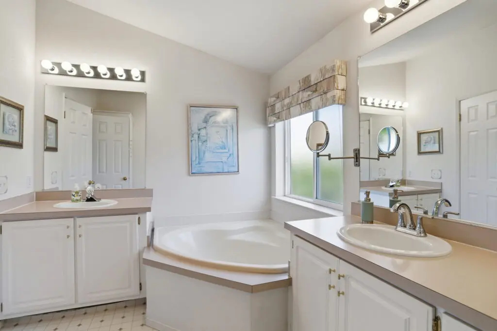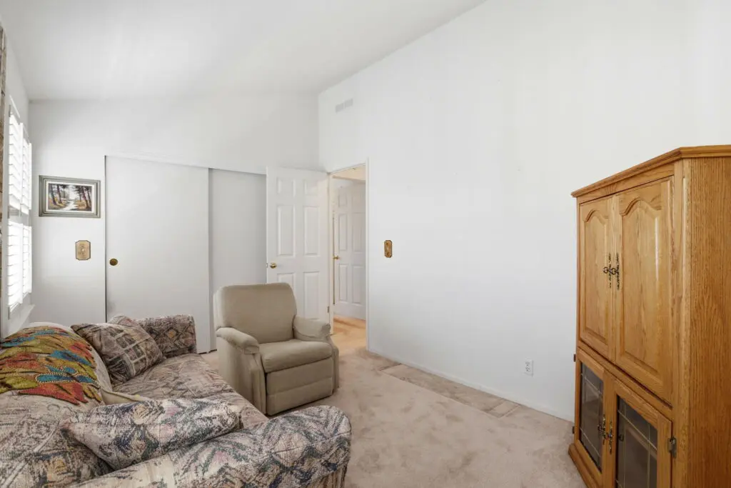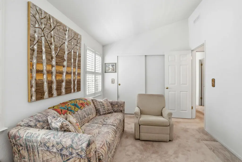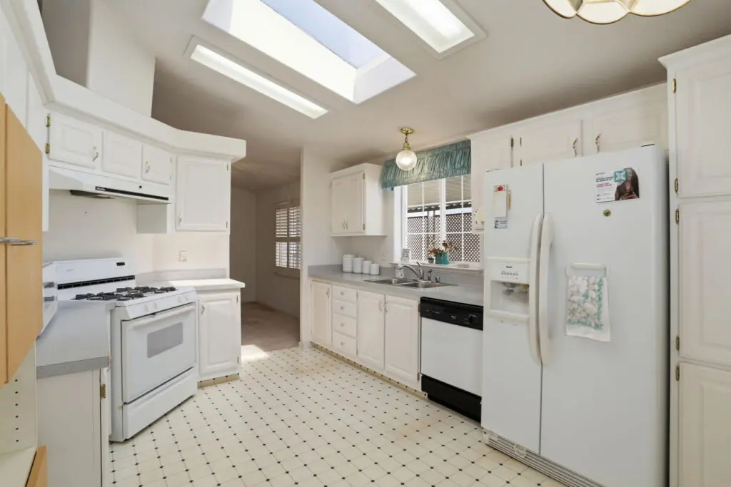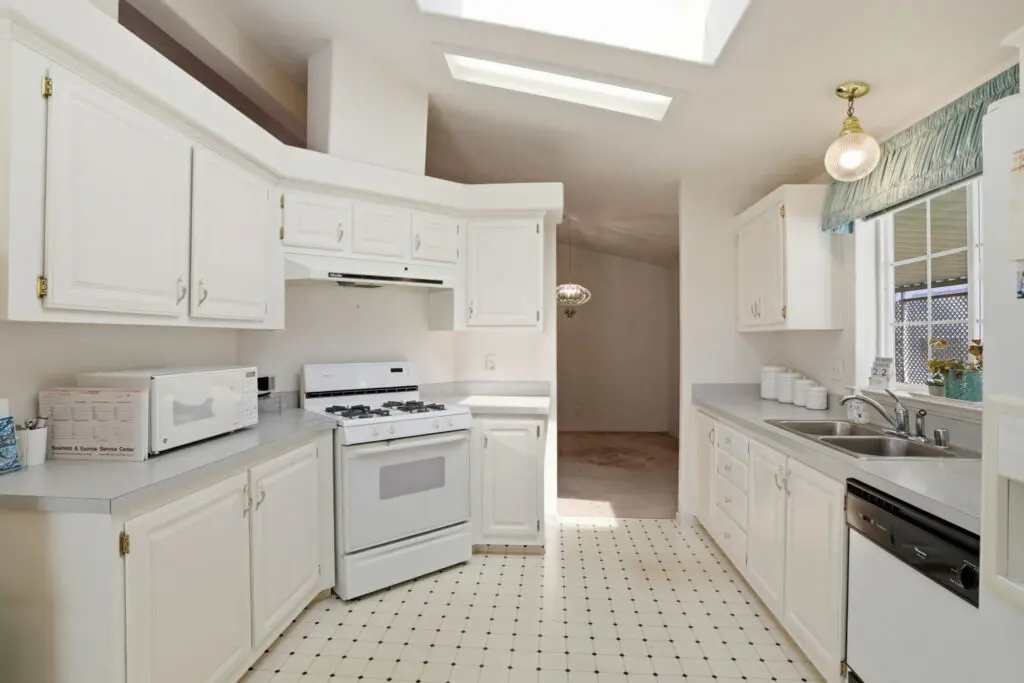 Welcome to this inviting home located in a desirable 55+ senior community, offering comfort, convenience, and thoughtful features throughout. Plush carpeting flows from room to room, creating a warm and cozy atmosphere. The living room is the heart of the home, featuring a charming fireplace—perfect for relaxing evenings or gathering with friends and family. The bright kitchen is complemented by a cheerful breakfast nook, complete with a skylight that fills the space with natural light. Matching white appliances add a clean, cohesive look. The guest bedroom is comfortably sized and includes ample closet space for storage. The spacious primary suite offers a peaceful retreat with a ceiling fan, a generous walk-in closet, and a private bathroom featuring dual sinks and a luxurious corner garden tub. Additional highlights include a large laundry room with plenty of storage space to keep everything organized, as well as a wheelchair lift near the side entry for added accessibility and ease of use. This home combines comfort, practicality, and charm—perfect for relaxed living in a welcoming community. Call (866) 494-8993 today for more information!
