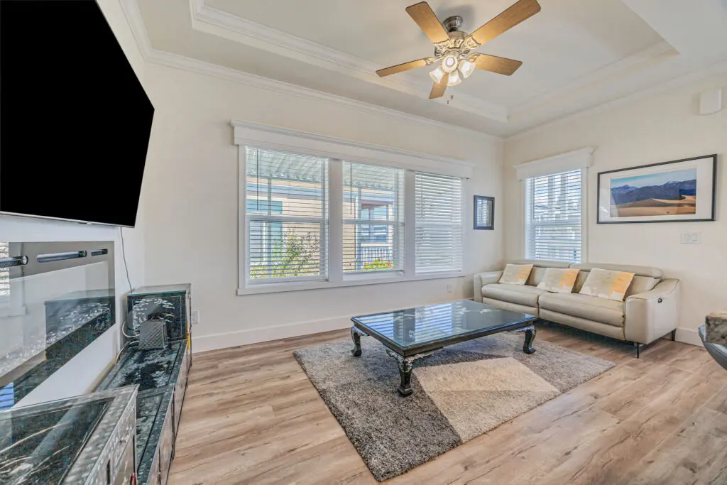 Welcome to this darling 2+ bedroom, 2 bath manufactured home in the highly sought-after 55+ community of Sunset Estates. Built in 2021, this home offers a modern open floor plan with wood laminate flooring, dual pane windows, high ceilings, and a cozy gas fireplace. The light-filled kitchen is a chef’s dream, featuring stainless steel appliances, a spacious center island with granite countertops, and crisp white mission-style cabinetry. The primary suite boasts a walk-in closet, dual sinks, and a luxurious walk-in shower for added comfort. Ideally situated just off Central Expressway, you’re only 10 minutes from downtown Mountain View, Bayshore Sunnyvale Golf Course, and a variety of shops, coffee houses, and restaurants. This home combines modern comfort with vibrant community living—don’t miss your chance to make it yours! Call (866) 494-8993 today for more information on this home!
