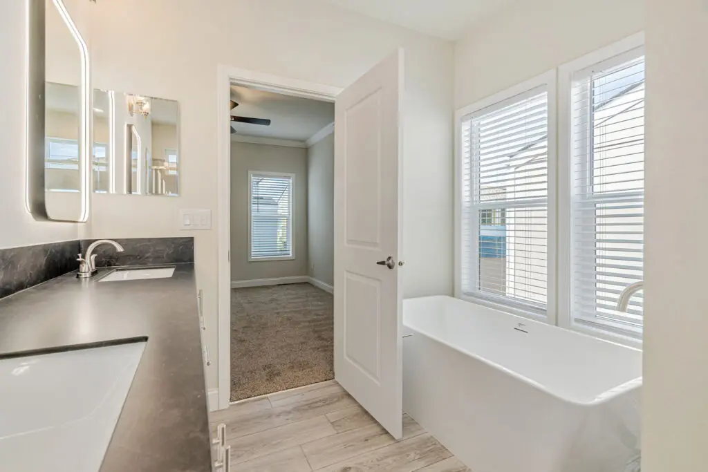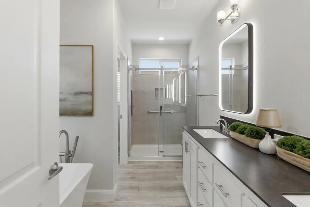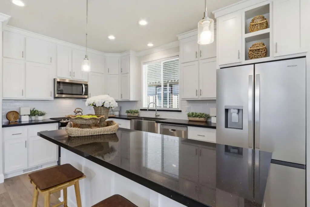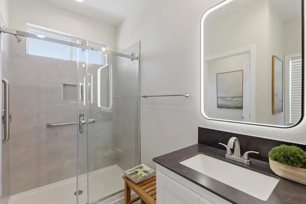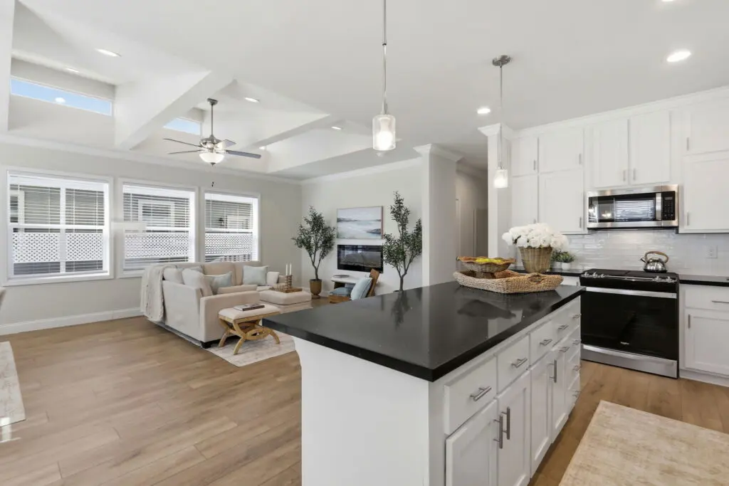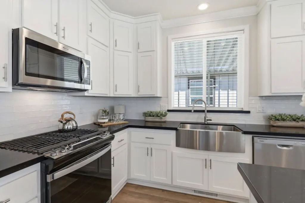 This stunning and brand new 3 bedroom, 2 bathroom home is situated in the welcoming 55+ Sunset Estates community. As you enter, you'll find a bright, spacious living area adorned with tasteful finishes and an abundance of natural light. The open concept kitchen boasts stainless steel appliances, sleek black quartz countertops, and contemporary white cabinetry. The master bedroom features cozy carpeting, a ceiling fan, a walk-in closet, and an en-suite bathroom equipped with dual sinks, a freestanding tub, and a separate shower. The two additional bedrooms are generously sized and offer ample closet space. Located right off Central Expressway 10 minutes from downtown Mountain View and Bayshore Sunnyvale Golf Course, the vibrant location provides an array of entertainment including coffee shops and restaurants. Call (866) 494-8993 today for more information!