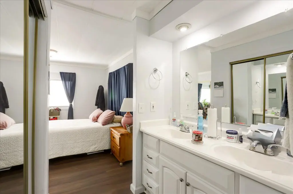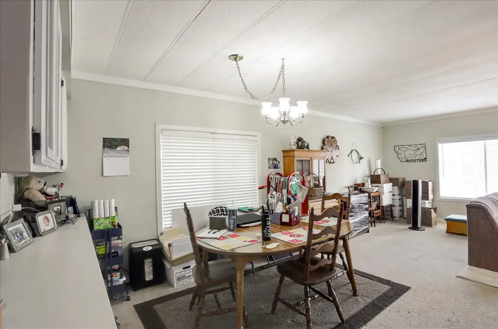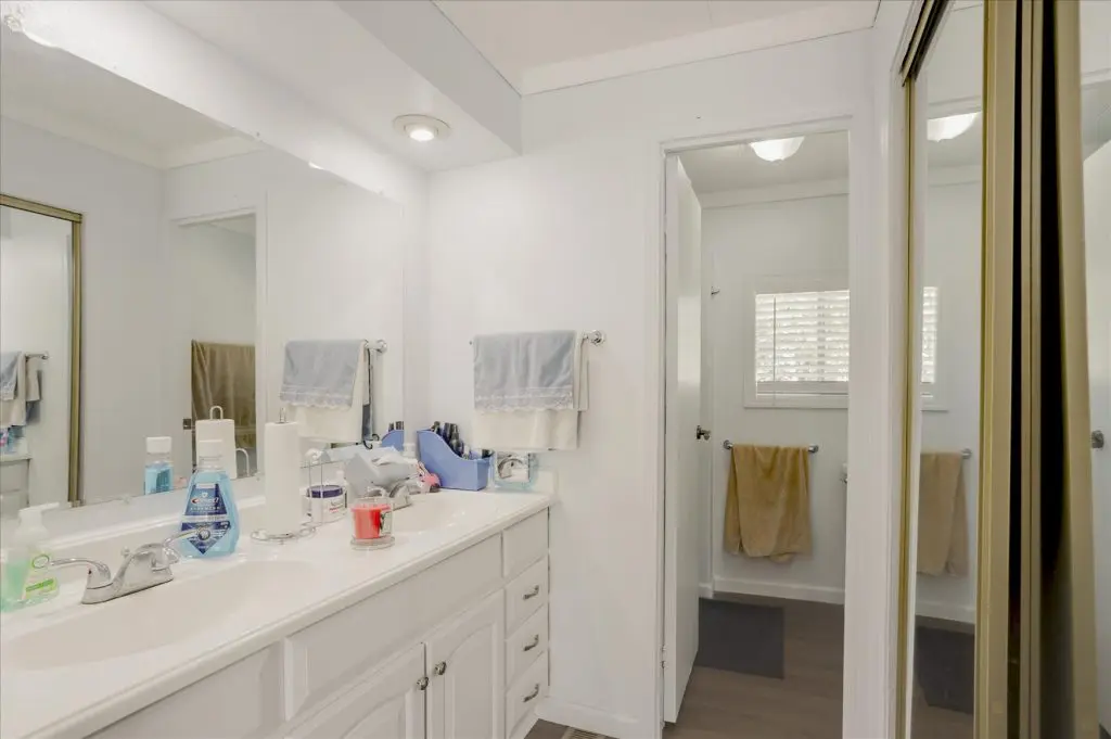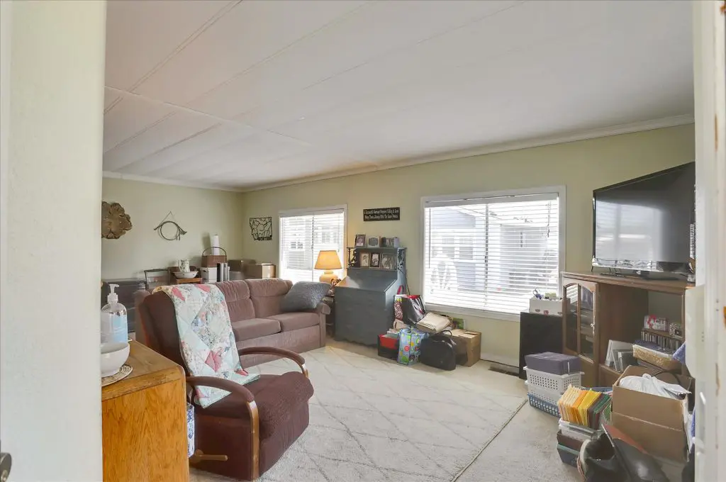 This is a beautiful 2 Bedrooms Plus a Den and 2 Bath home. Large Living room with lots of windows. Nice Kitchen with all Appliances Included. Cooktop, Microwave, Built in Oven, Refrigerator, Dishwasher, Disposal Lots of white cabinets and counter space. Double Sink with goose head faucet. Dinning area with built in hutch. This home has a nice den for a office. Master Bedroom has large glass closet doors. Also has newer laminated floors. Master Bath has double sinks and a walk in shower. This is a Senior Community. Great Location near Oakridge Mall, and shopping centers. A must see This well kept home is in a desirable senior park. Call (866) 494-8993 for a private viewing of this home in a 5 star senior community before it is sold!