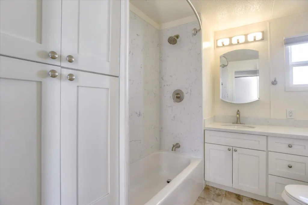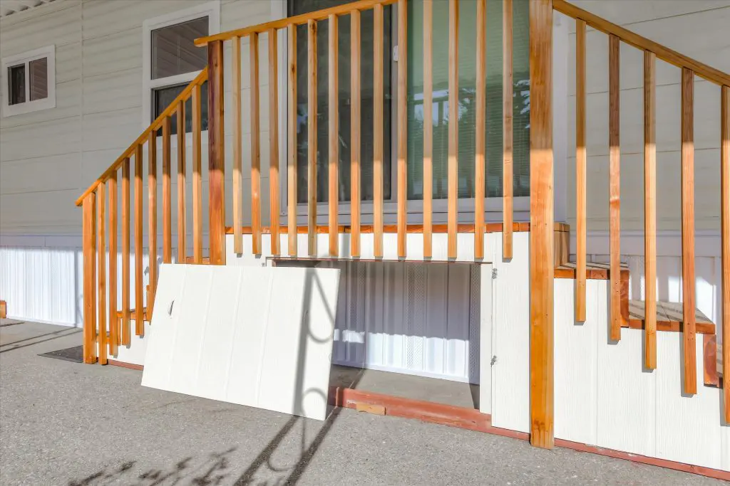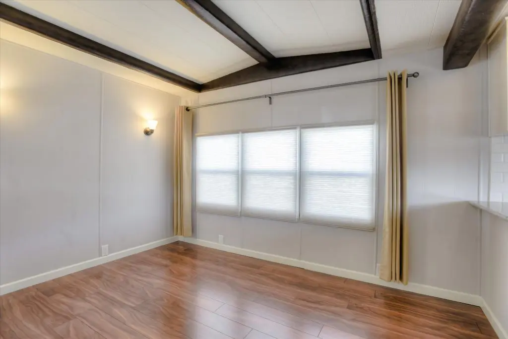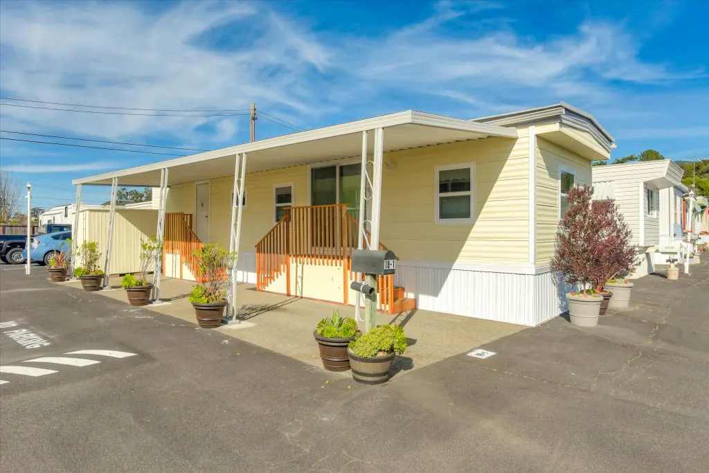 End/corner unit, so you'll have neighbors on only one side. No property taxes, just an annual $35 registration fee with HCD because the home was manufactured prior to 1977. At this price, you'll save roughly $6k over 5 years versus buying a newer mobile home at the same price.