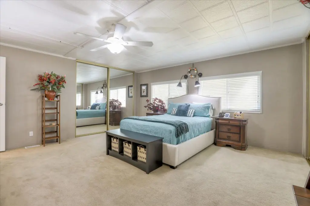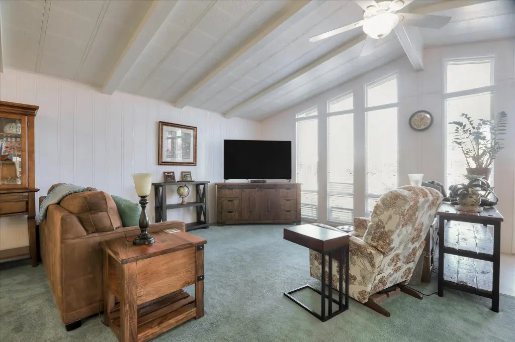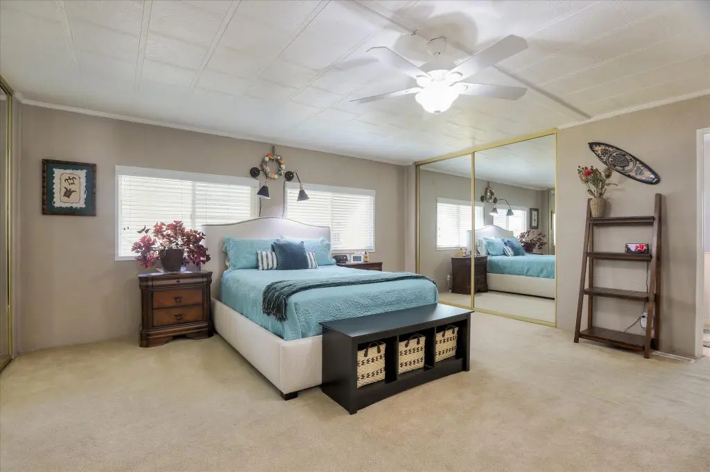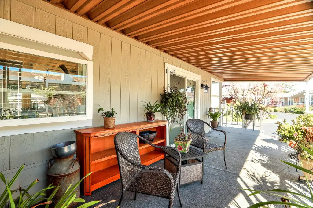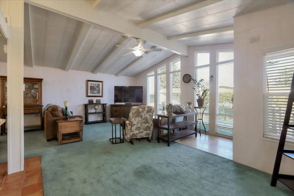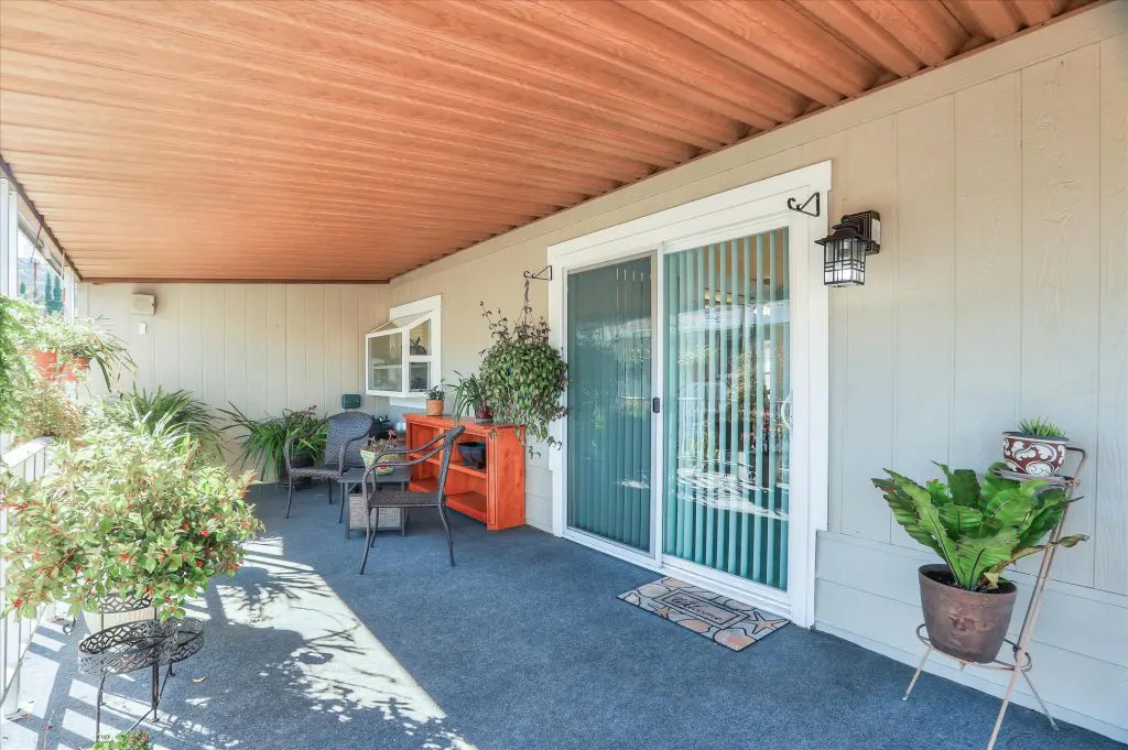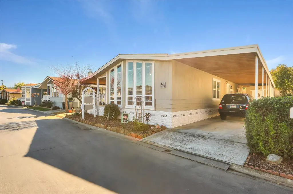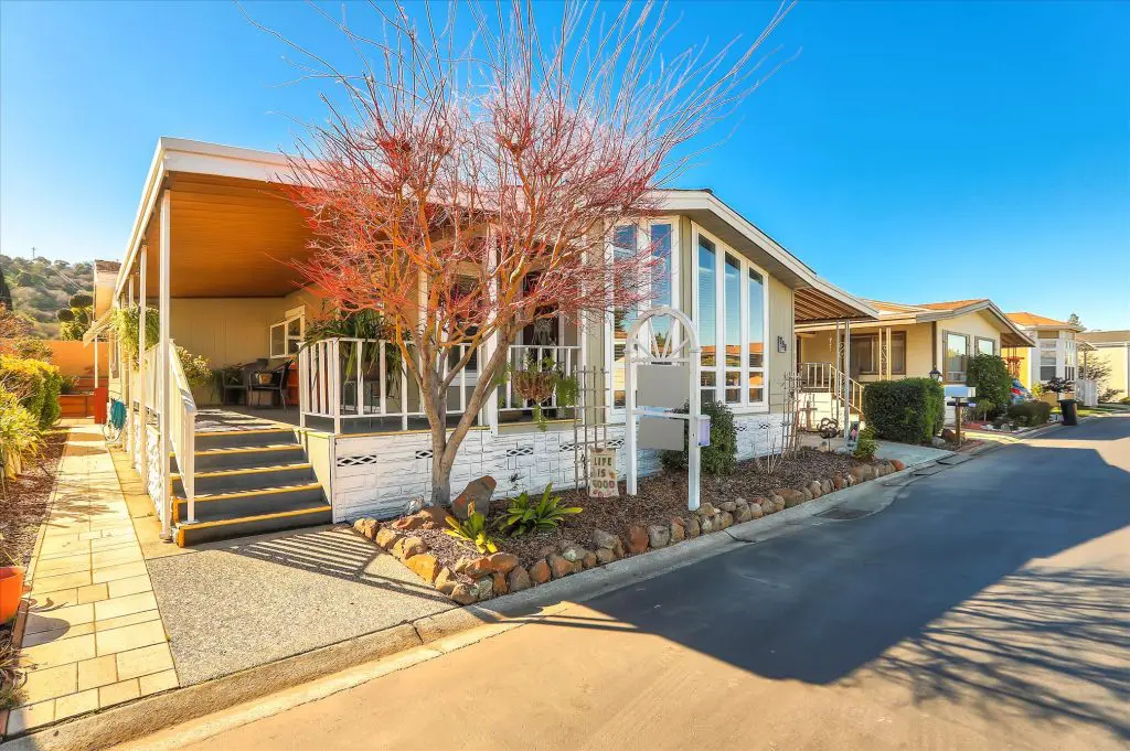 You're gonna love where you live! Located in a 55+ community near Almaden Valley with all the necessities nearby, this stunning home with its open floorplan shows beautifully. Gorgeous floor to ceiling windows and vaulted ceilings offers a bright and comfortable ambience to the living room. Dual pane windows, blinds, crown molding, and 5 ceiling fans are some of the alluring features of the home. New exterior doors, side deck carpet, Trex deck, and the carport exit adds to the curb appeal. You will love the master ensuite with mirrored closets, crown molding, textured walls, custom shower, and marble tiled countertops. The kitchen has matching appliances, as well as plenty of cabinets and counter space. The huge laundry room will delight you! Flooring includes tile AND carpet. Look outside and you will see lovely landscaping, newer exterior paint, motion security lights, and great shed space. There’s so much more to offer! Call (866) 494-8993 today to schedule a viewing of this gorgeous home!