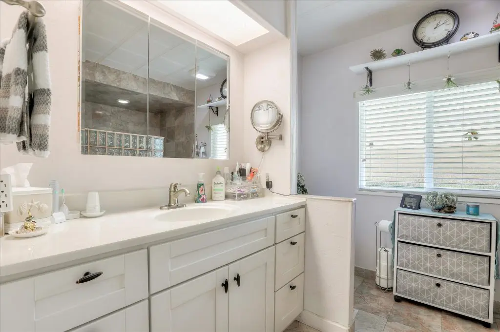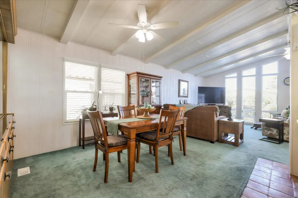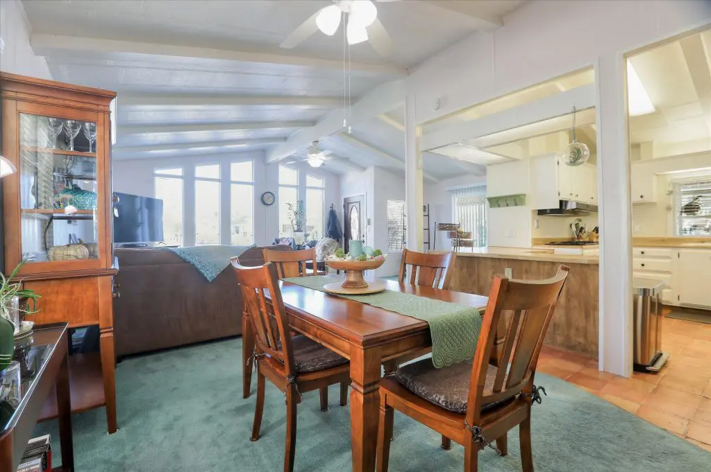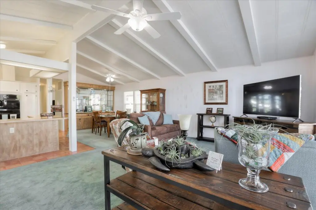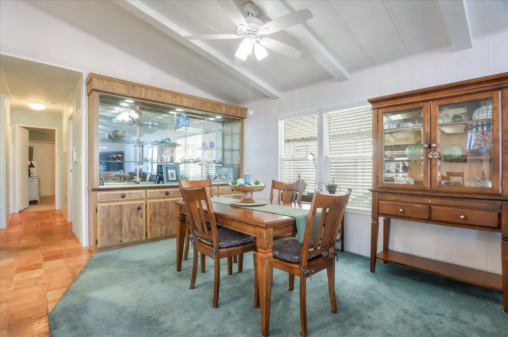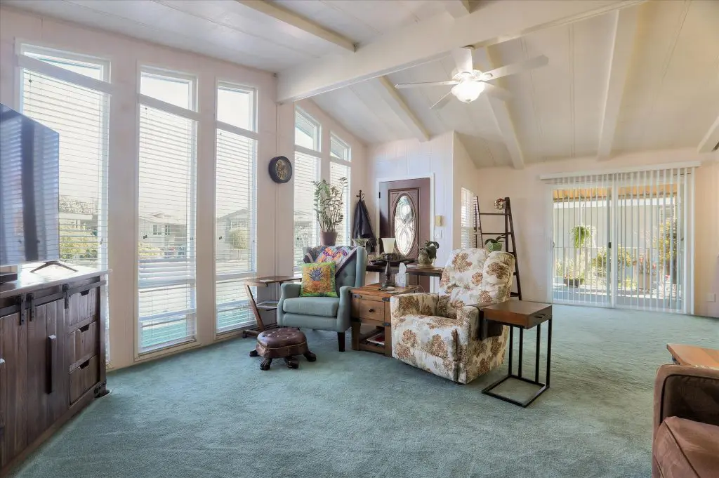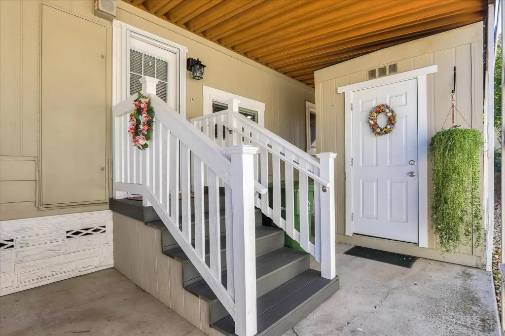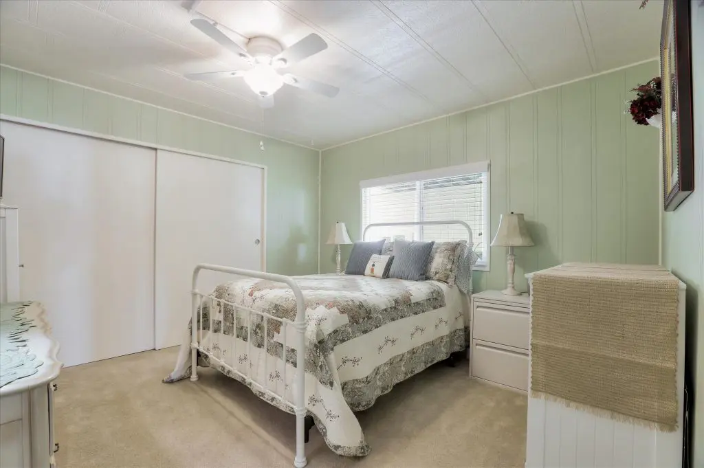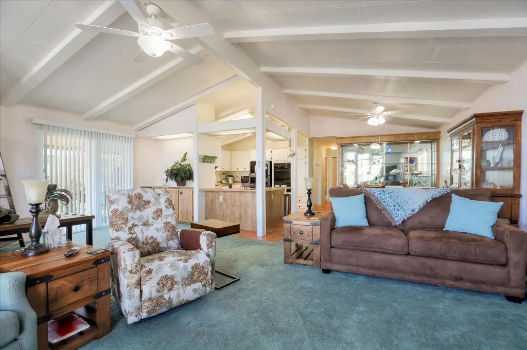 You're gonna love where you live! Located in a 55+ community near Almaden Valley with all the necessities nearby, this stunning home with its open floorplan shows beautifully. Gorgeous floor to ceiling windows and vaulted ceilings offers a bright and comfortable ambience to the living room. Dual pane windows, blinds, crown molding, and 5 ceiling fans are some of the alluring features of the home. New exterior doors, side deck carpet, Trex deck, and the carport exit adds to the curb appeal. You will love the master ensuite with mirrored closets, crown molding, textured walls, custom shower, and marble tiled countertops. The kitchen has matching appliances, as well as plenty of cabinets and counter space. The huge laundry room will delight you! Flooring includes tile AND carpet. Look outside and you will see lovely landscaping, newer exterior paint, motion security lights, and great shed space. There’s so much more to offer! Call (866) 494-8993 today to schedule a viewing of this gorgeous home!