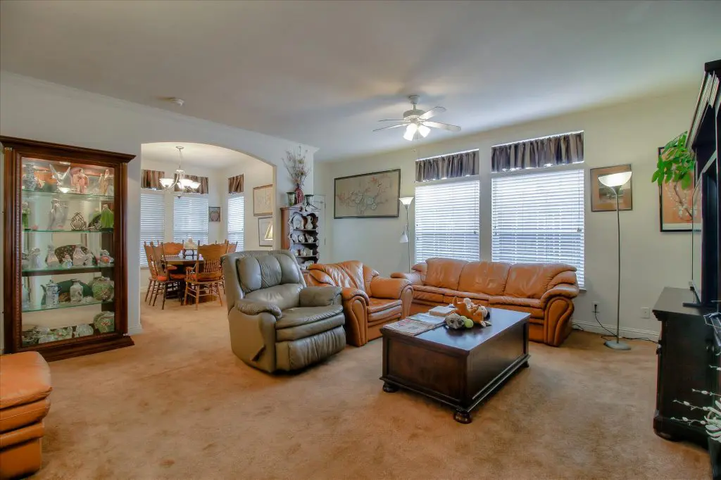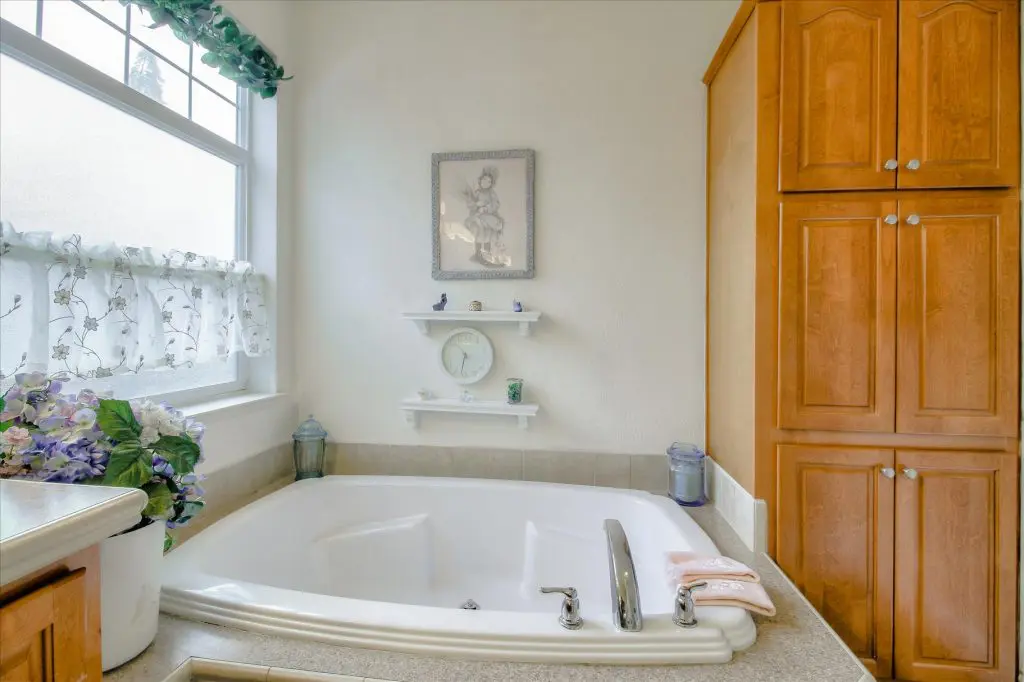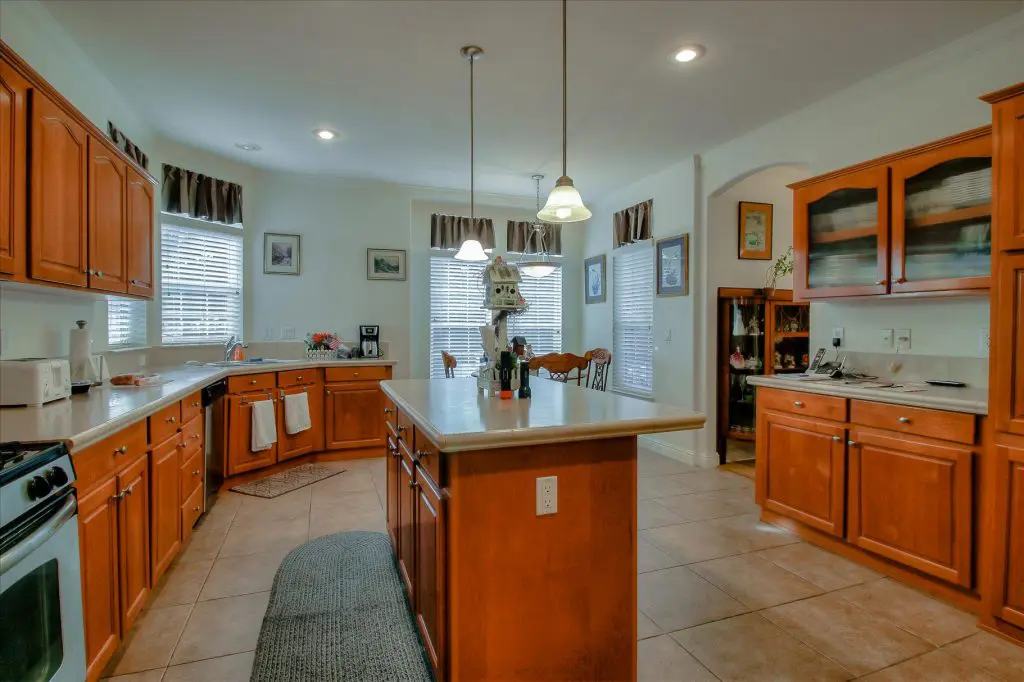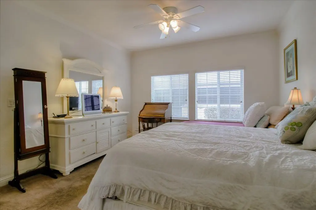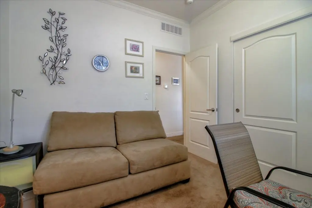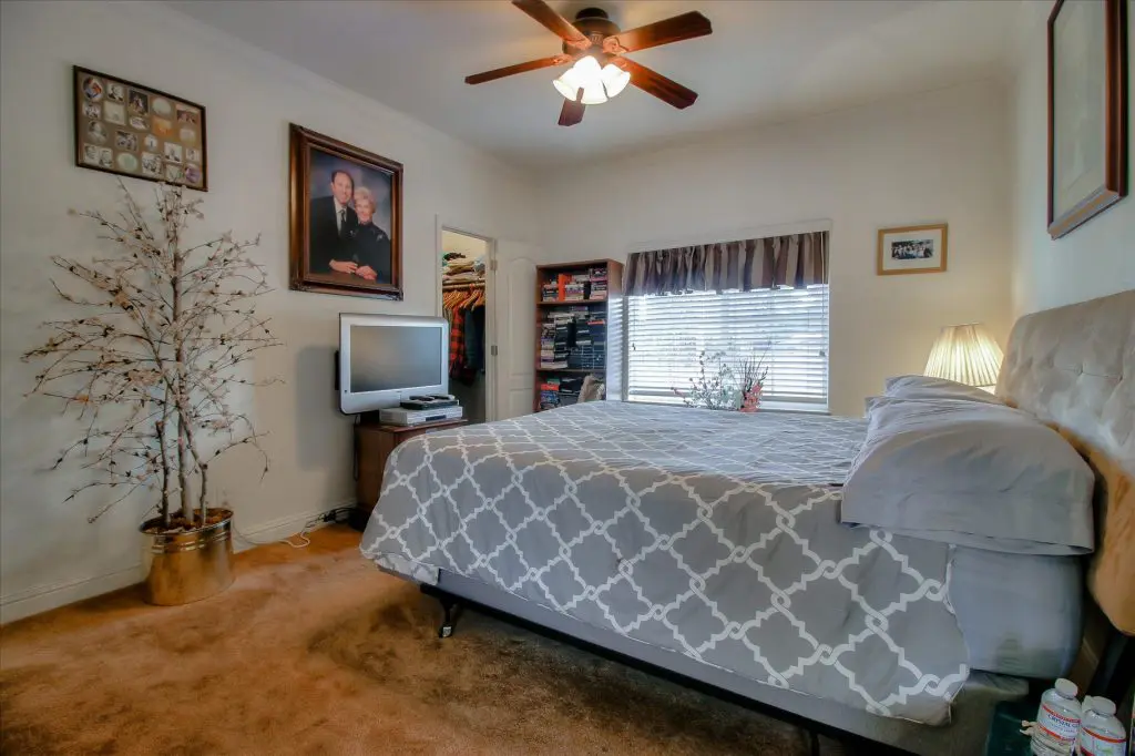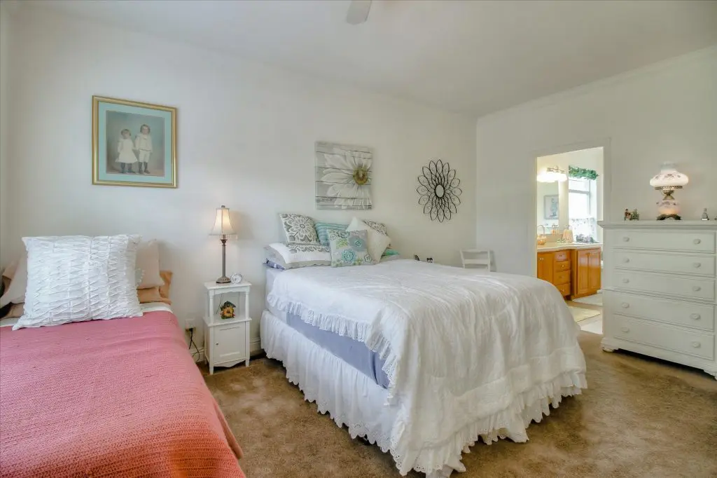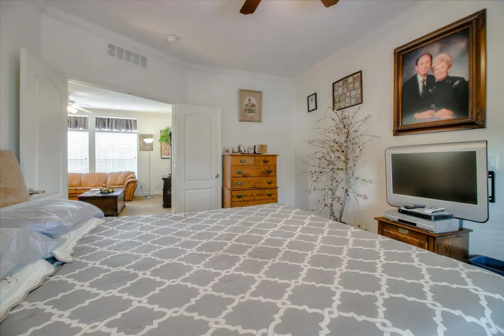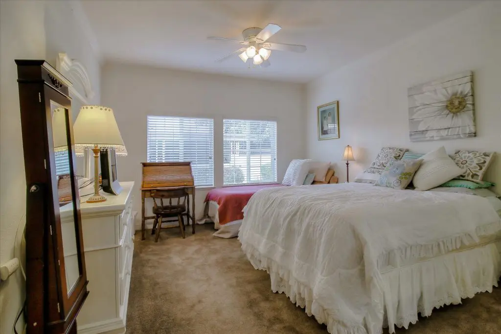 Senior park living at its best! You're gonna LOVE where you live in this spacious, well-adorned home in Villa Teresa. Located in a quiet cul-de-sac with guest parking nearby, this home features a beautiful landscaped yard with luscious potted plants, fruit trees, hard-scaping, and a great space for outdoor entertaining. Trex decking on the front porch and side steps and a sprinkler system if desired to use for watering. Gourmet kitchen features an island, nook, and tons of cabinet and counter space. Master suite will thrill you with walk-in closet, dual vanities, soaking tub, and large shower equipped with grab bars and tile floors. Double doors open up to one of the large guest bedrooms off the cozy living room. Ceiling fans, 2" blinds, fireplace, and a separate dining room are additional features that you will love! Don't miss the matching shed, water softener, and ample parking for your cars. You must see this home to believe it! Call (866) 494-8993 for a private viewing of this home in a 5 star senior community before it is sold!