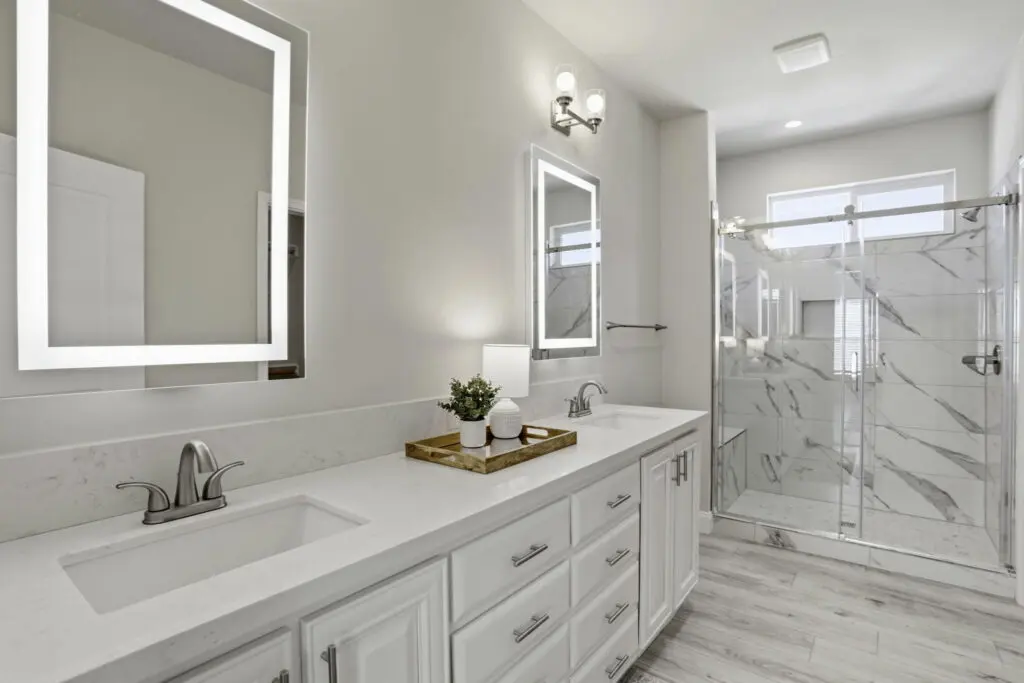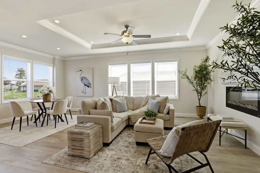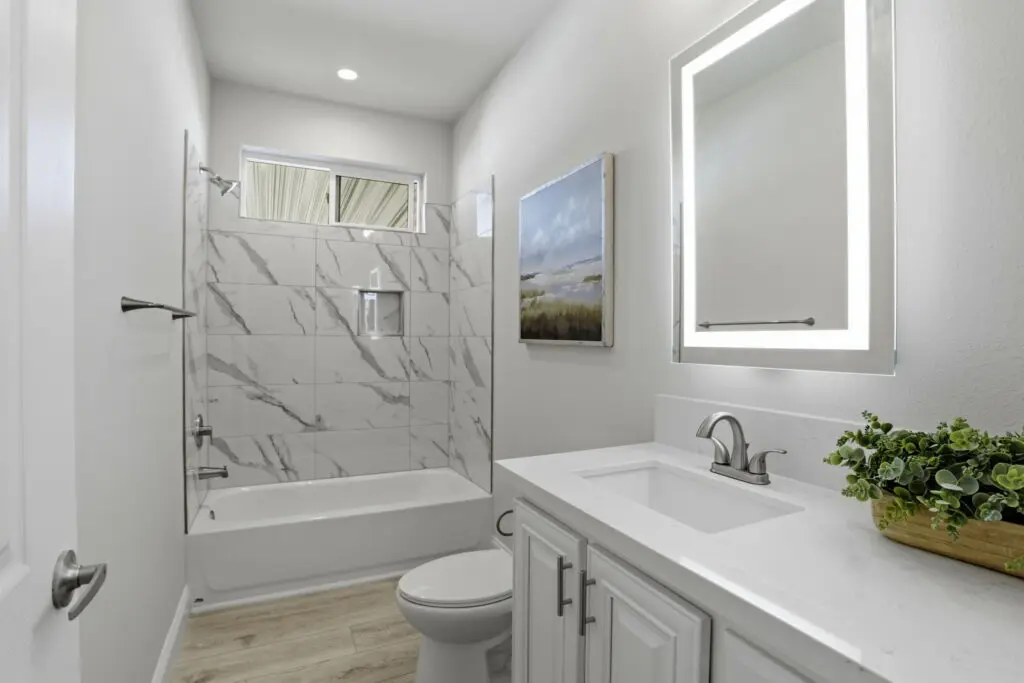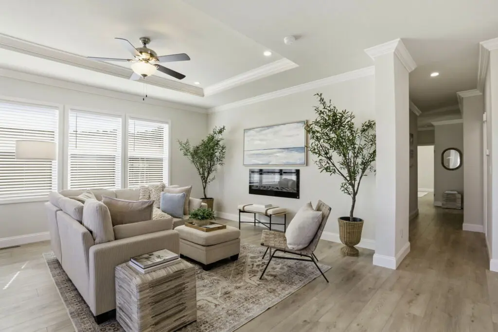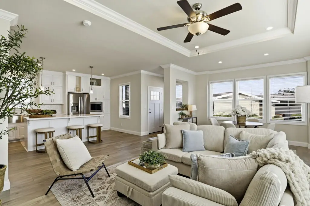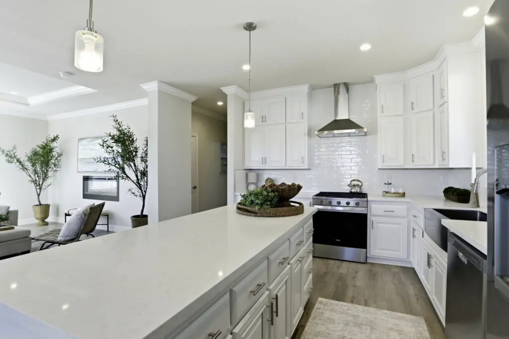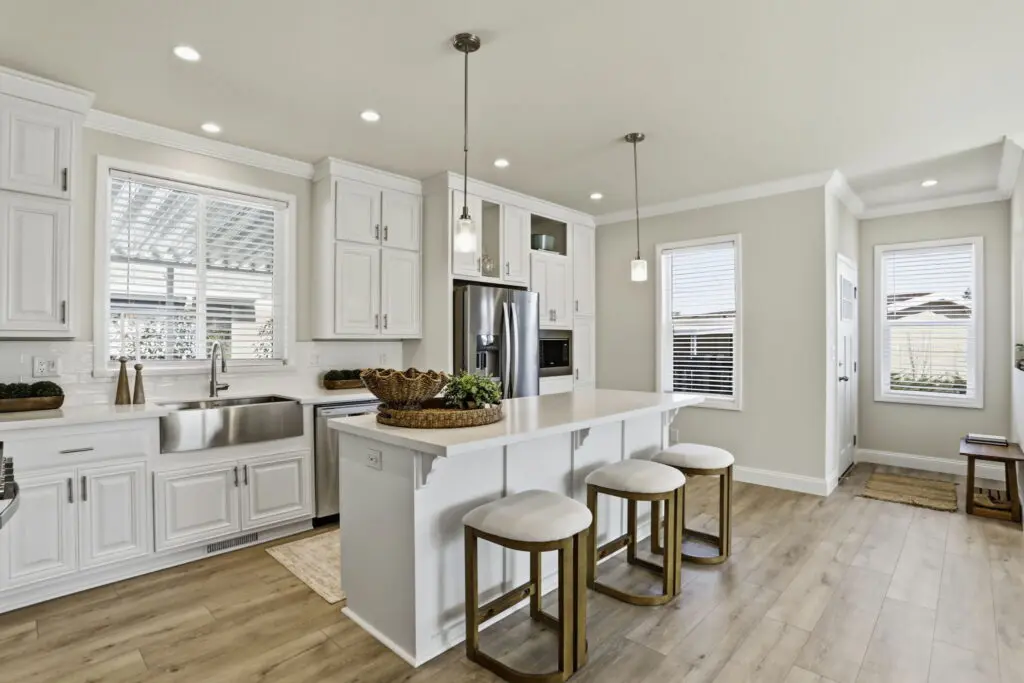 The gourmet kitchen overlooks the open living area for effortless entertaining and includes a large island, stainless steel appliances, durable cabinetry, white quartz countertops, and a stylish tile backsplash. The primary master suite offers dual sinks, a walk-in shower, and a spacious walk-in closet, while the second master suite also includes its own private bath and walk-in closet. Blending modern design with comfort and convenience, this exceptional home presents a rare opportunity to live in one of the area’s most sought-after senior communities. Call (866) 494-8993 today for more information!