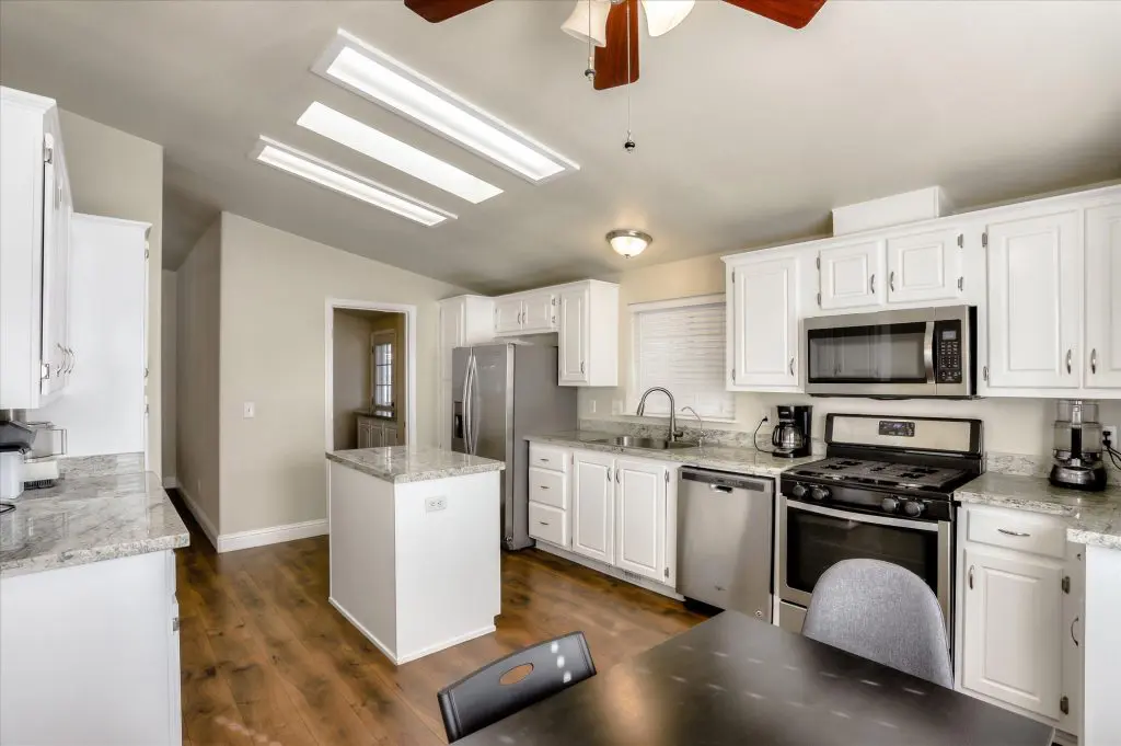 Located in a very desirable 55+ community in Willow Ranch, this 3 bedroom, 2 bath home boasts curb appeal and charm. Renovated in 2017, this home is in fantastic shape, featuring a spacious living/dining room combo with wood laminate floors, tray ceilings with crown molding, ceiling fan, and a corner gas fireplace for those chilly Bay Area nights. The kitchen has large island with granite countertops, stainless steel appliances, water filter system, skylights, breakfast nook, ceiling fan, and lots of storage with plenty of counter space. All three bedrooms are a comfortable size with plush carpeting. The master bedroom with a private bath comes with ample closet space, lino floors, dual sinks, walk-in shower, and jetted tub. Guest bathroom features skylight, tub/shower combo, and lino floors. Laundry room has additional counter and cabinet space for storage. A/C, kitchen appliances, washer/dryer, and extra fridge are all included. Willow Ranch has many amenities including a swimming pool, spa, barbecue area, billiards table, and lush gardens. This home is also conveniently located near Mt. View and Santa Clara, close to Highway 101 and 237/85. It is minutes from many high tech companies, Levi's Stadium, and an easy access to public transportation such as VTA and light rails. Don't let someone else buy this home before you take a look. Call (866) 494-8993 today to schedule a private viewing before it is sold!